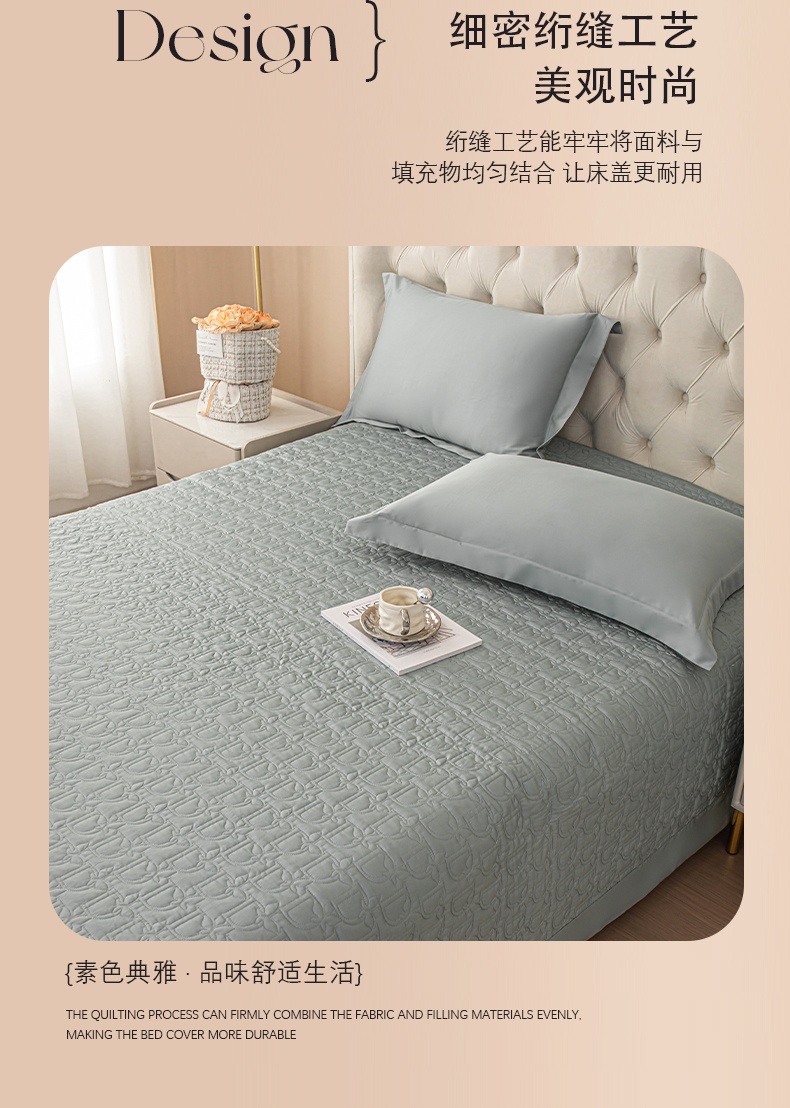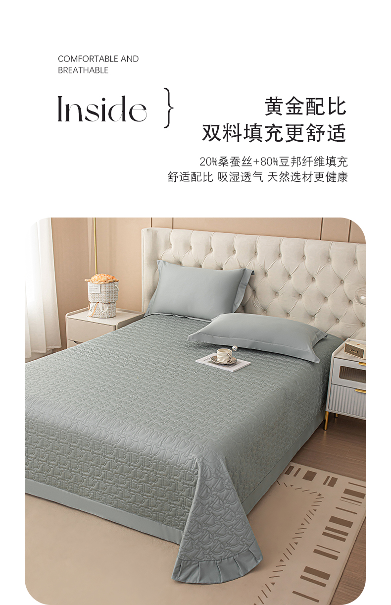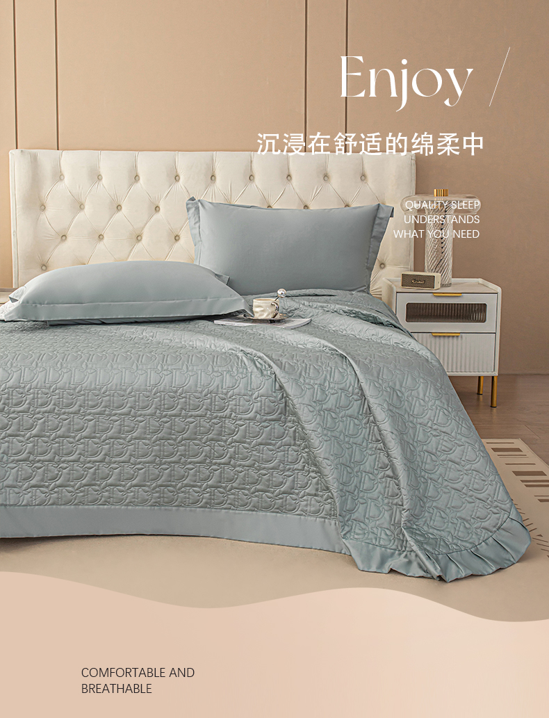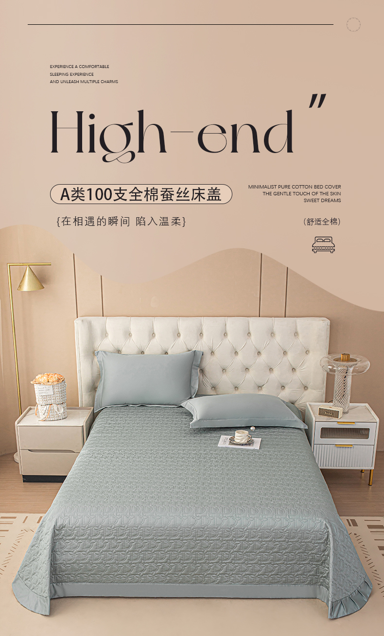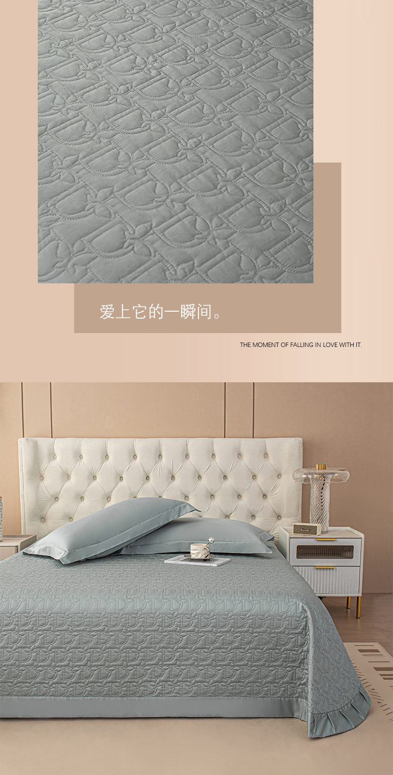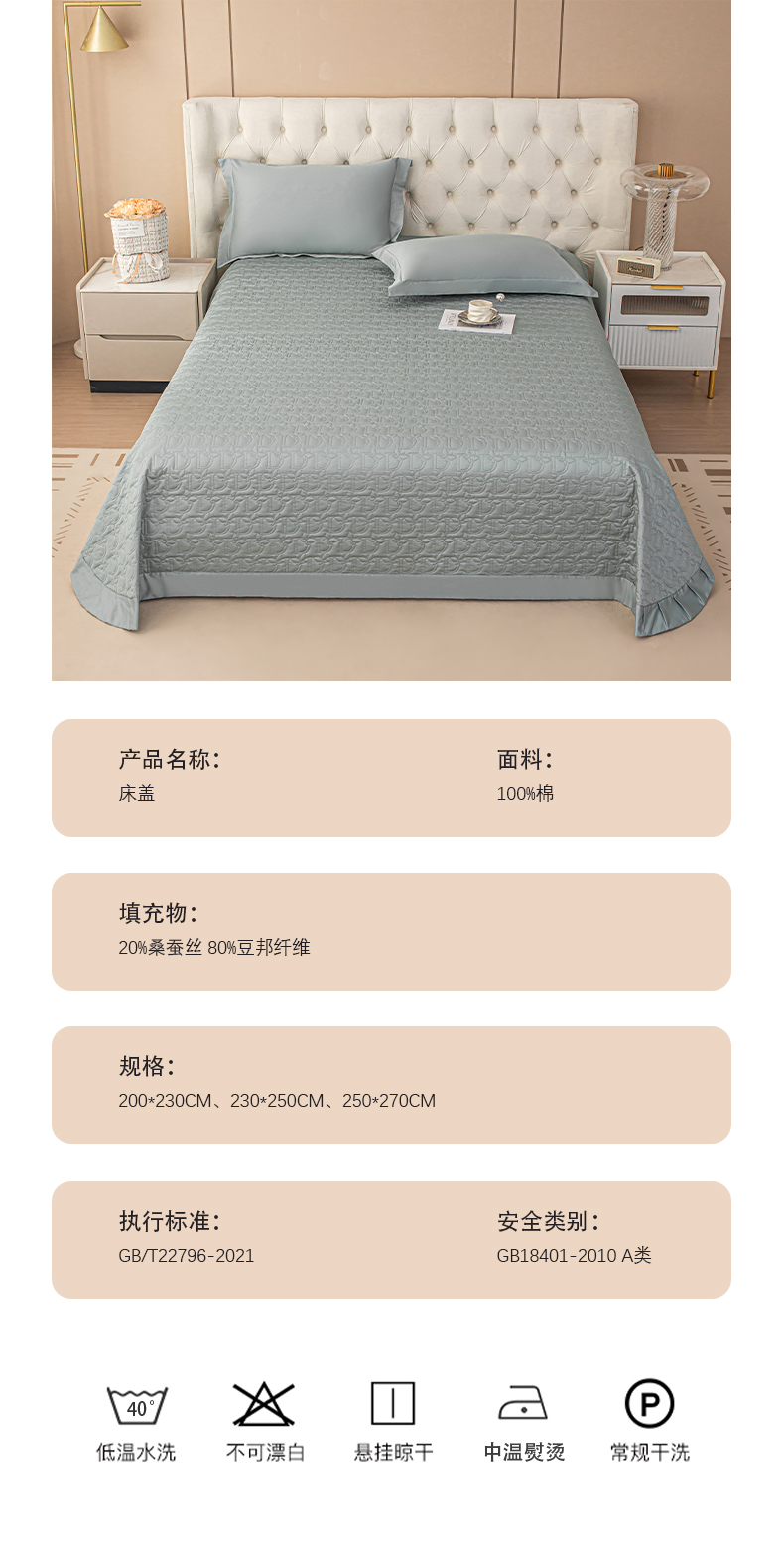 商品名称:金喜 2024新款100支全棉蚕丝床盖三件套D型绗缝系列 木槿绿