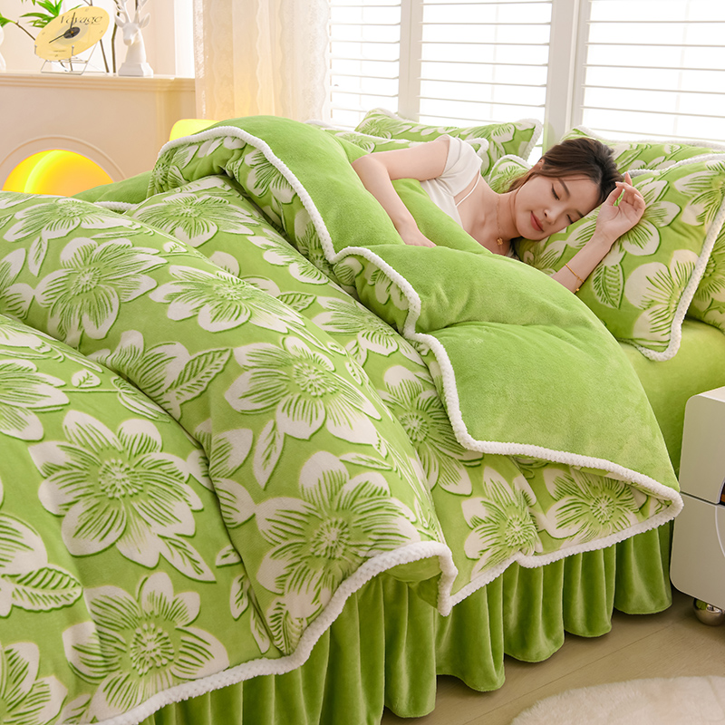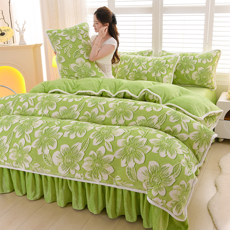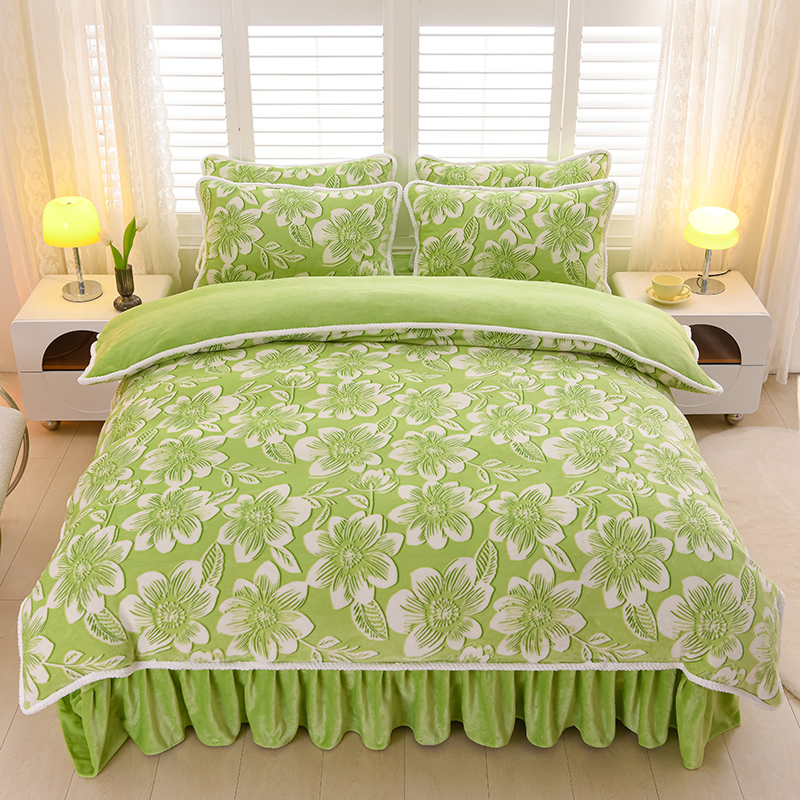 梦莱情 2024新款190克7斤半牛奶绒四件套 花溪-绿