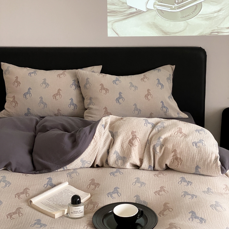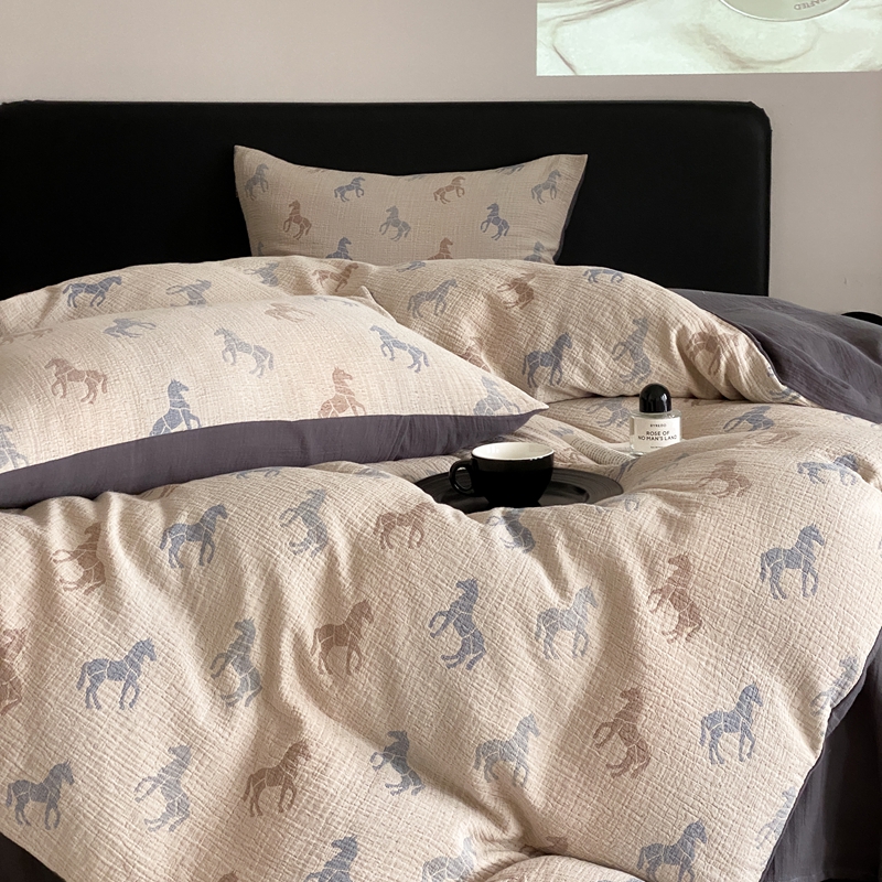 (总)赫帛 2024新款A类全棉色织三层纱水洗棉四件套-渐变马