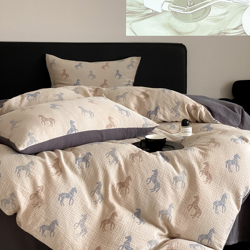 商品名称:(总)赫帛 2024新款A类全棉色织三层纱水洗棉四件套-渐变马