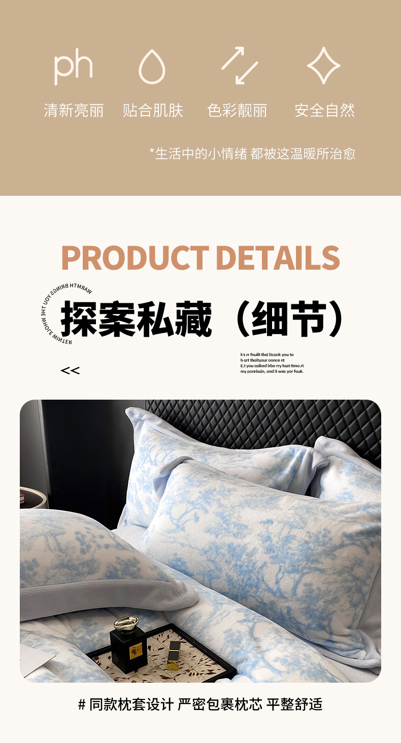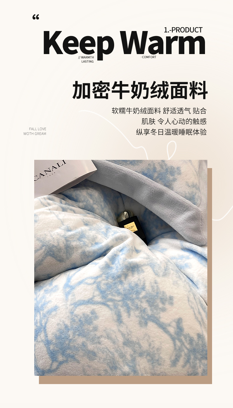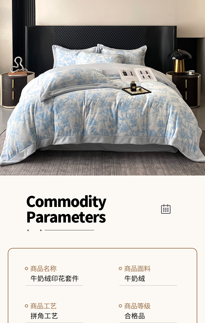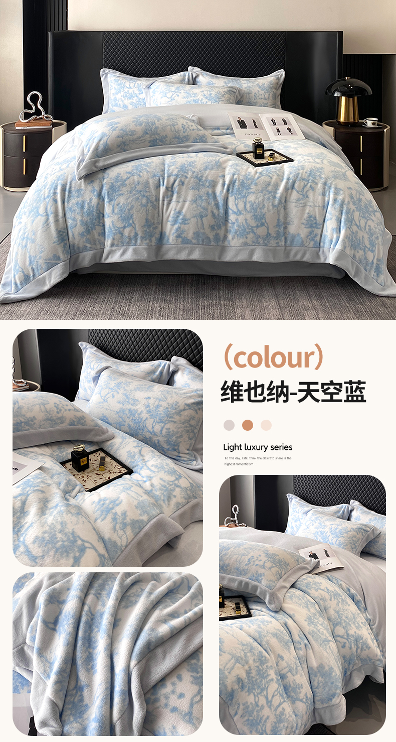 商品名称:优悦生活馆 2025新款牛奶绒印花四件套-维也纳 维也纳-天空蓝