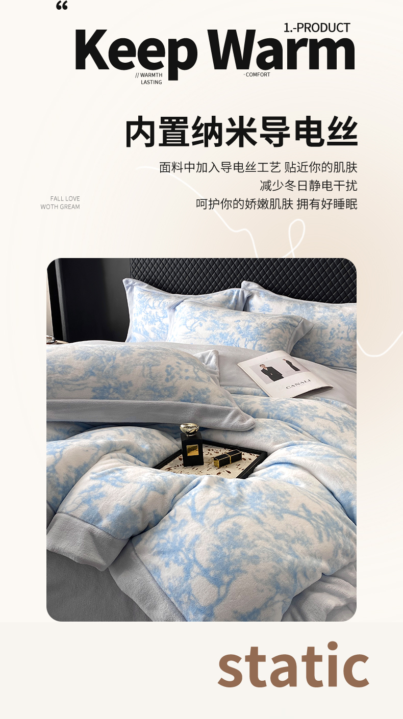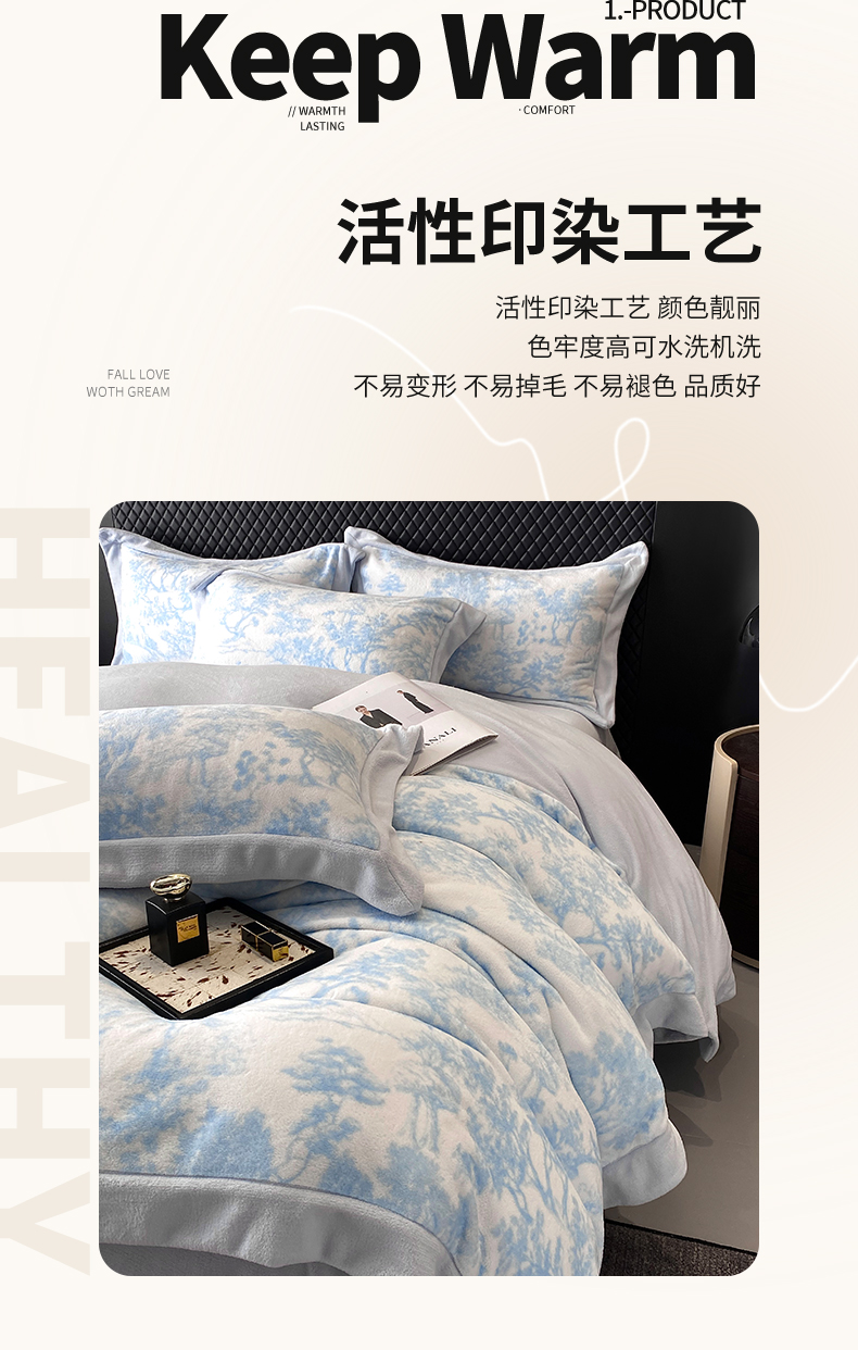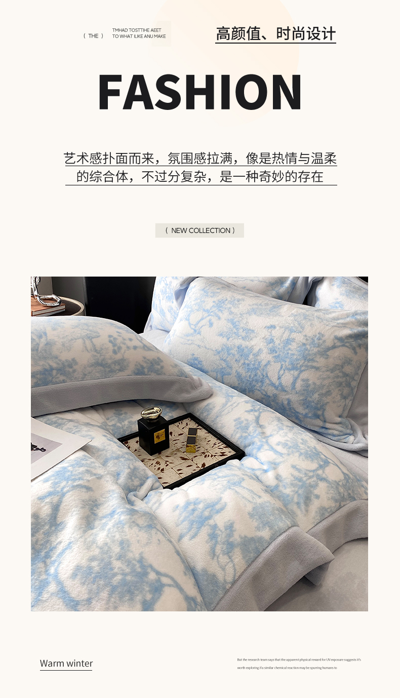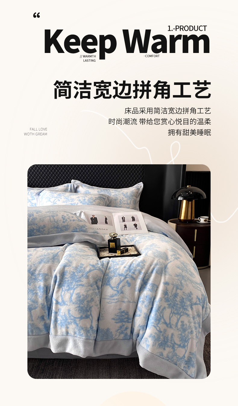商品名称:优悦生活馆 2025新款牛奶绒印花四件套-维也纳 维也纳-天空蓝