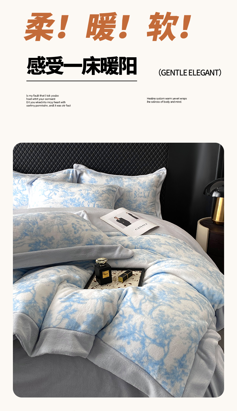 (总)优悦生活馆 2025新款兔毛绒牛奶绒保暖四件套,蝶纹,线条玫瑰