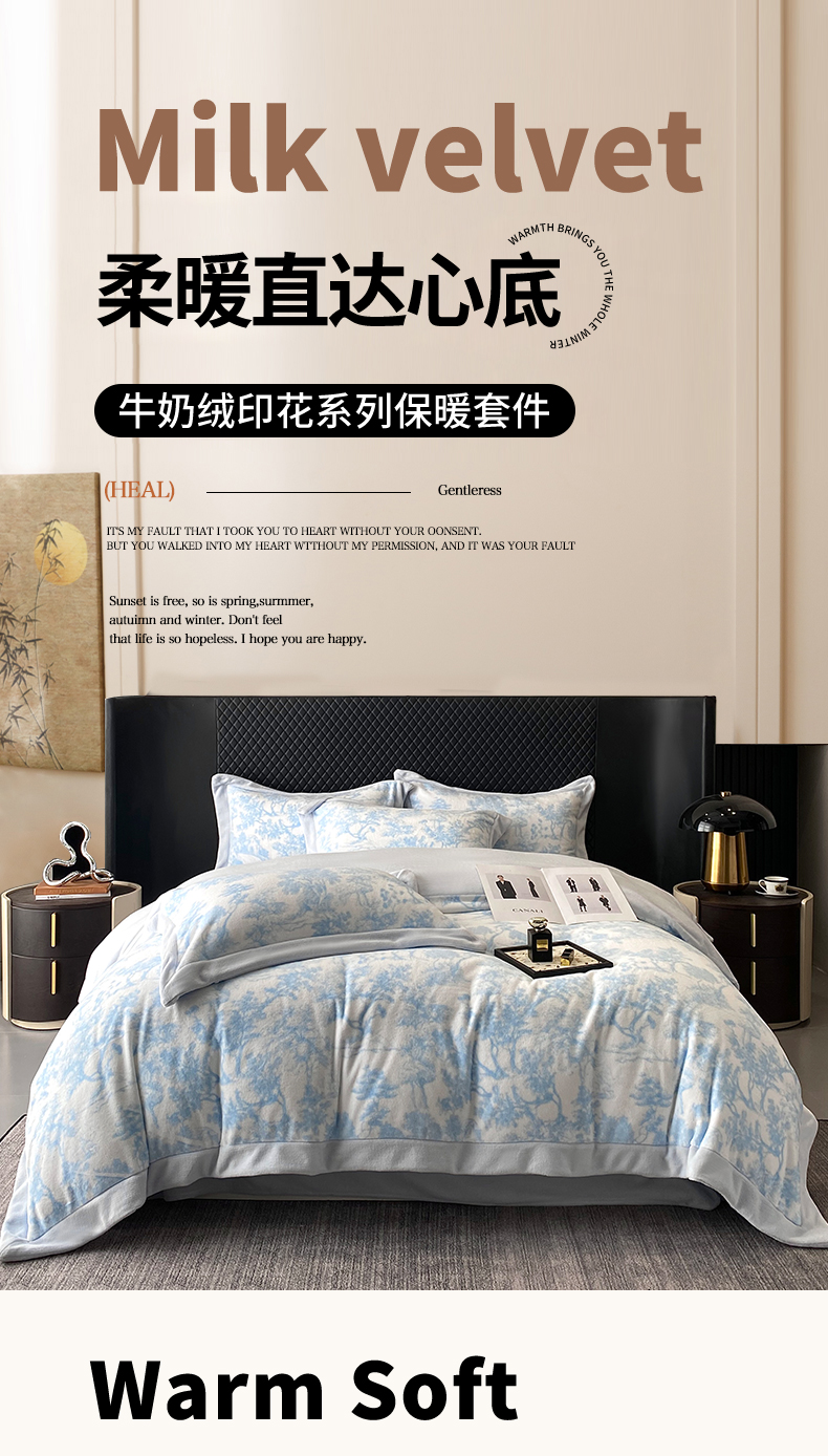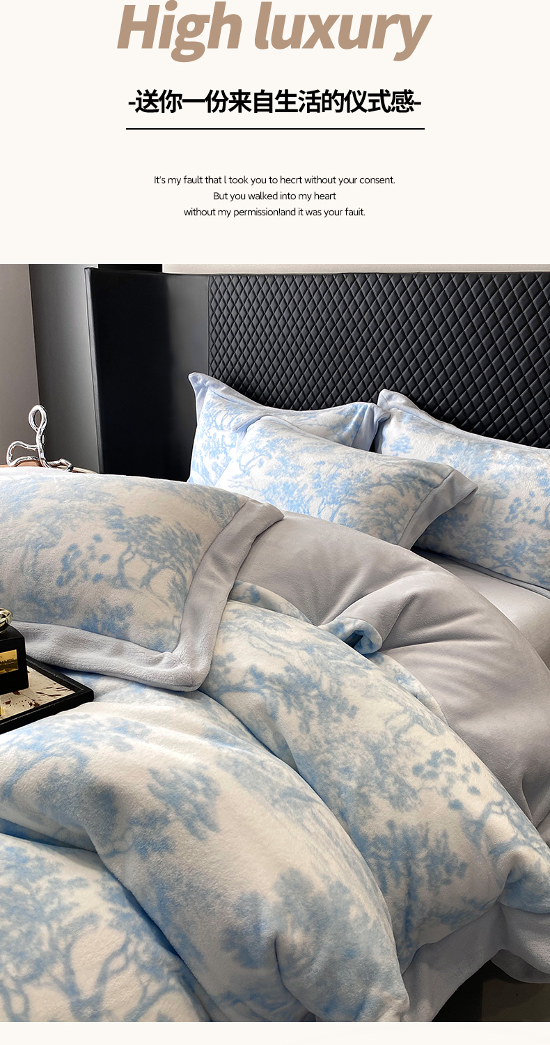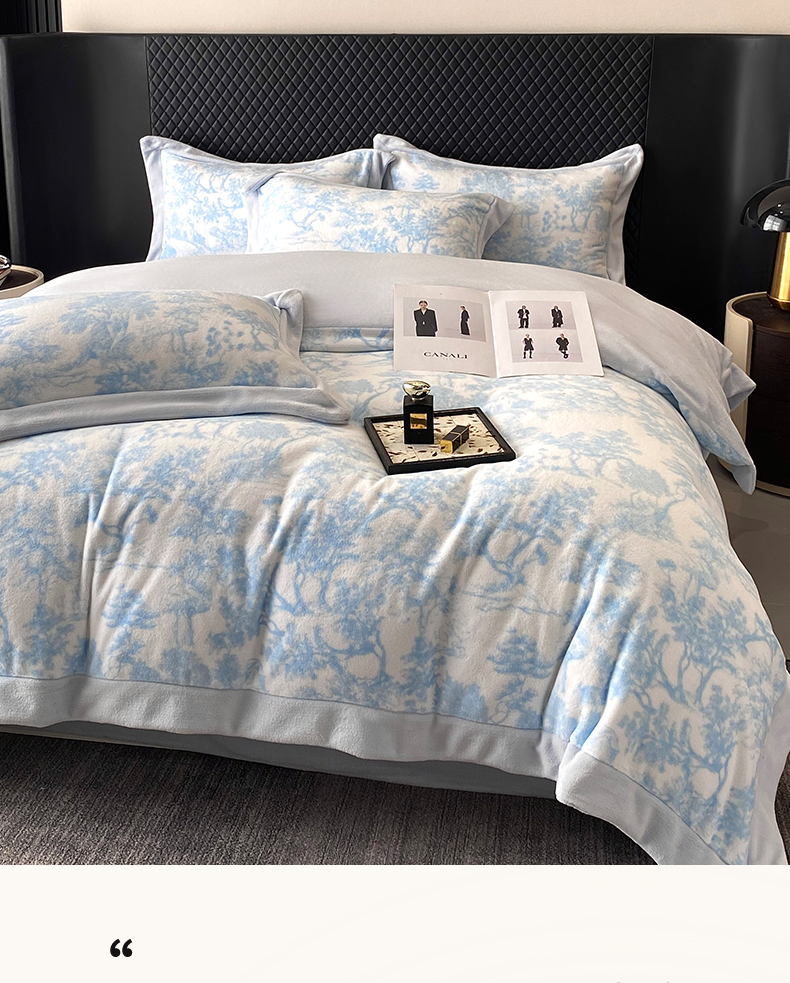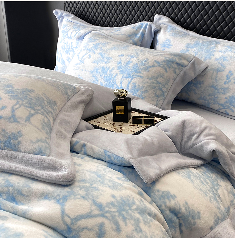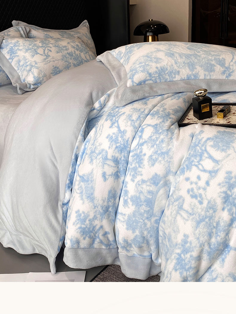 优悦生活馆 2025新款牛奶绒印花四件套-维也纳 维也纳-天空蓝