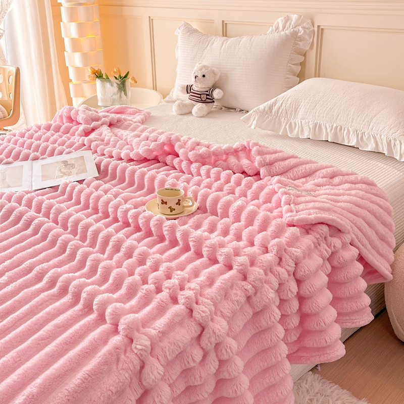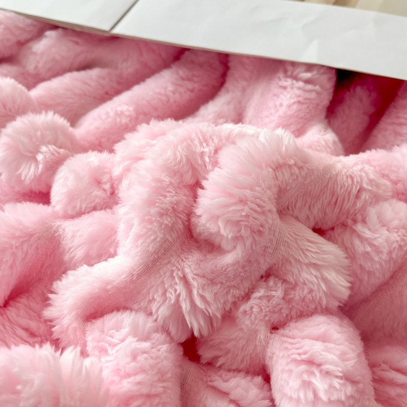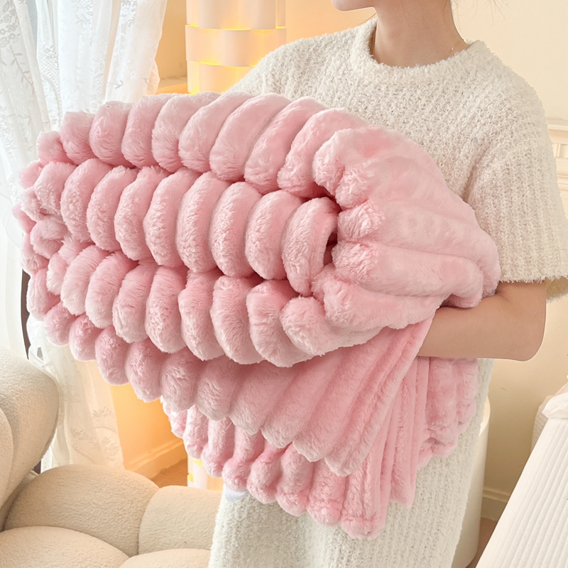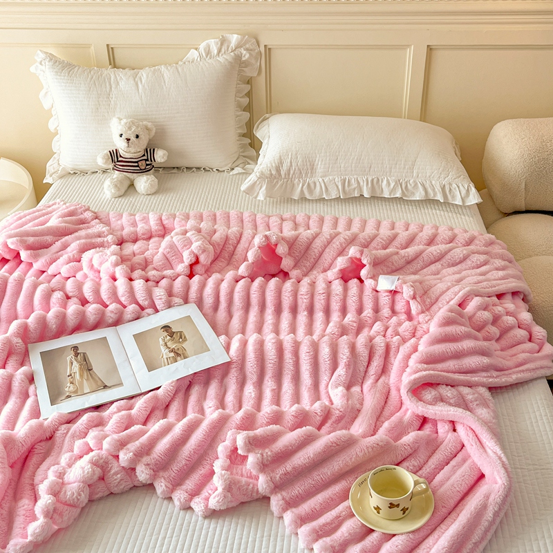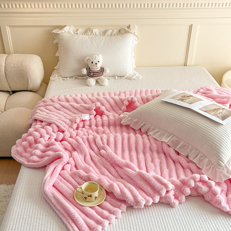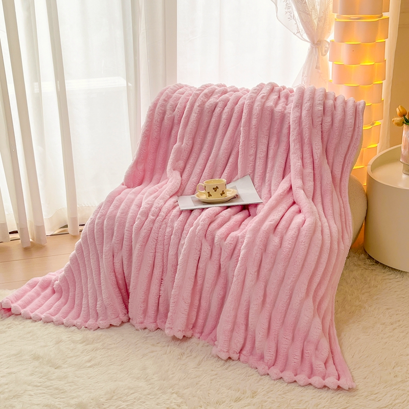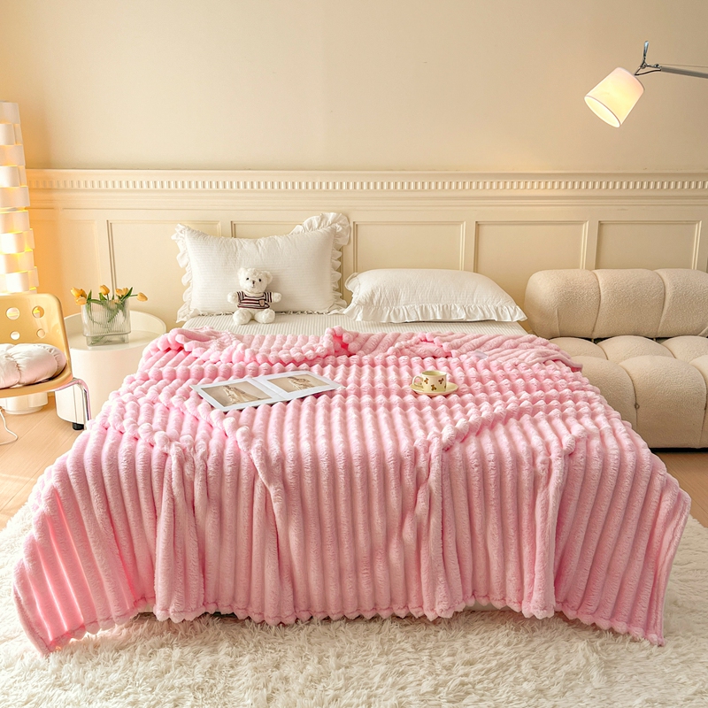 璐维斯家纺 2025款直播热款400g大抽条仿兔毛绒毛毯加厚保暖毯子可供跨境外 桃粉