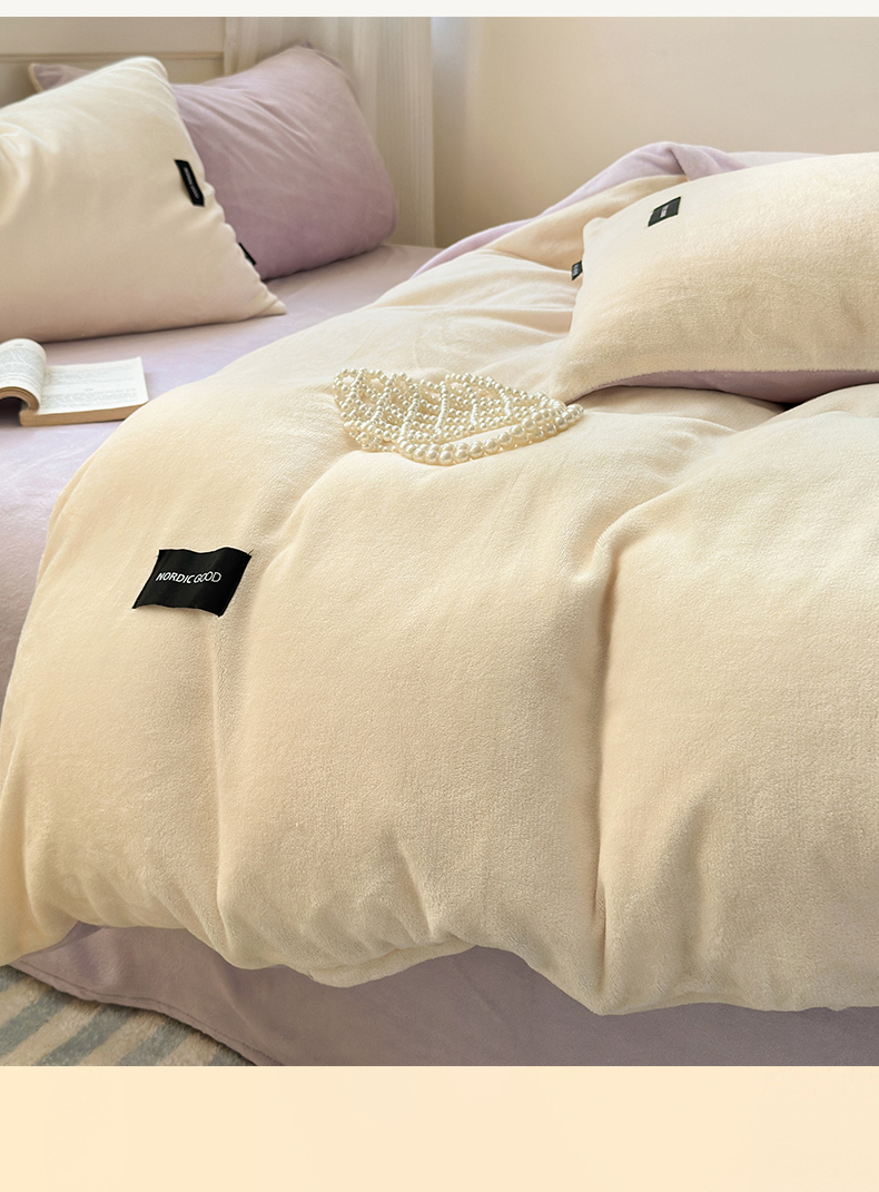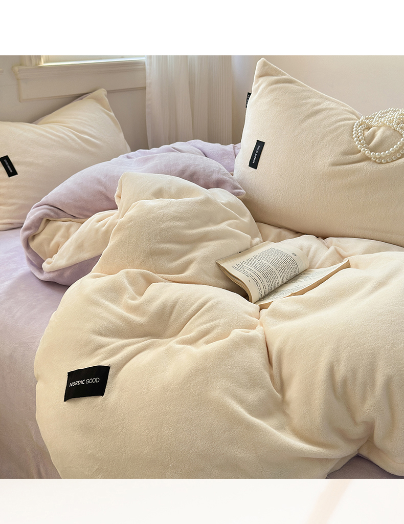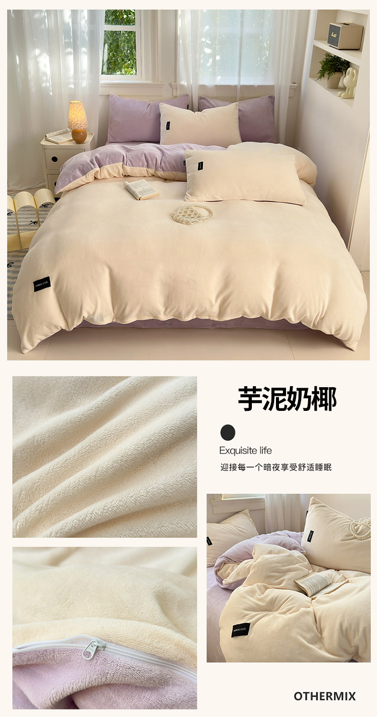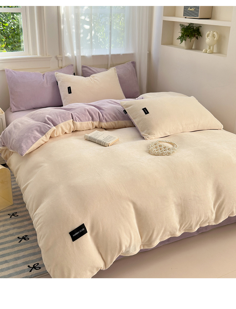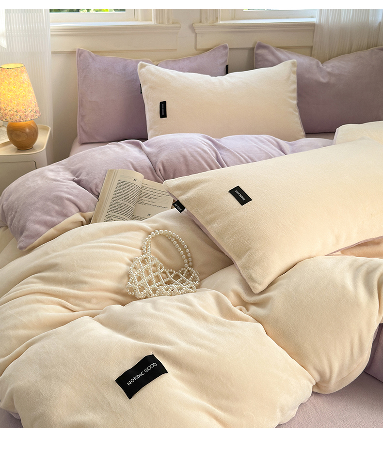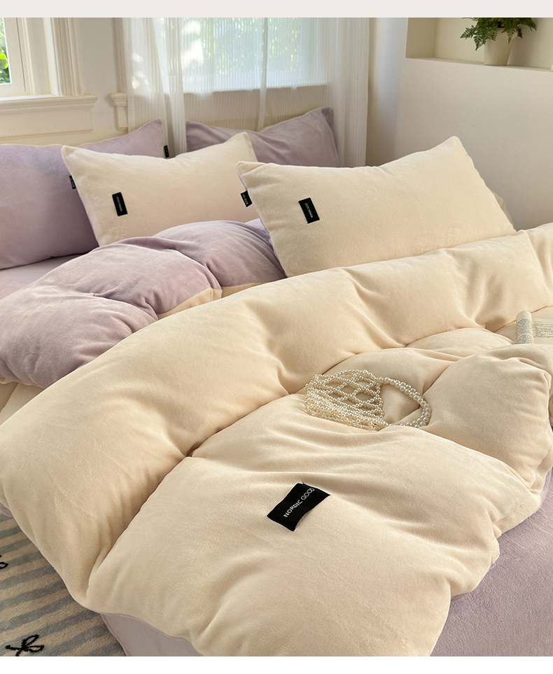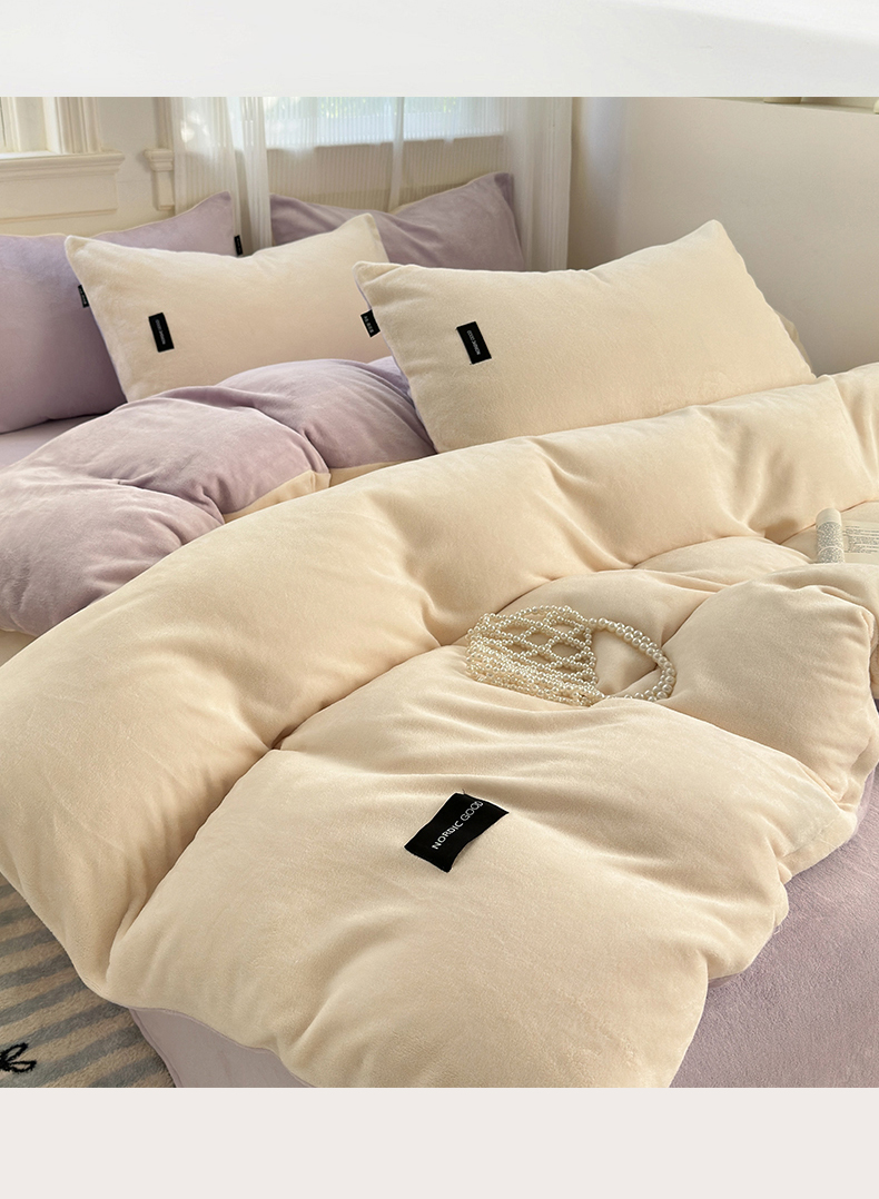 当前位置: 91家纺网 > 商品网购 > 床品套件 > 四件套 > 牛奶绒四件套 > 北欧良品 2024新款A类高克重牛奶绒双拼四件套 芋泥奶椰