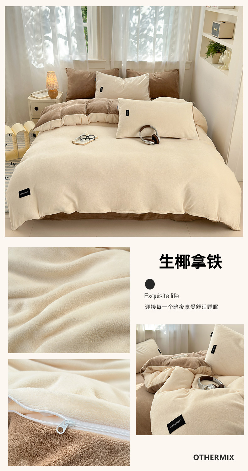 商品名称:北欧良品 2024新款A类高克重牛奶绒双拼被套 生椰拿铁