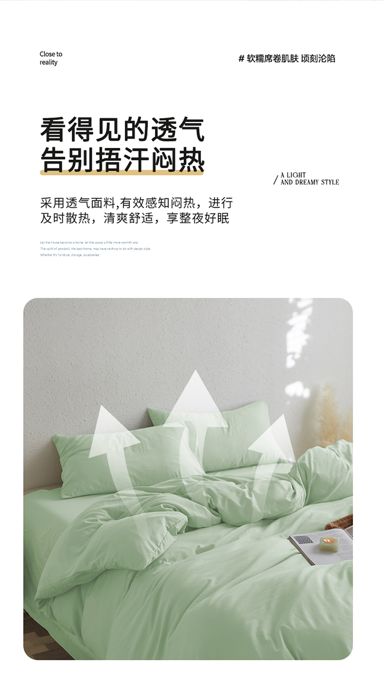 当前位置: 91家纺网 > 商品网购 > 床品套件 > 四件套 > 水洗棉四件套 > 沃朴家居 2024新款亲肤水洗棉四件套豆蔻青(浅)