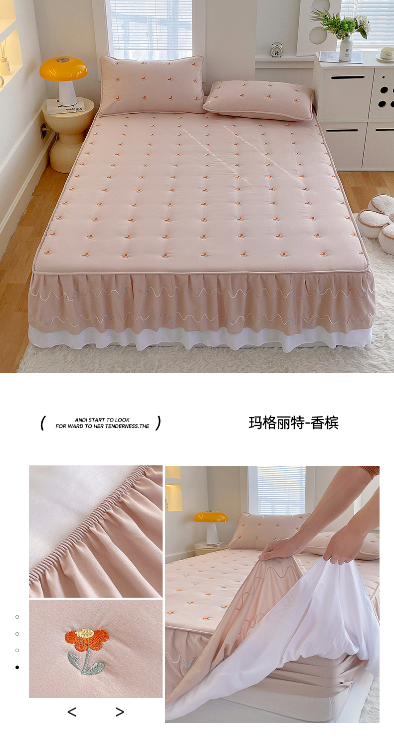 尊康家纺(原磊科) 2024新款奶昔棉抗菌床裙床笠二合一款-玛格丽特 玛格丽特-香槟
