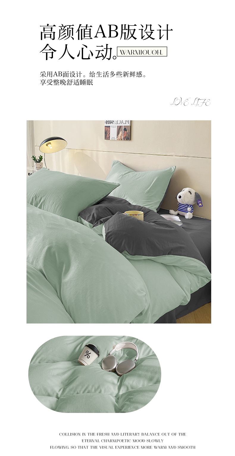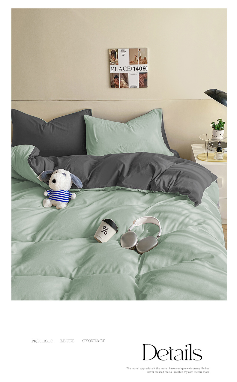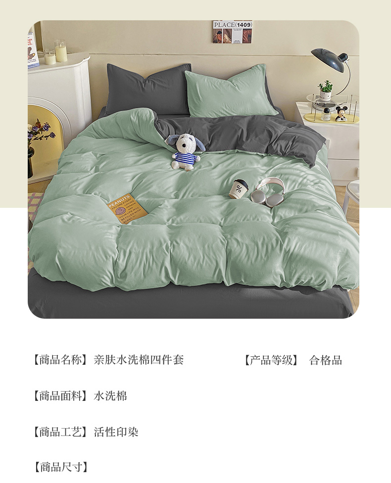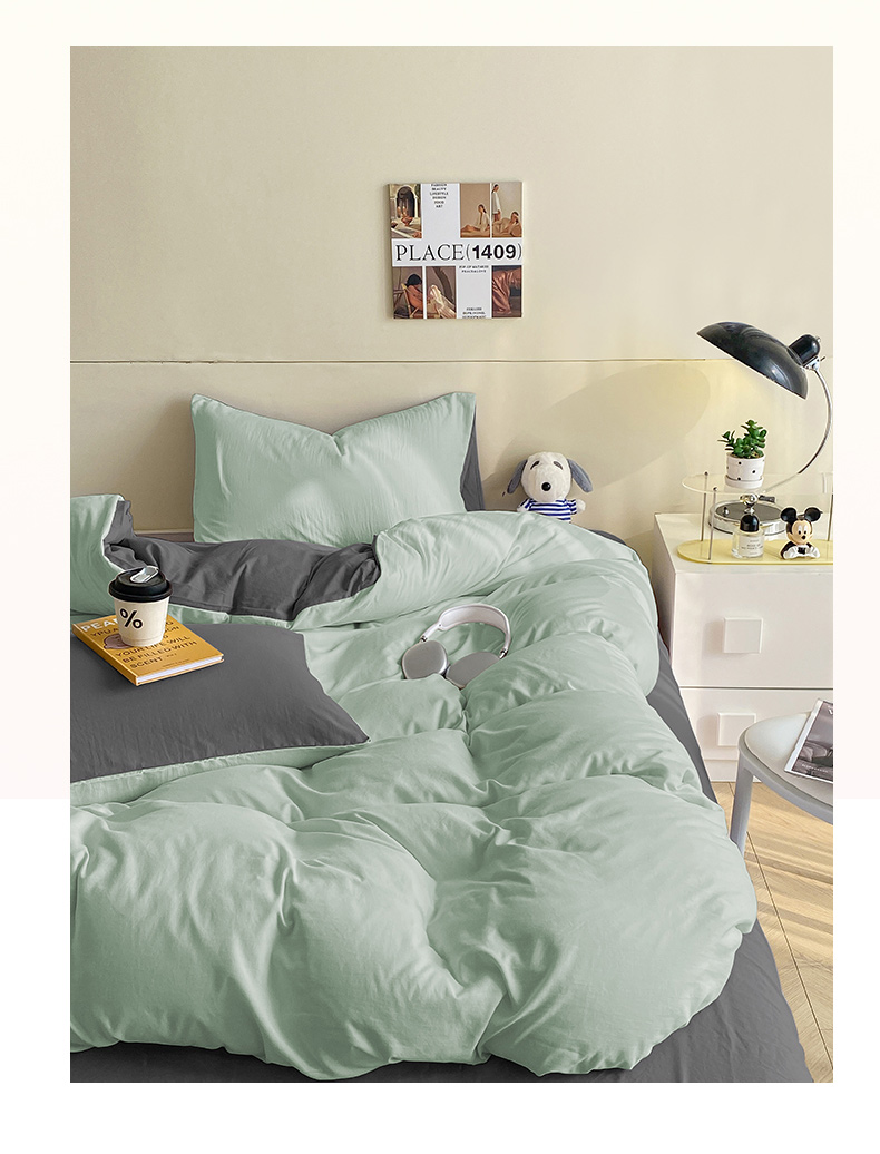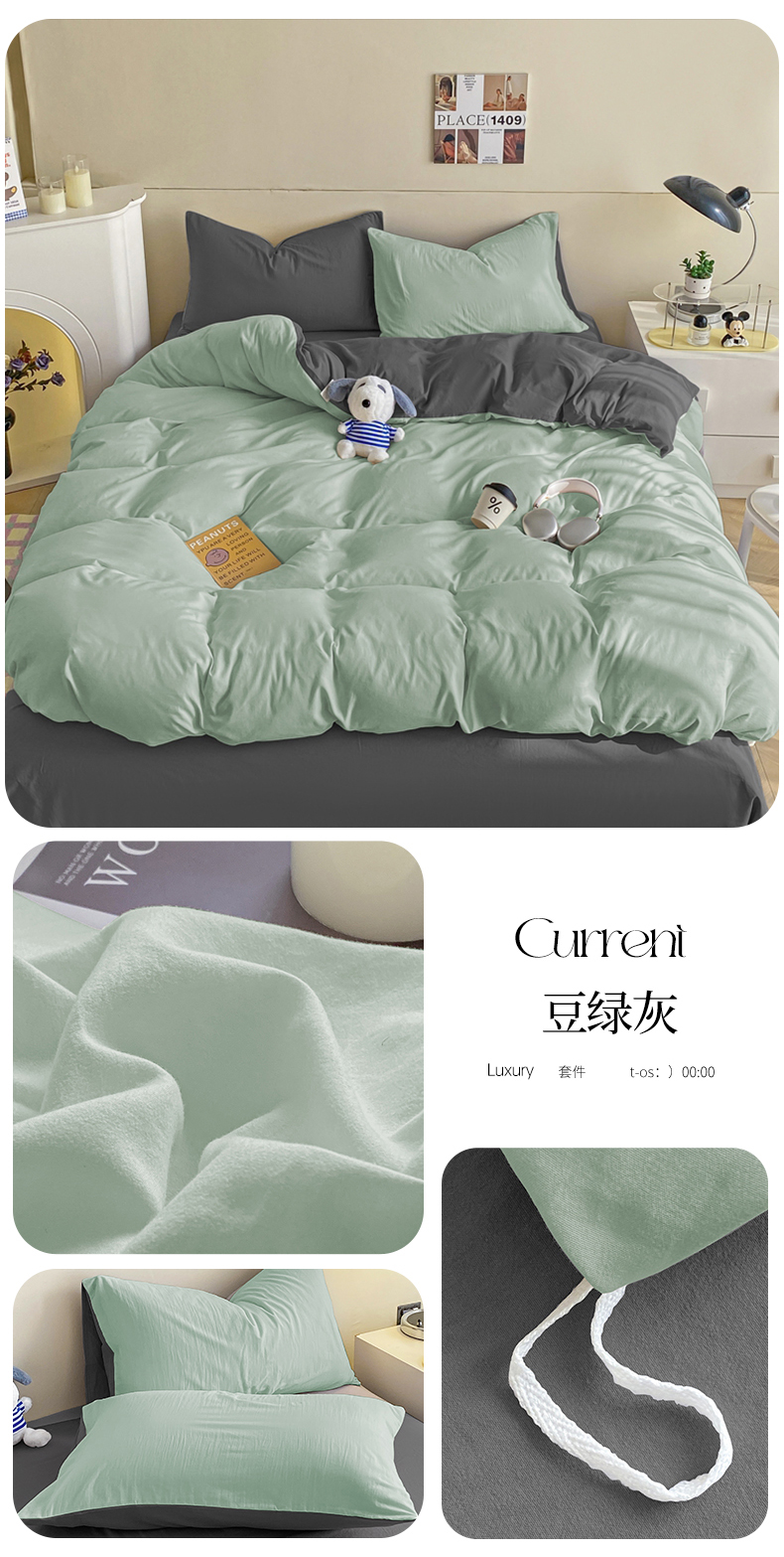 当前位置: 91家纺网 > 商品网购 > 床品套件 > 四件套 > 水洗棉四件套 > 沃朴家居 2024新款亲肤双拼水洗棉四件套学生三件套 豆绿灰