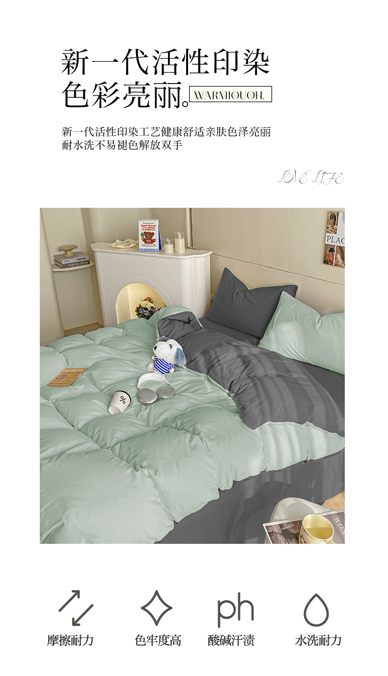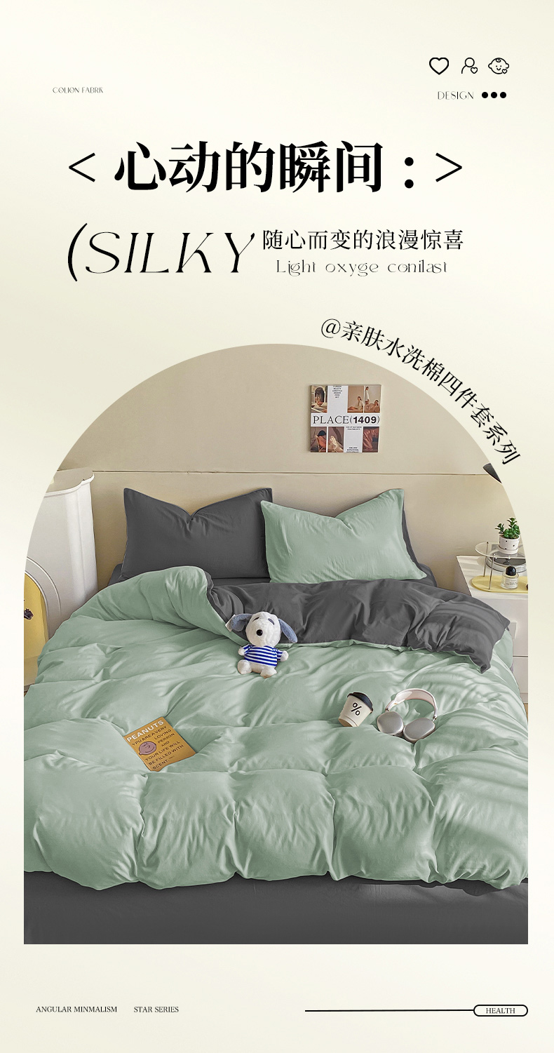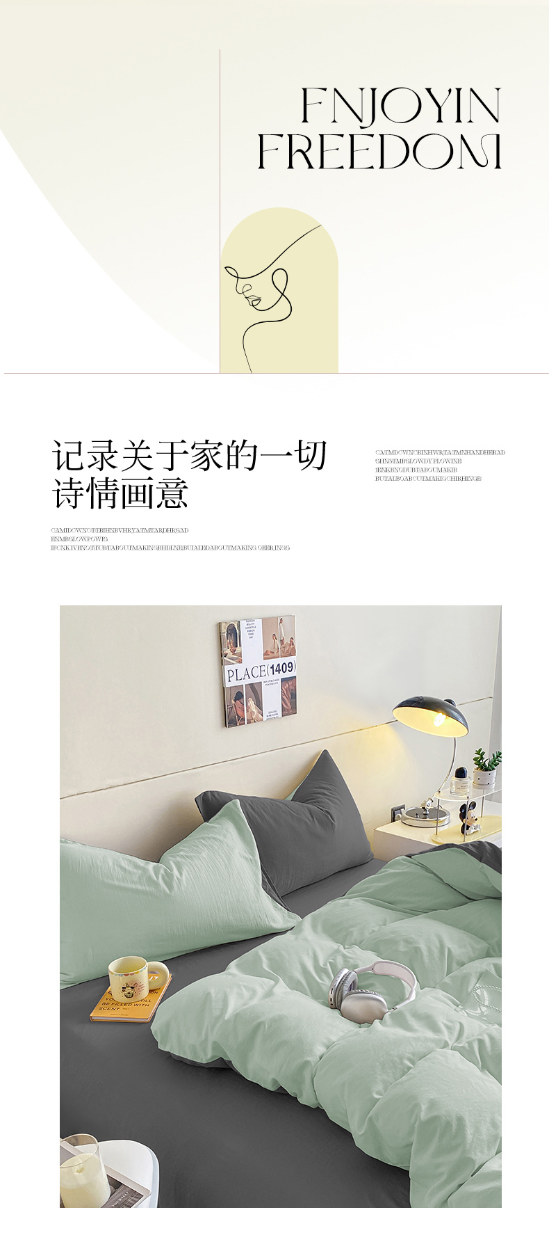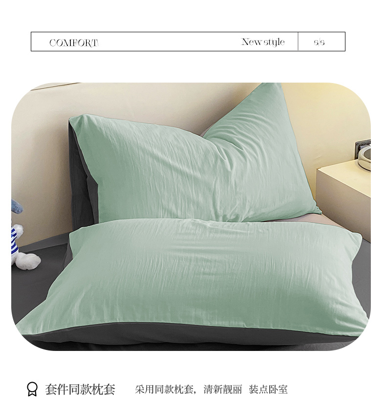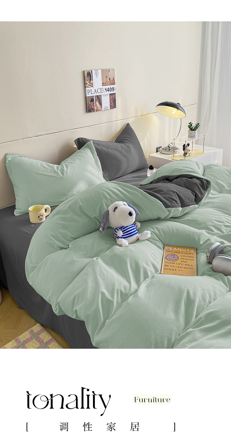 当前位置: 91家纺网 > 商品网购 > 床品套件 > 四件套 > 水洗棉四件套 > 沃朴家居 2024新款亲肤双拼水洗棉四件套学生三件套 豆绿灰