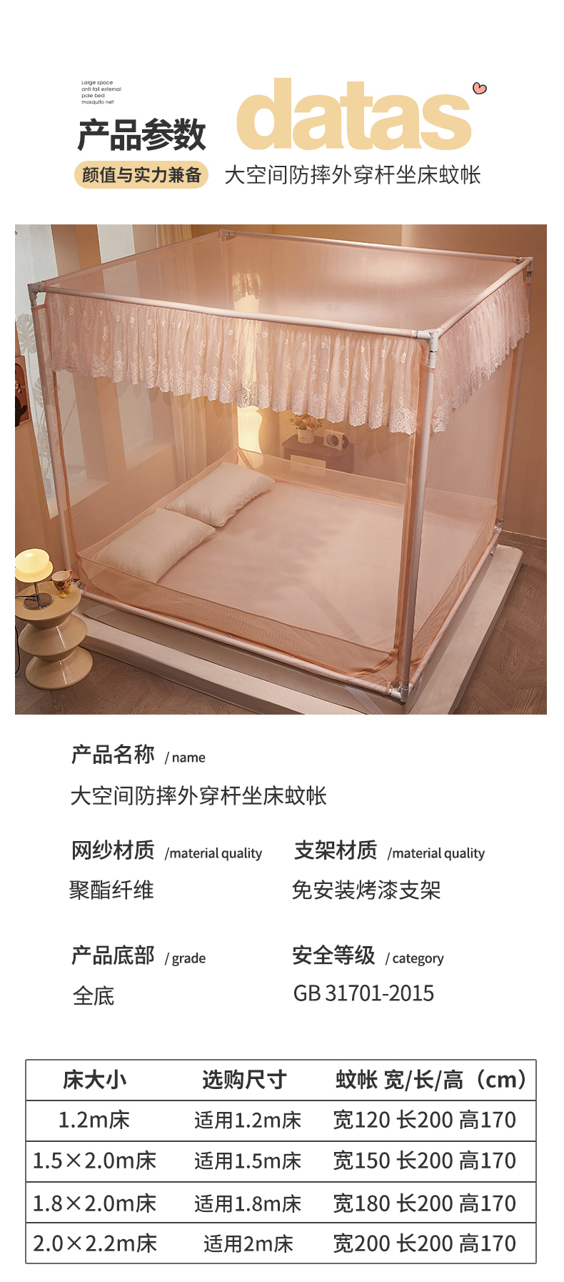 (总)艺利轩蚊帐 2025新款床笠式大空间防摔坐床蚊帐-紫荆花,薄荷绿,奶昔白,柠檬黄,蜜杏色,青春蓝,玉粉色