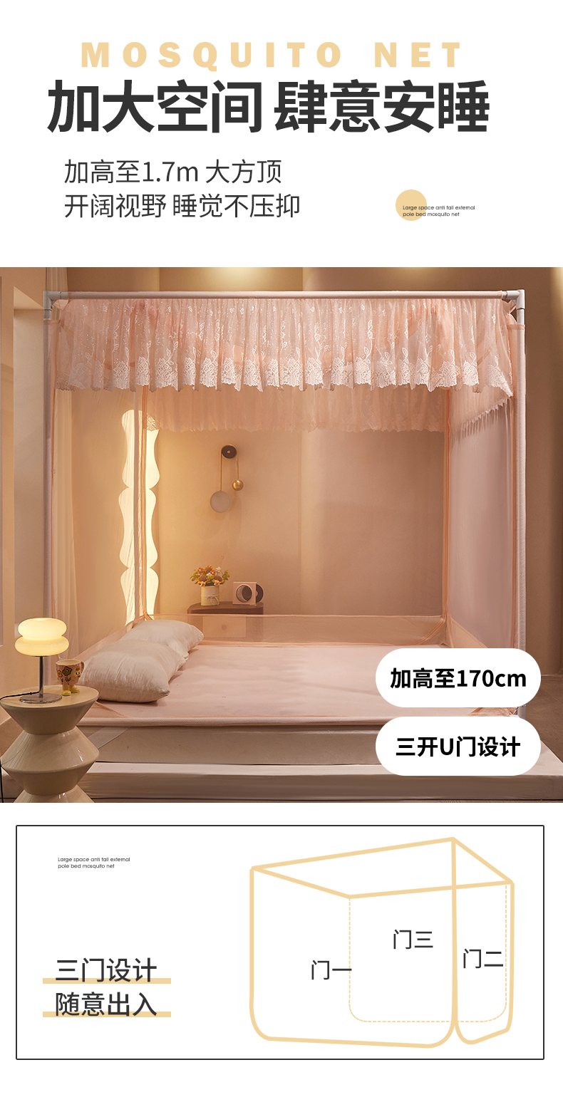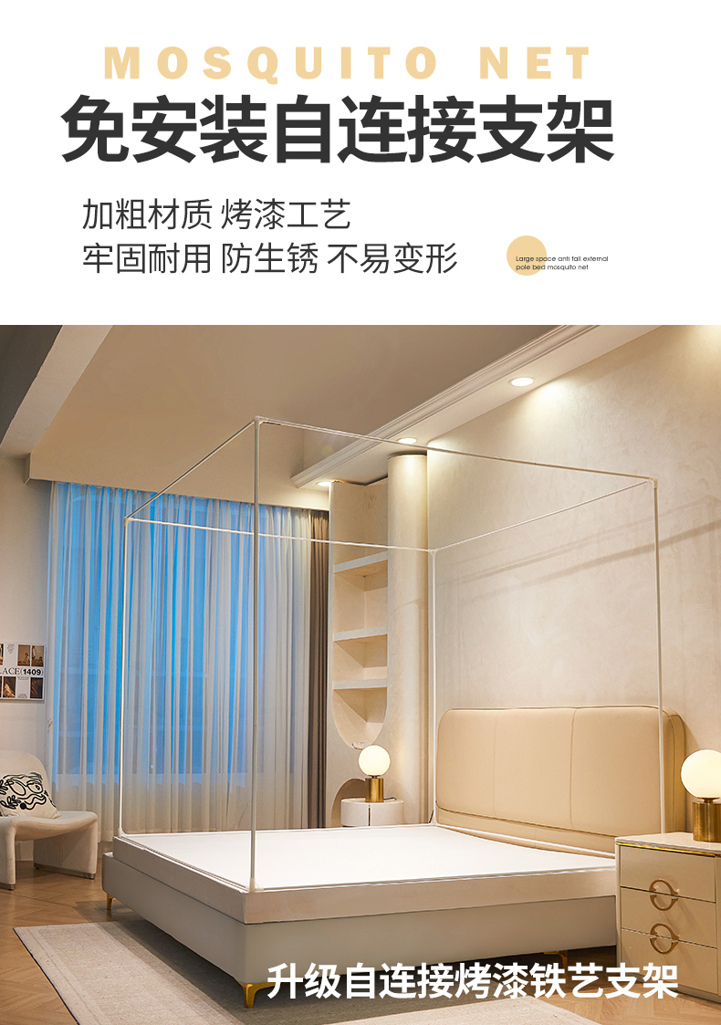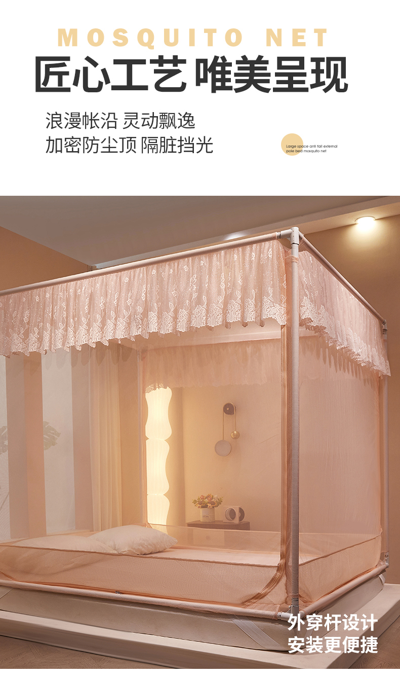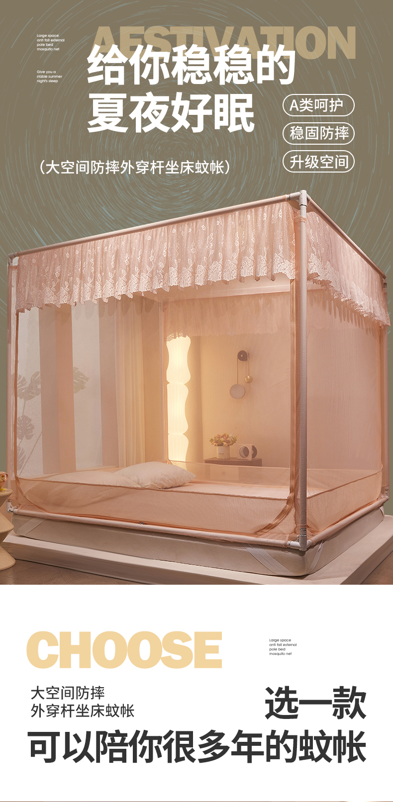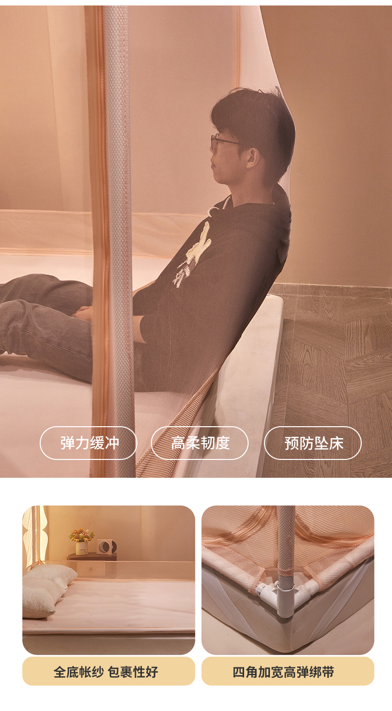 商品名称:艺利轩蚊帐 2025新款大空间防摔外穿杆坐床蚊帐-繁花 繁花 玉色