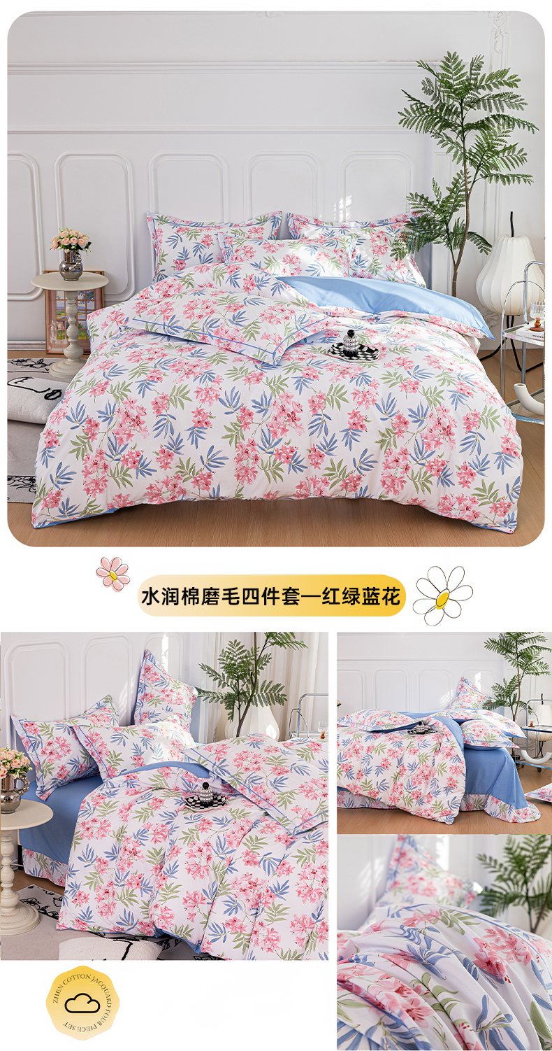 商品名称:雅慕家居 2025新款A类碎花水润棉磨毛四件套 百花齐放