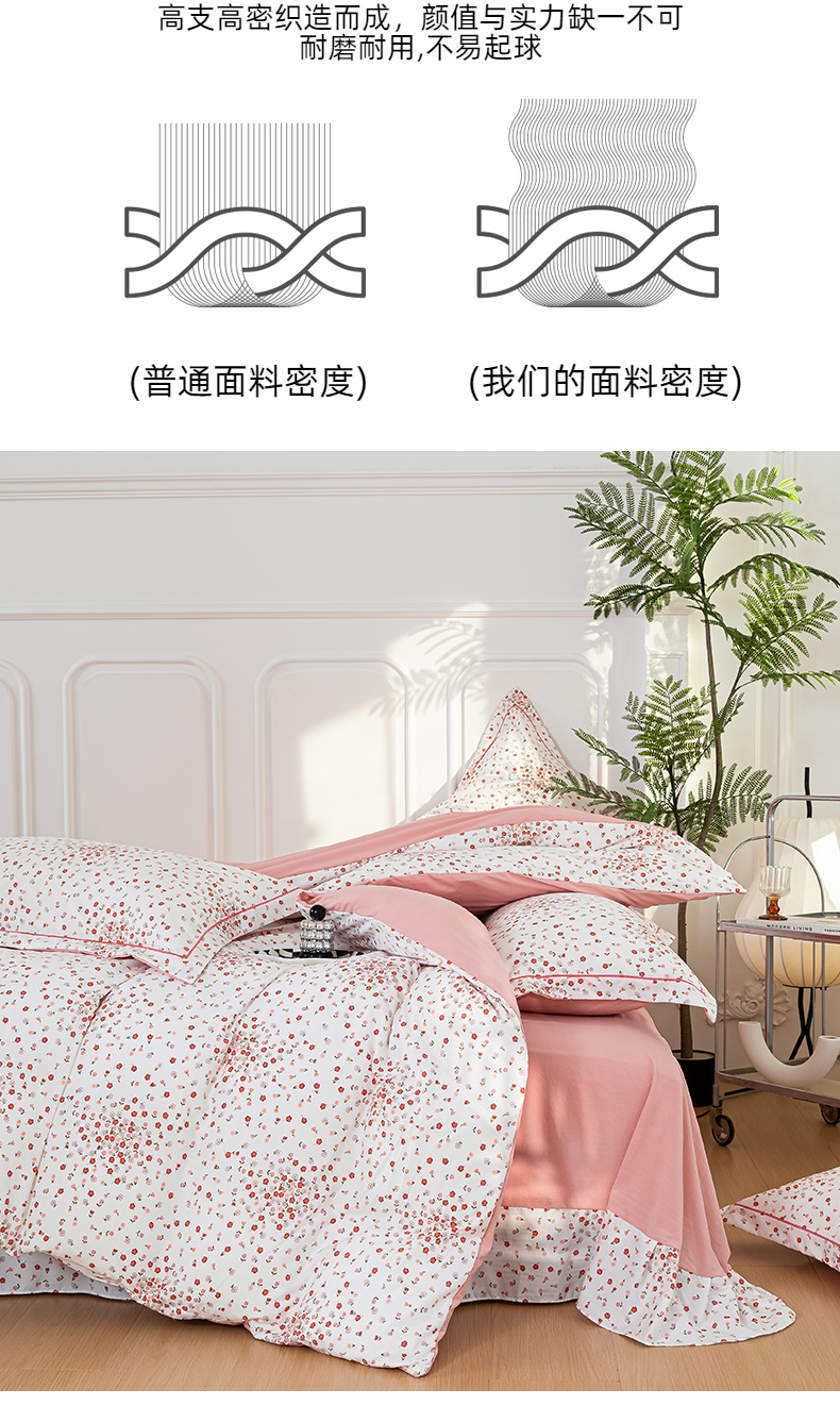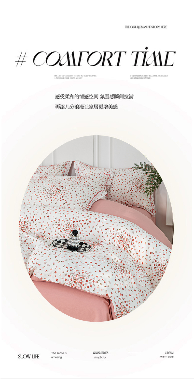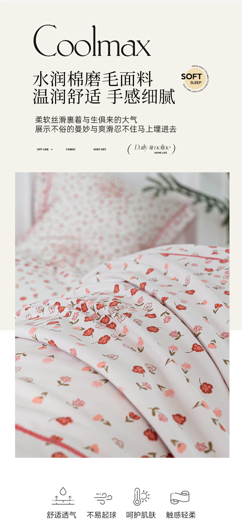 商品名称:雅慕家居 2025新款A类碎花水润棉磨毛四件套 粉粉小花