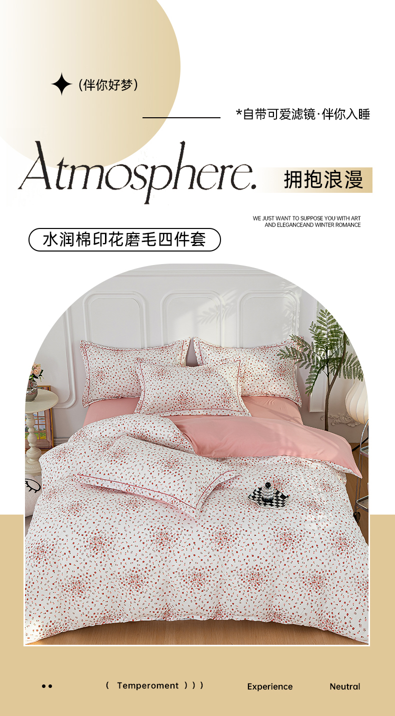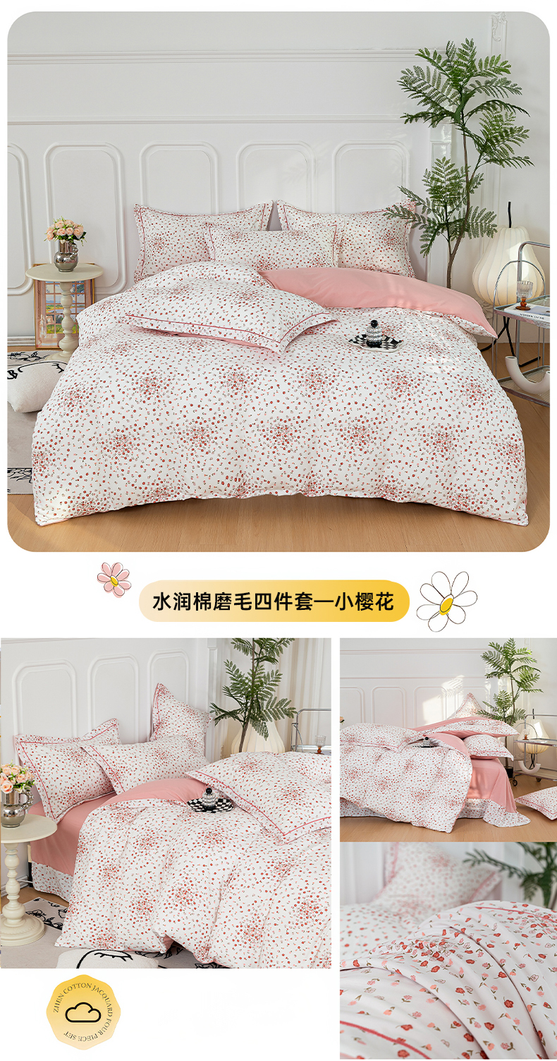 雅慕家居 2025新款A类碎花水润棉磨毛四件套 粉粉小花