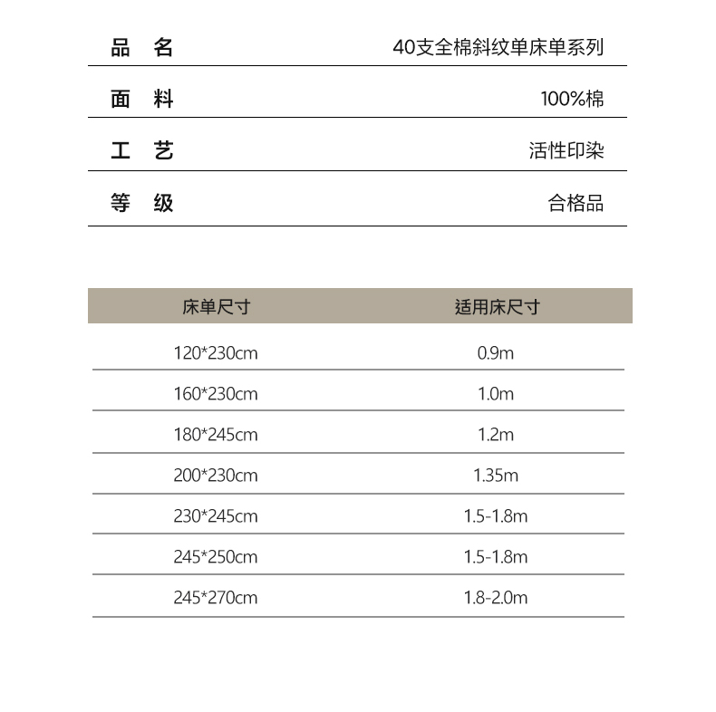 160*230cm单床单