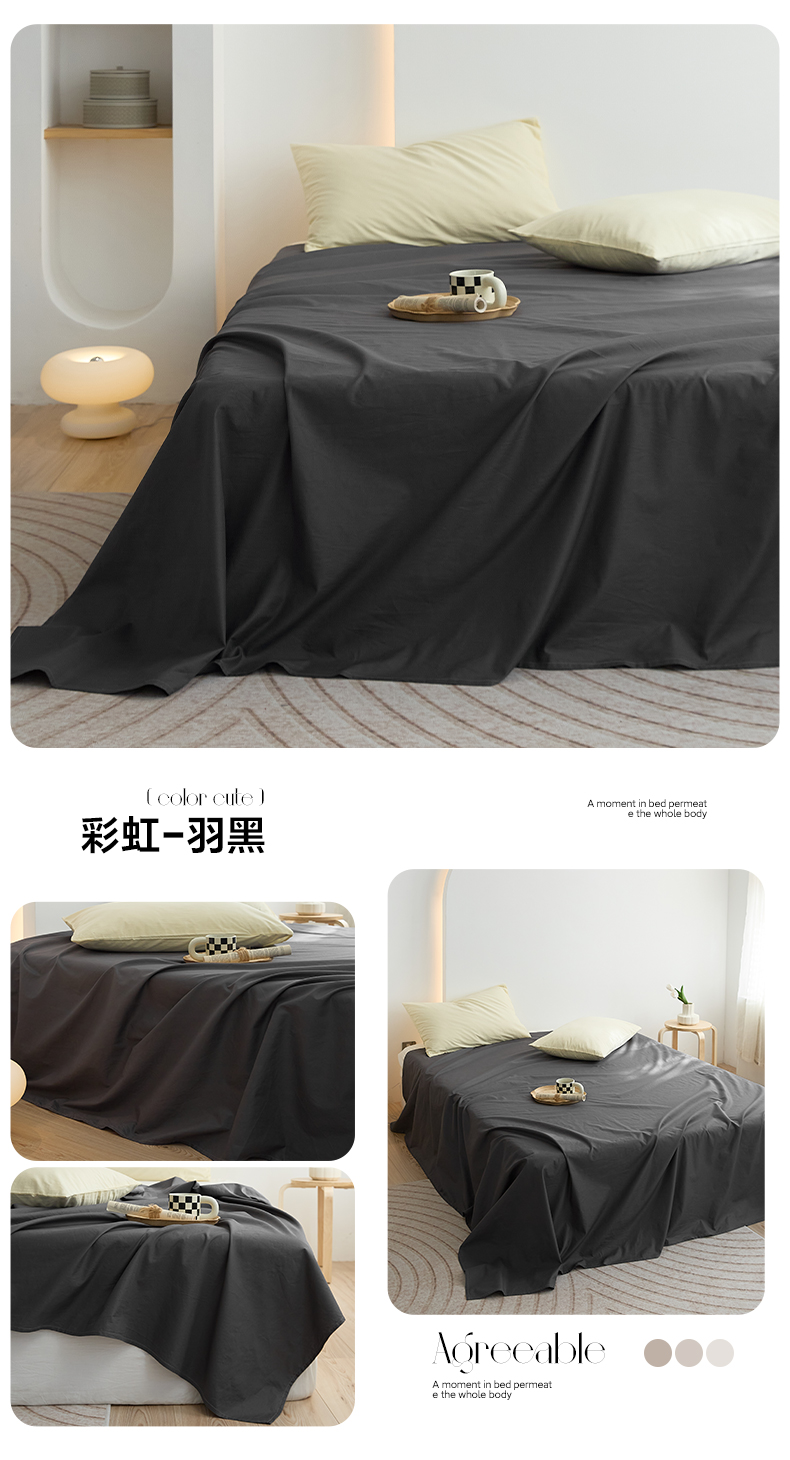 • 91家纺网 家纺一手货源 找家纺 40支纯色彩虹糖系列单品床单 彩虹-羽黑