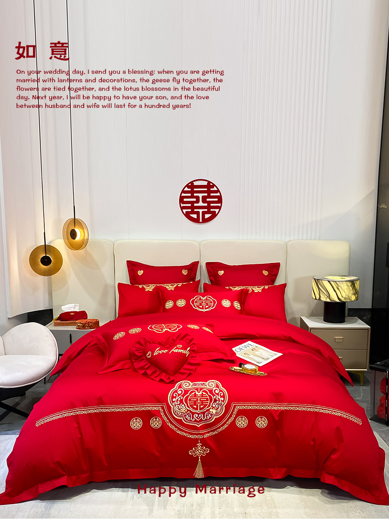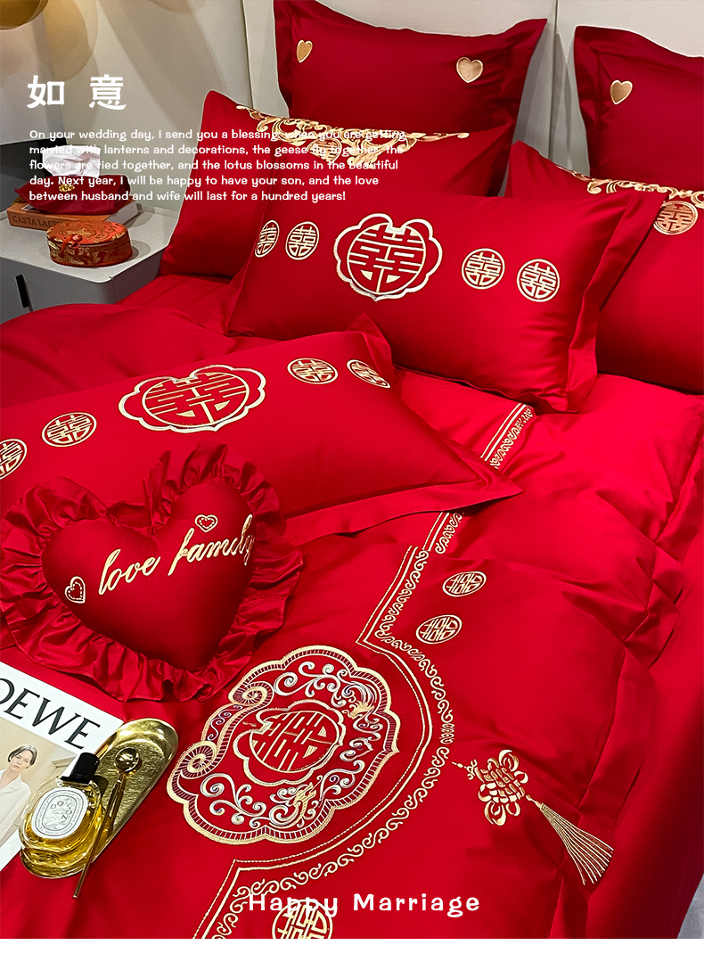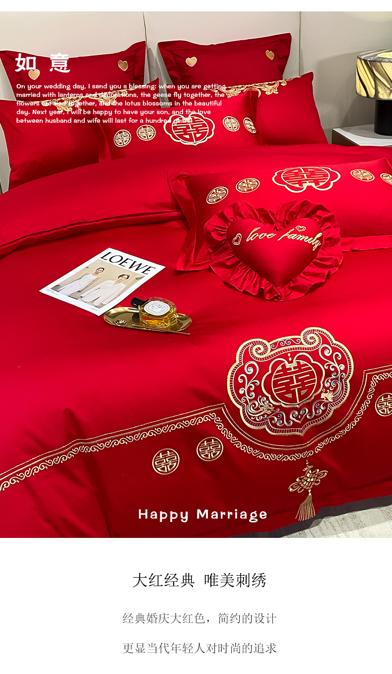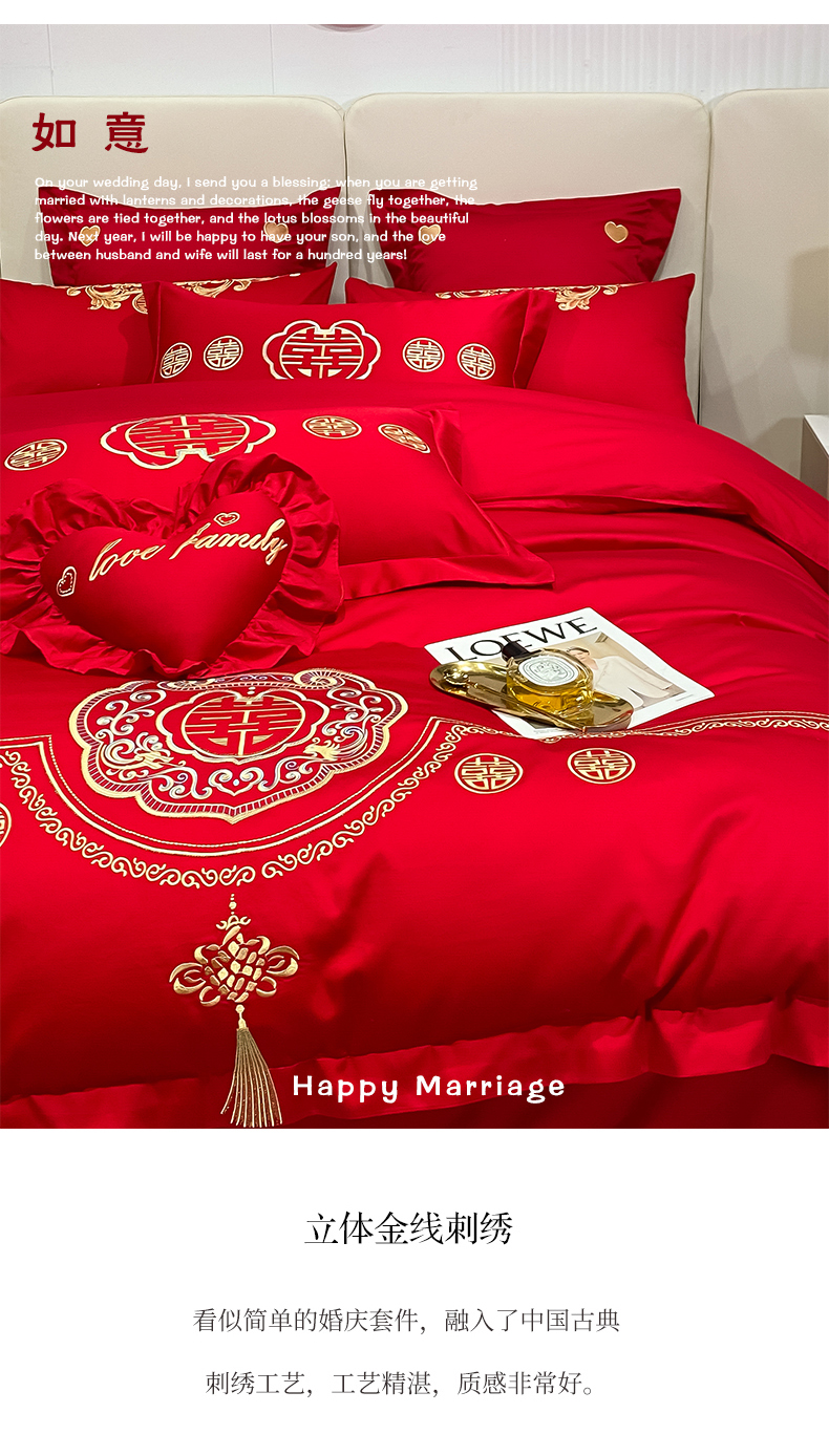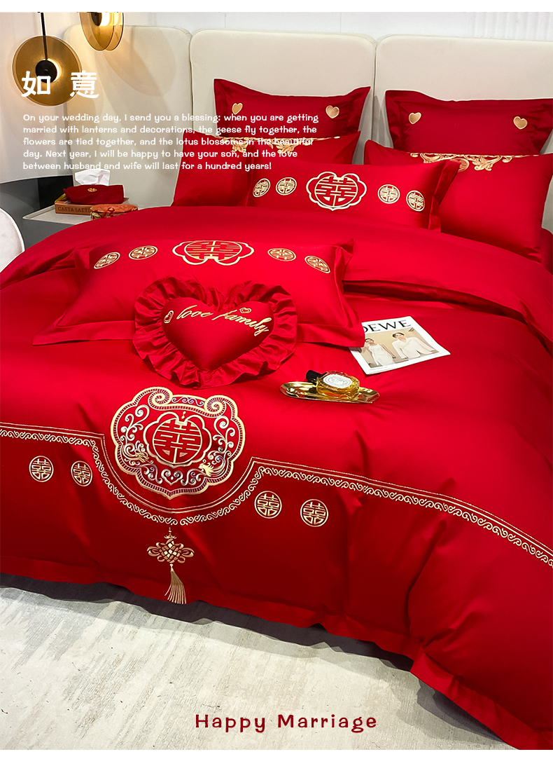 当前位置: 91家纺网 > 商品网购 > 床品套件 > 四件套 > 婚庆四件套 > 东方合美(原:皇家传奇) 2023新款100磨毛婚庆多件套系列 如意