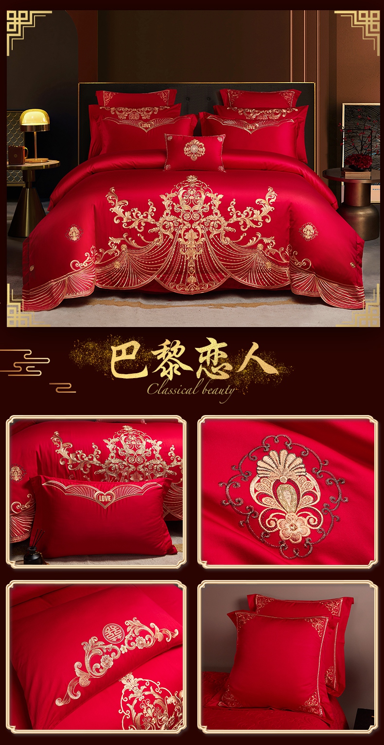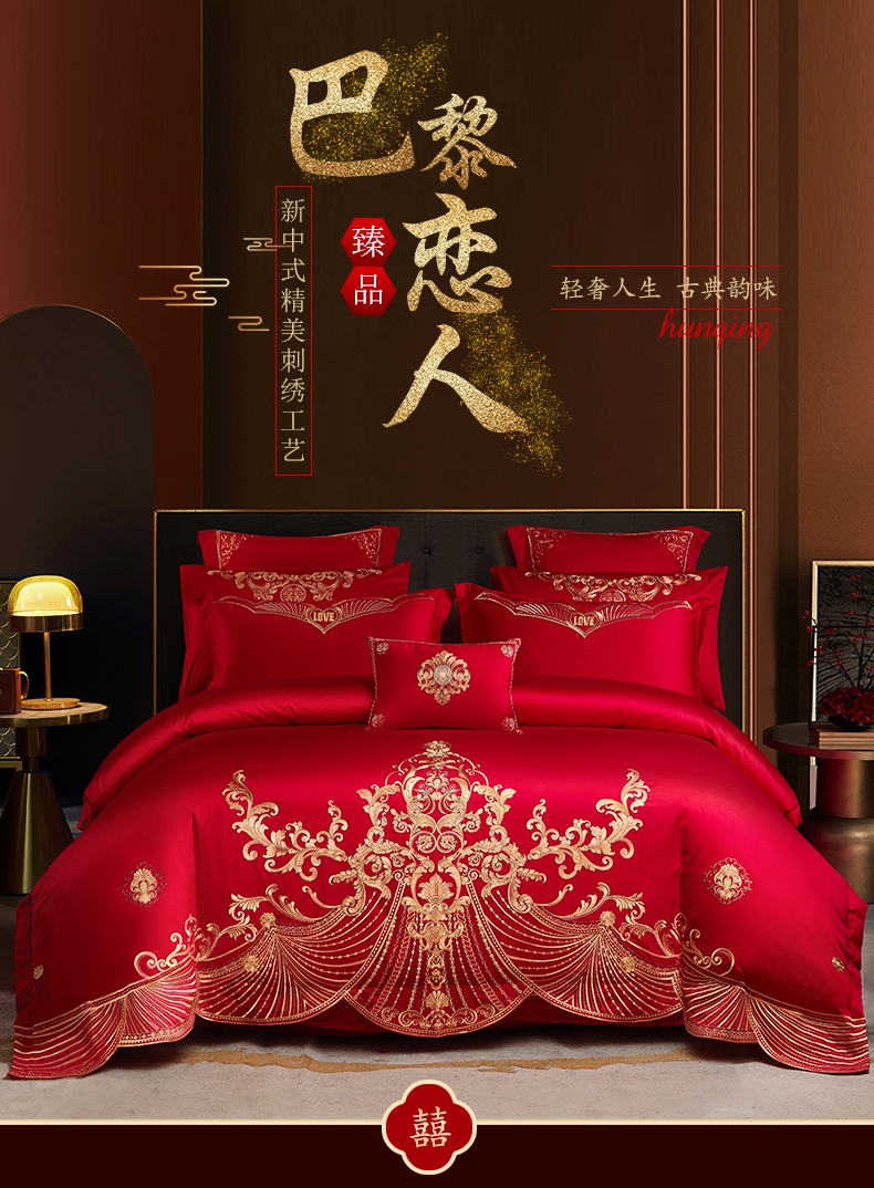 当前位置: 91家纺网 > 商品网购 > 床品套件 > 四件套 > 婚庆四件套 > 东方合美(原:皇家传奇) 2023新款40s全工艺喷气刺绣纯棉婚庆多件套-系列三 巴黎恋人