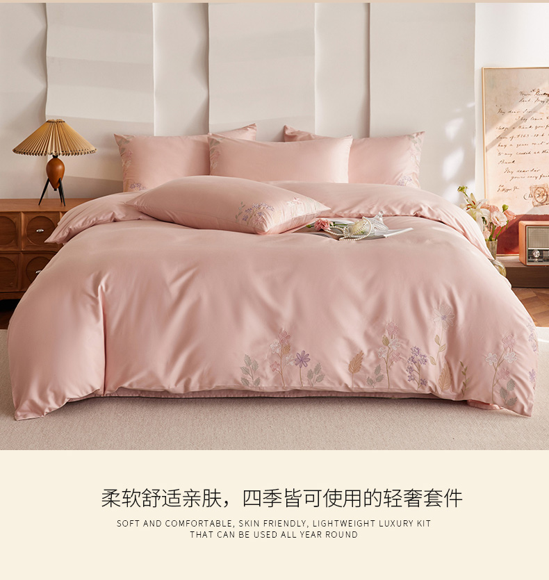 (总)爱缦2025新款海边假日系列60支莱赛尔四件套风格一,粉,蓝