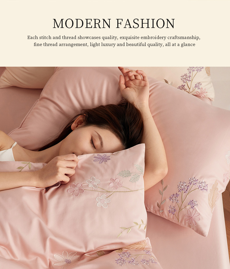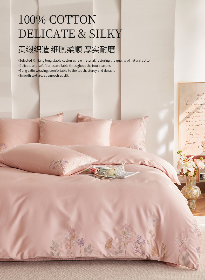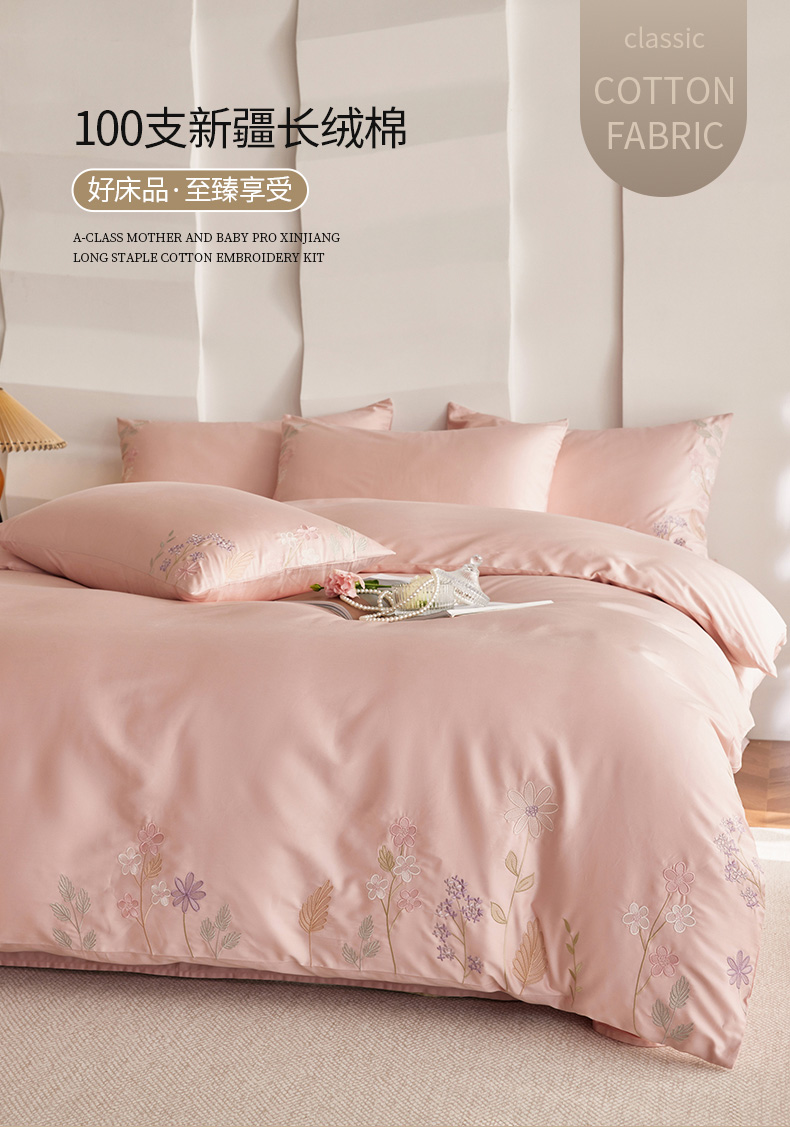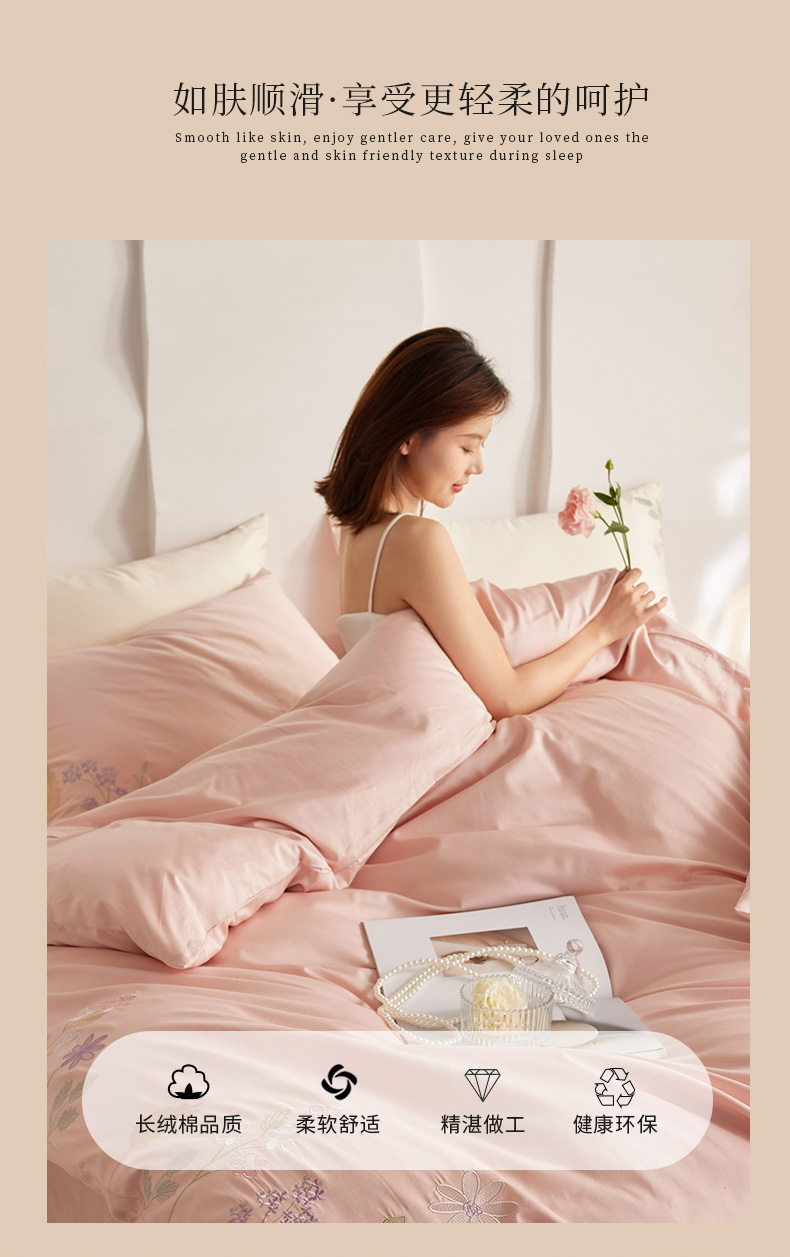 (总)爱缦 2025新款花草自春风系列100支新疆长绒棉四件套,柏林少女,清水芙蓉,云朵吐司