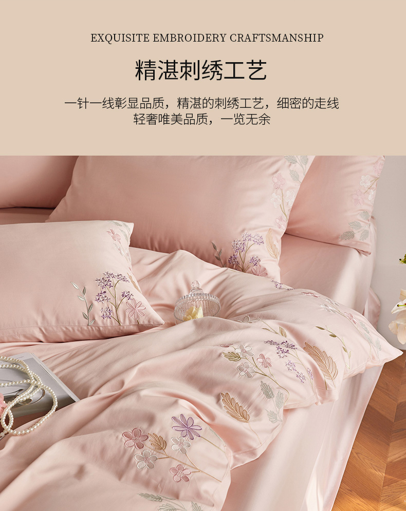 (总)爱缦 2025新款100支新疆长绒棉刺绣四件套-时光系列,时光-薄荷青,时光-芙蓉粉,时光-元气白桃