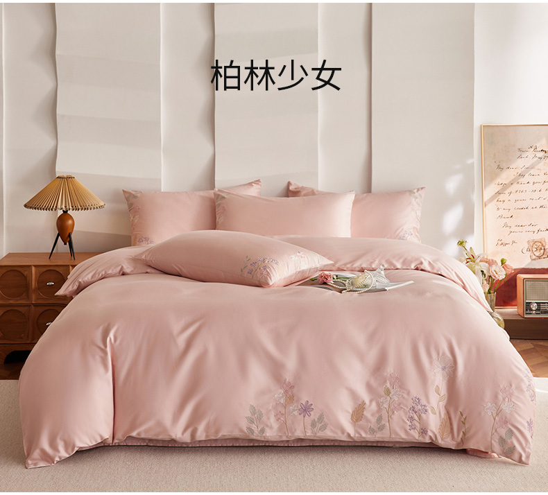商品名称:爱缦 2025新款花草自春风系列100支新疆长绒棉四件套 柏林少女