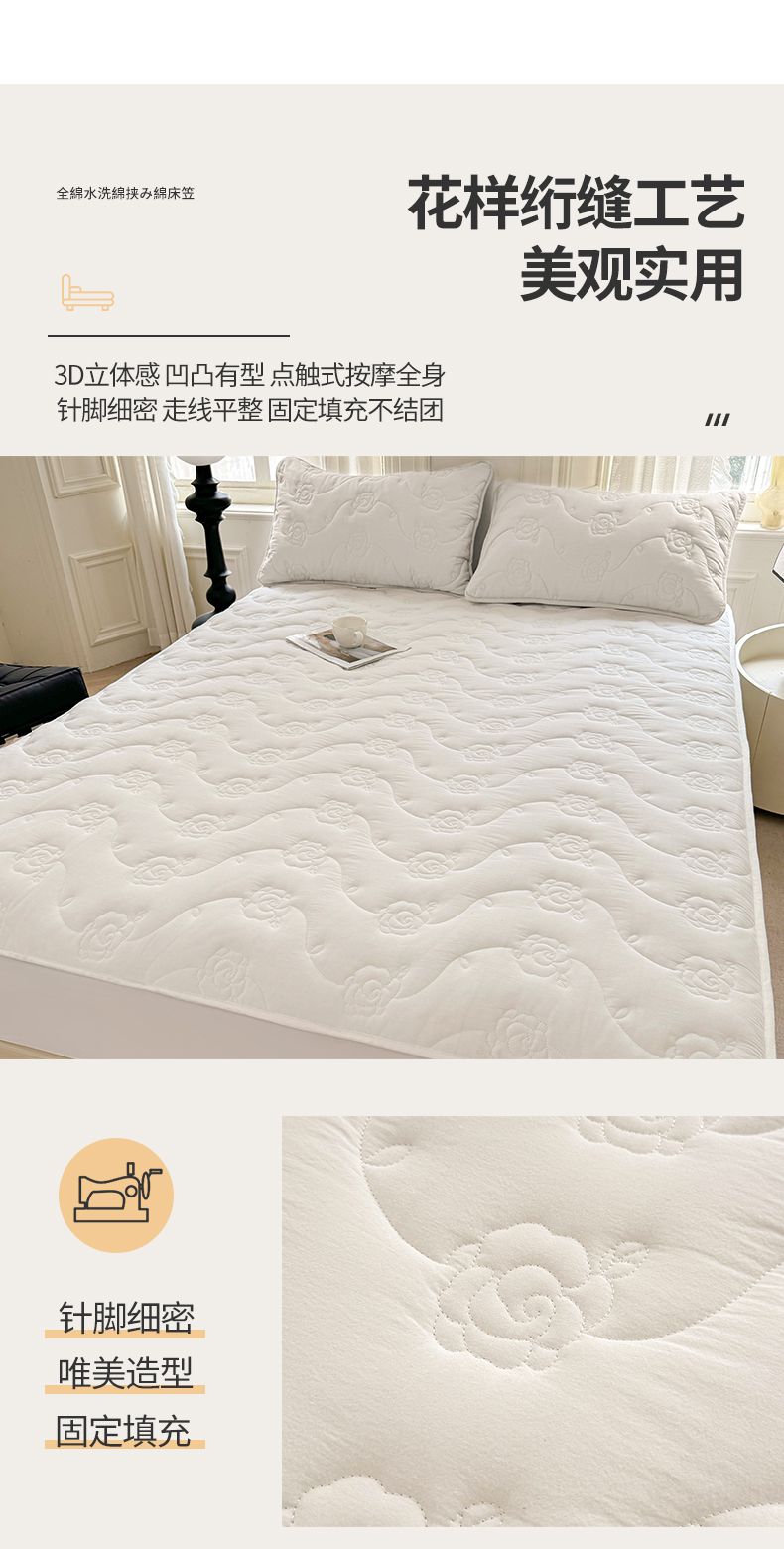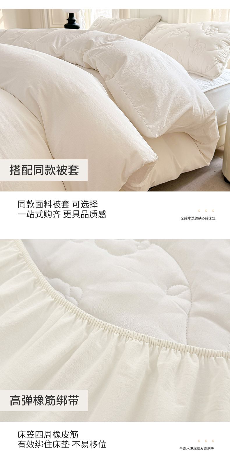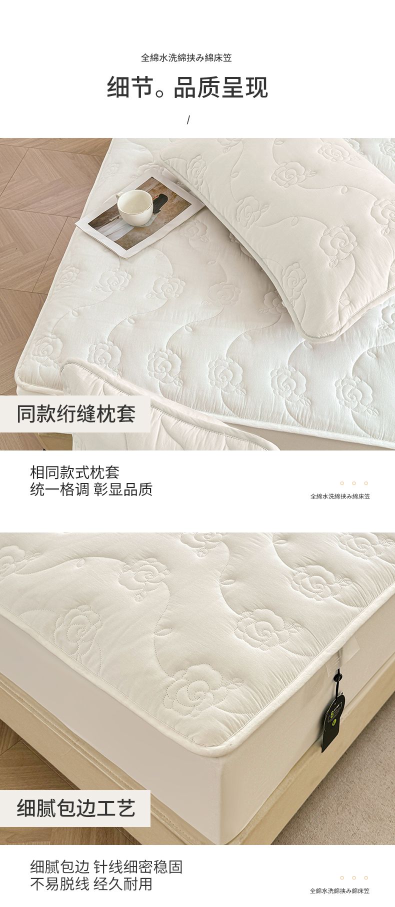 • 91家纺网 家纺一手货源 找家纺 3C 2024新款全棉水洗棉夹棉玫瑰床笠-花语系列 花语 奶昔白