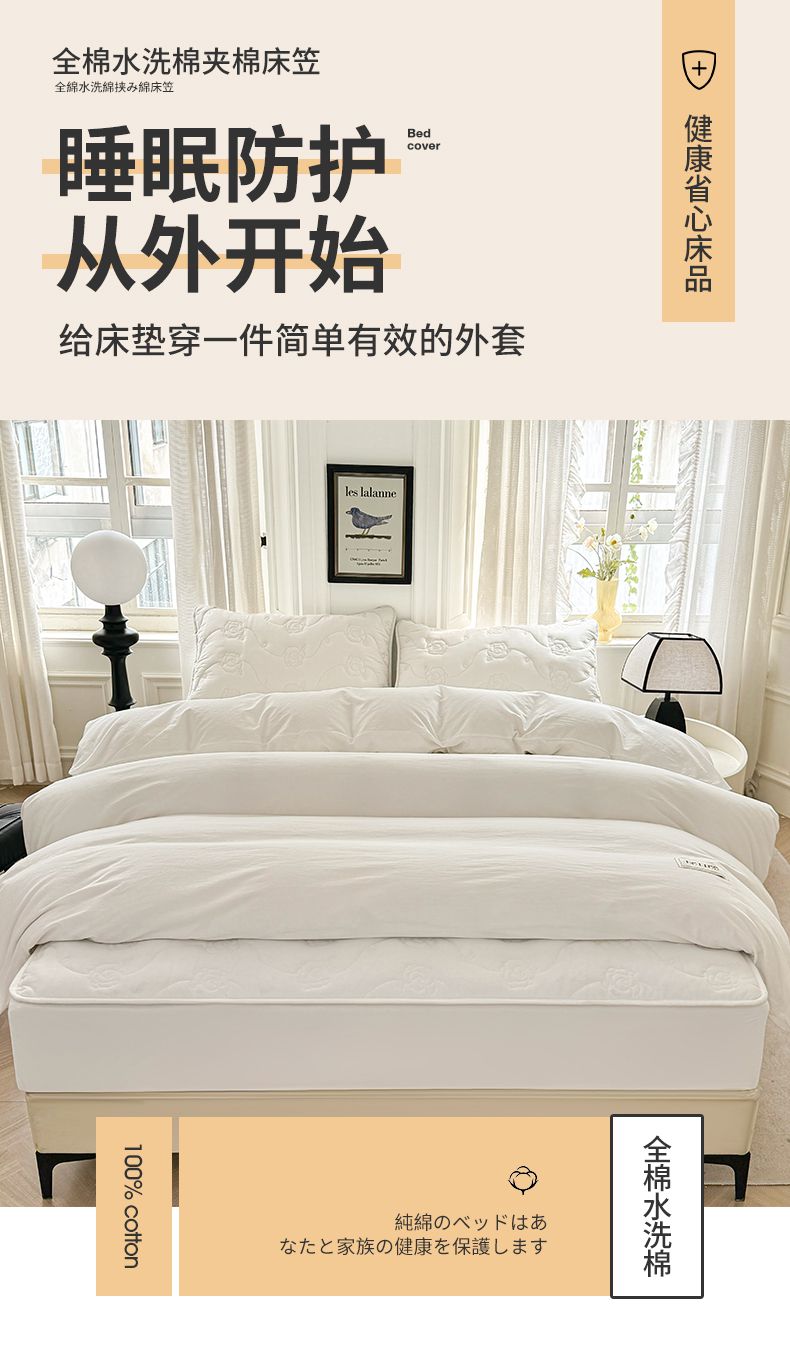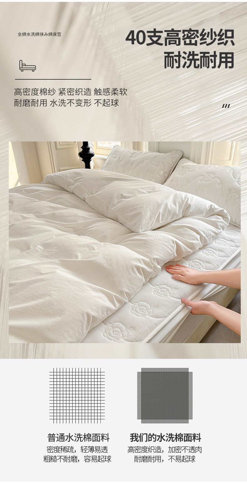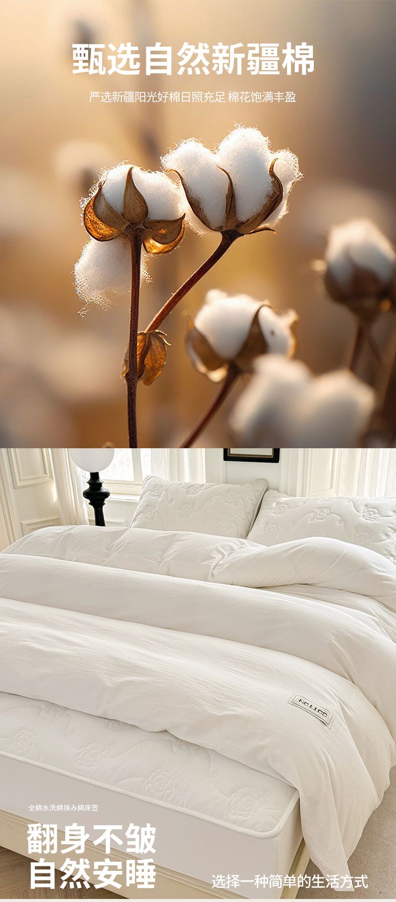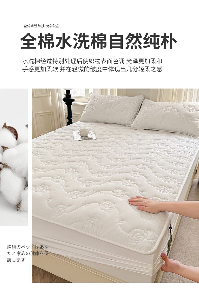 • 91家纺网 家纺一手货源 找家纺 3C 2024新款全棉水洗棉夹棉玫瑰床笠-花语系列 花语 奶昔白