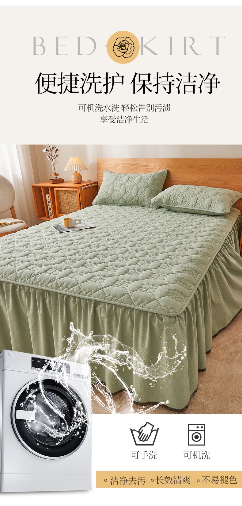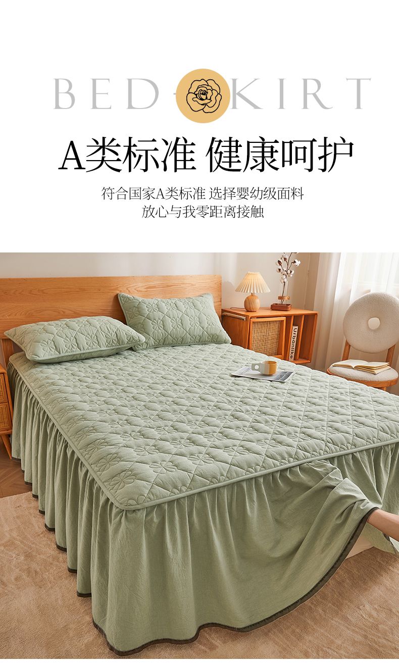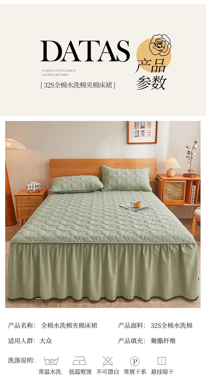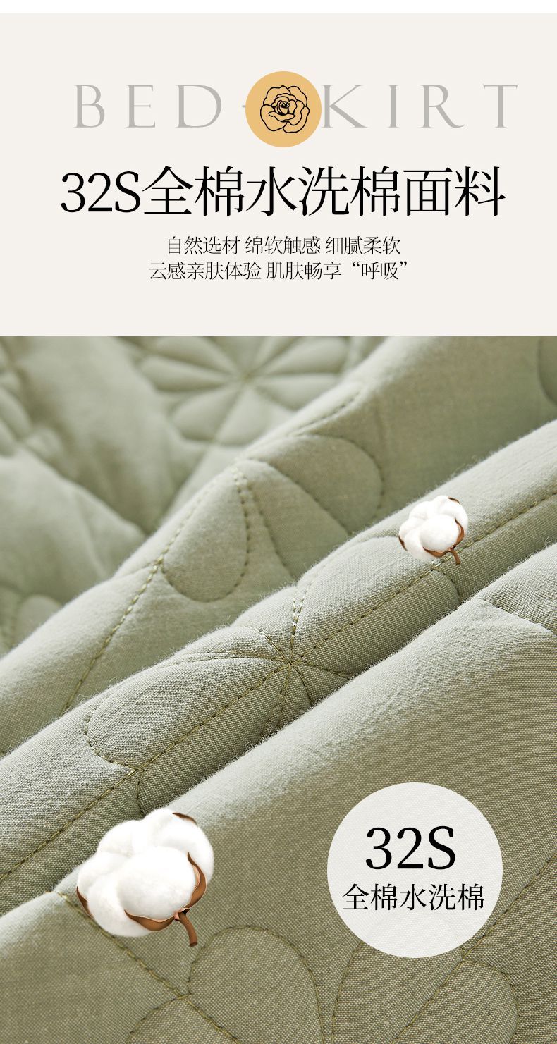 商品名称:3C 2024新款全棉水洗棉夹棉床裙-四叶草系列 四叶草-抹茶绿
