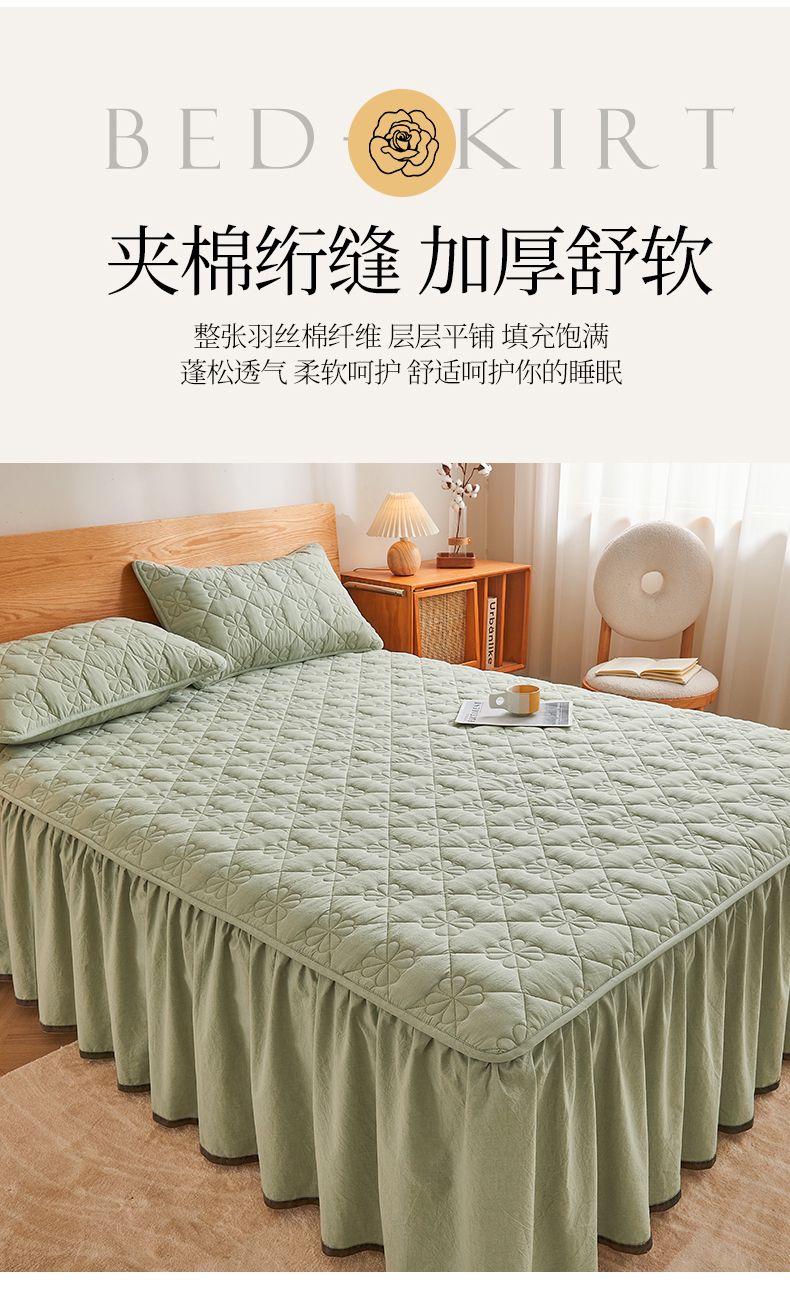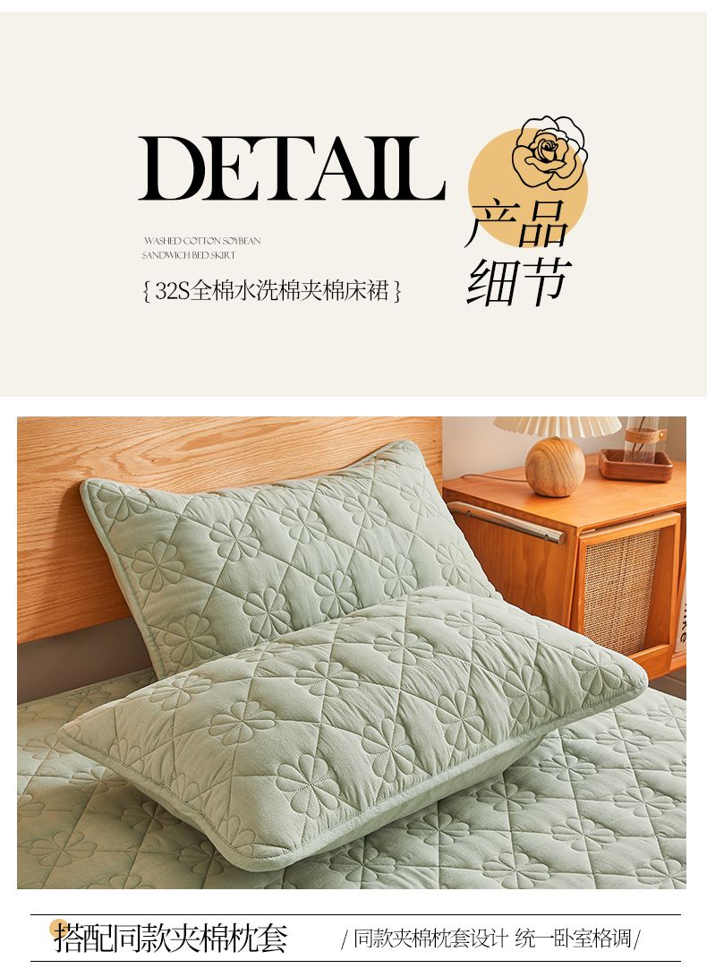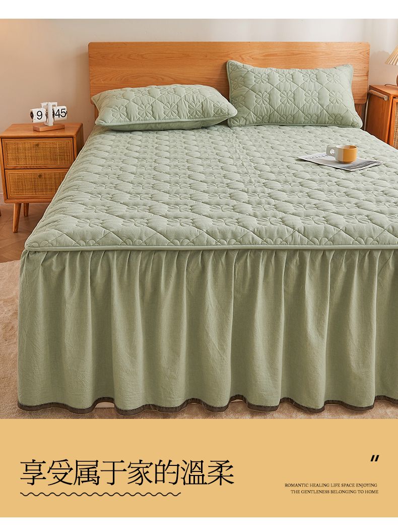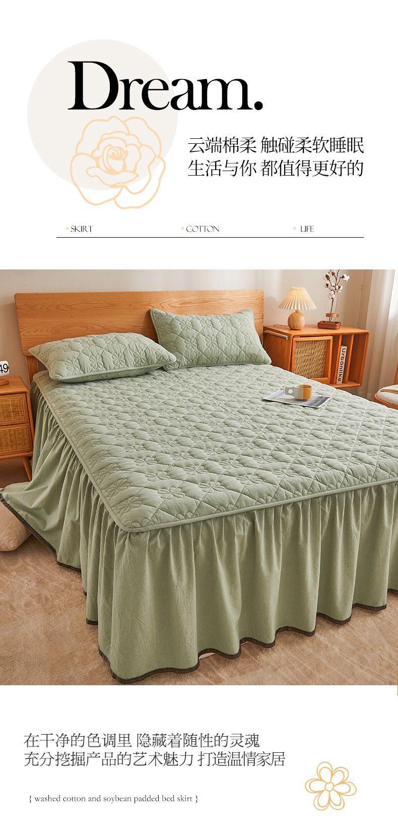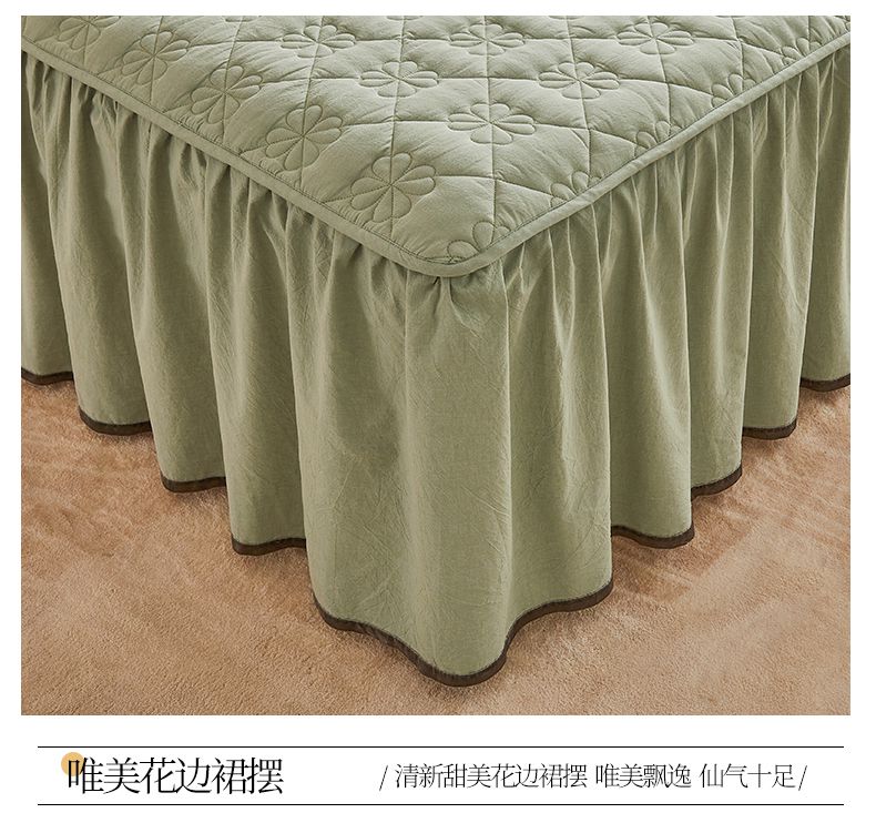 商品名称:3C 2024新款全棉水洗棉夹棉床裙-四叶草系列 四叶草-抹茶绿