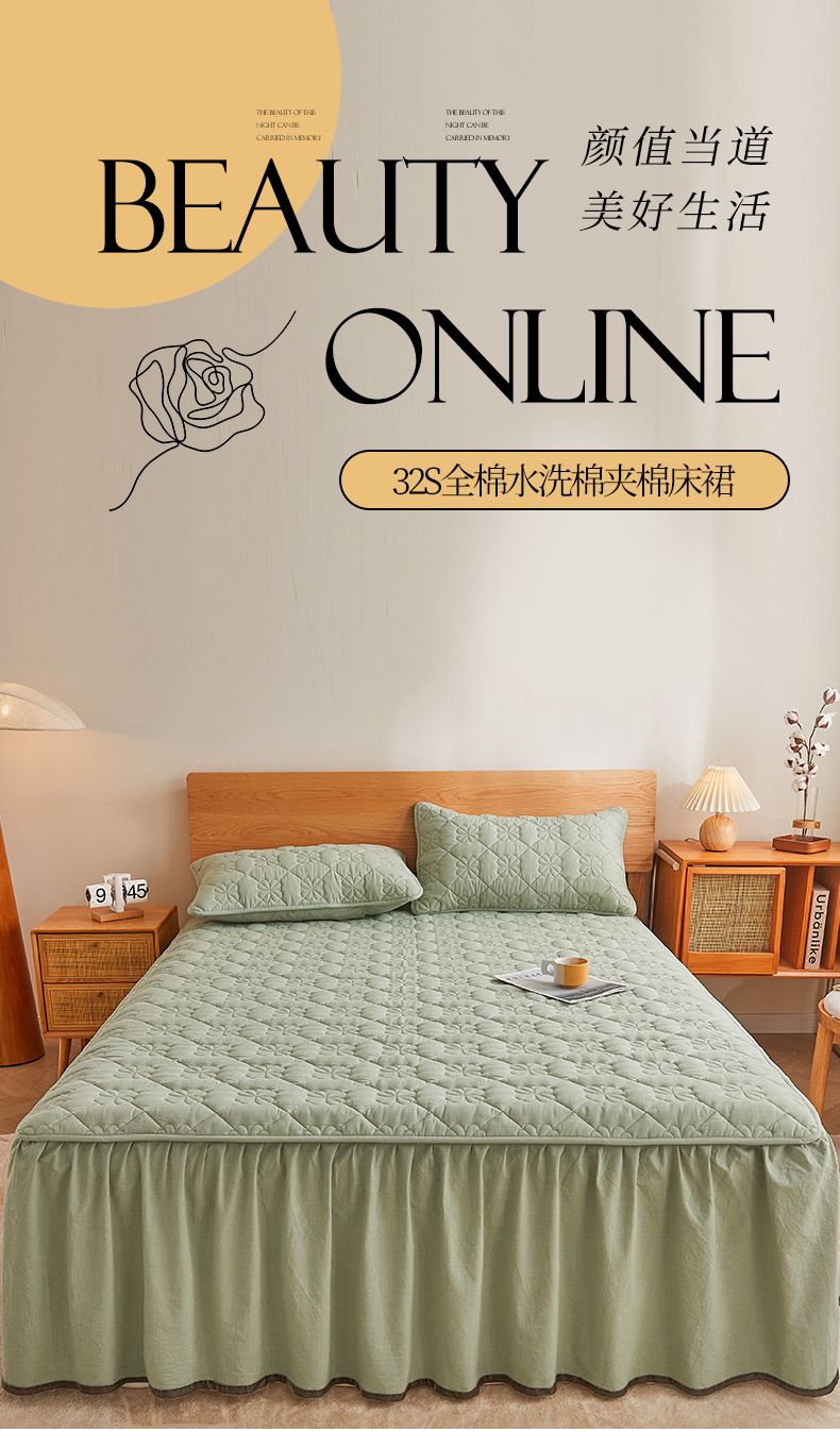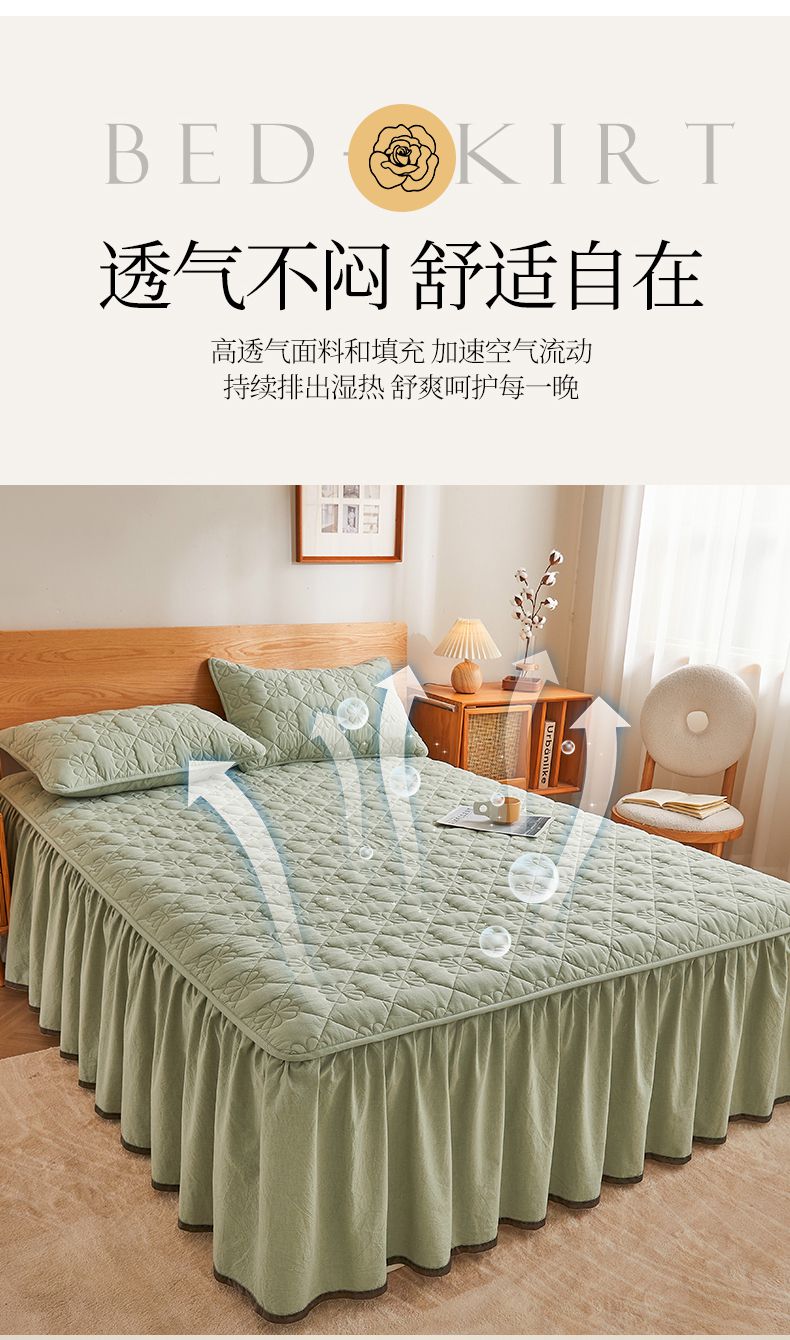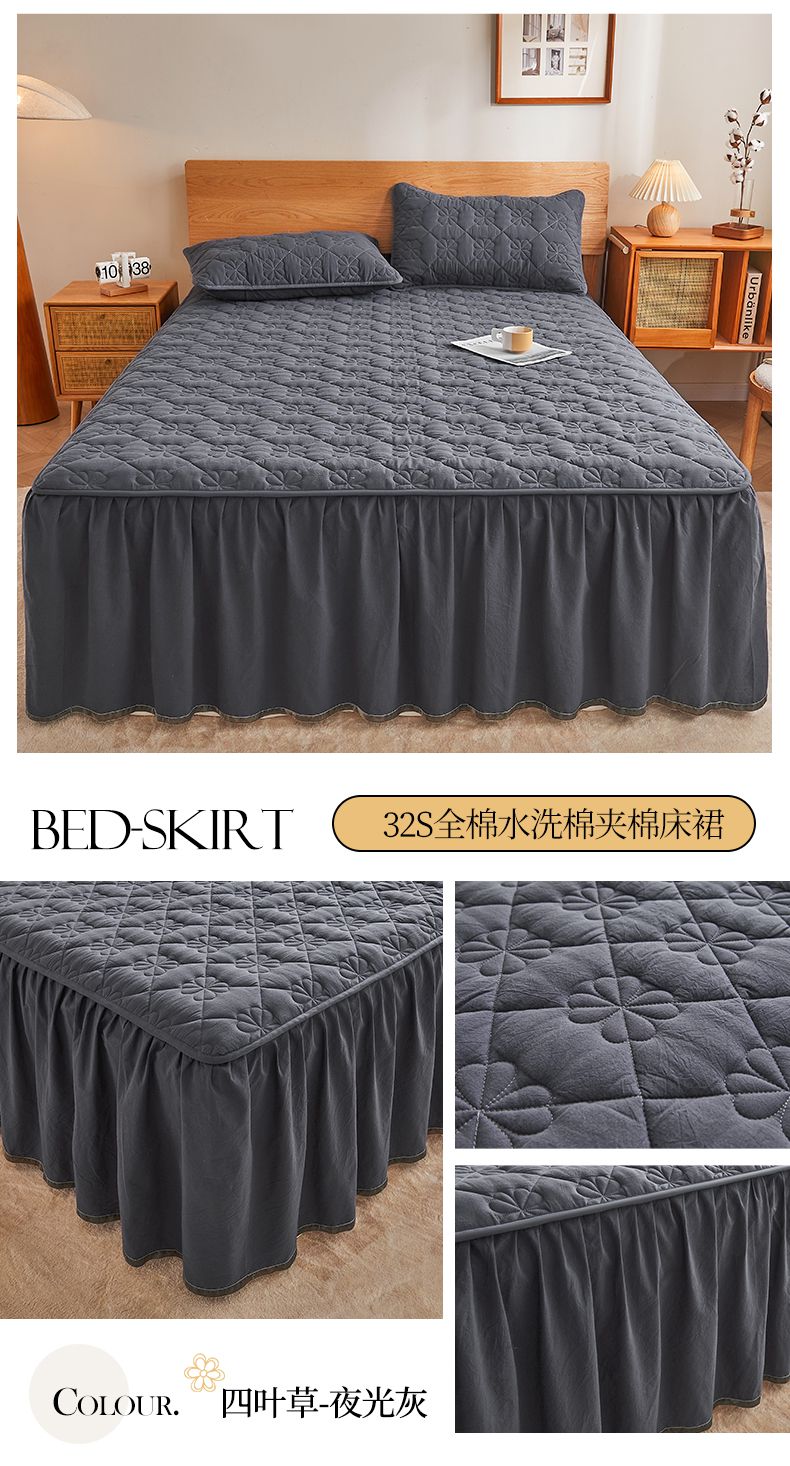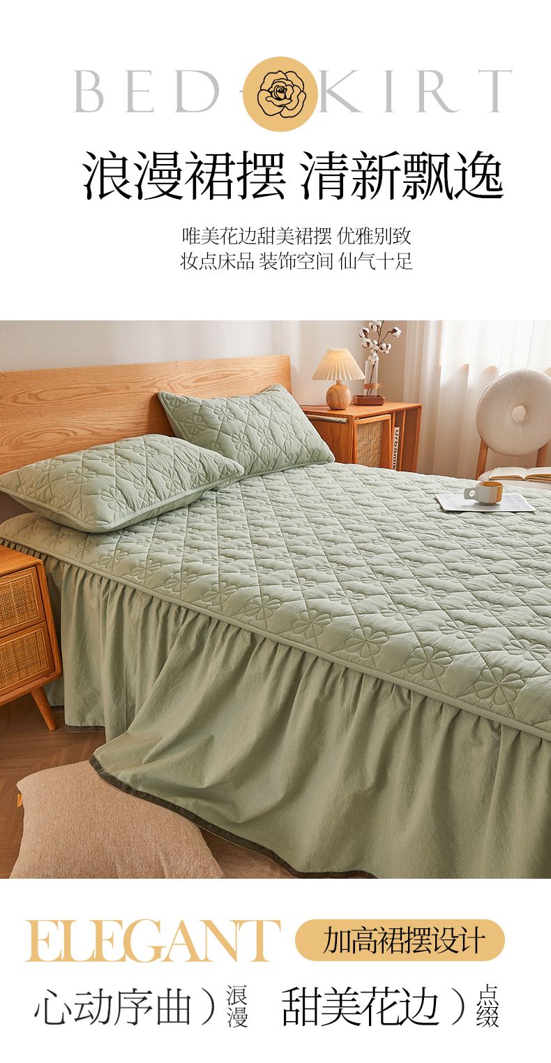 商品名称:3C 2024新款全棉水洗棉夹棉床裙-四叶草系列 四叶草-抹茶绿