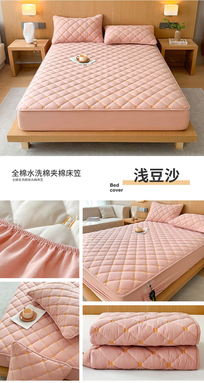 (总)3C 2025新款全棉水洗棉刺绣夹棉床笠,漫生活 豆沙粉,漫生活 简意灰 ,漫生活 卡其,漫生活 云朵白,组合图