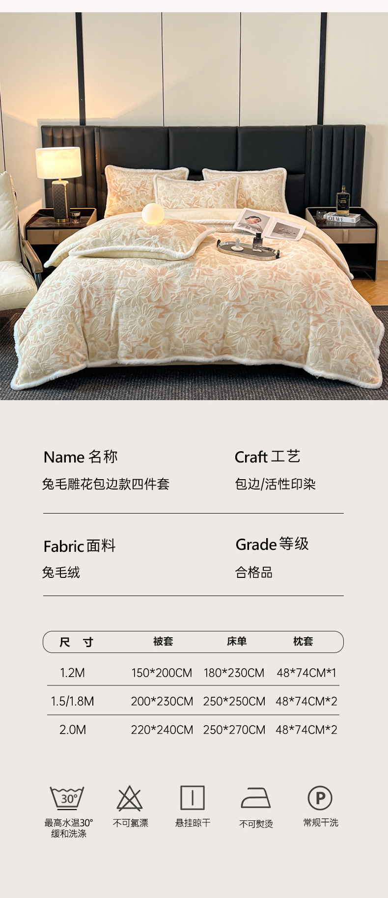 商品名称:畅畅家纺 2025新款兔毛绒大包边雕花牛奶绒绒四件套 梵花-米白