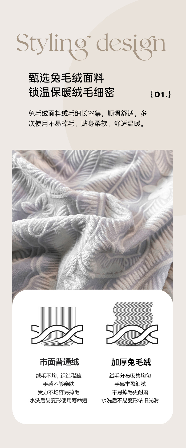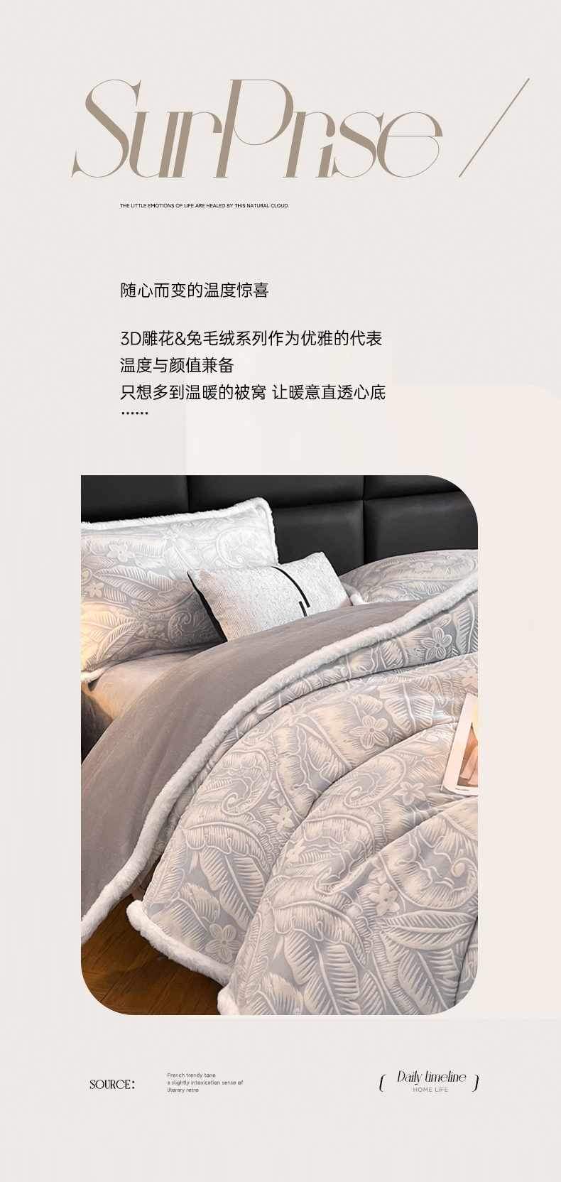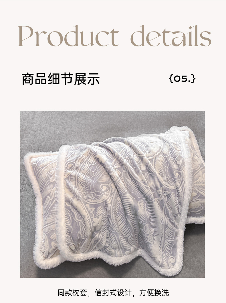 商品名称:畅畅家纺 2025新款兔毛绒大包边雕花牛奶绒绒四件套 叶语-灰