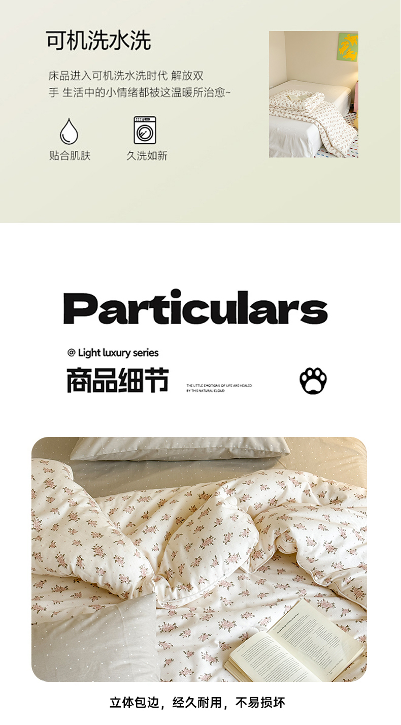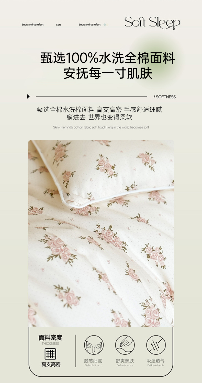 当前位置: 91家纺网 > 商品网购 > 床品套件 > 四件套 > 其它四件套 > 亿莱鑫 2025新款全棉水洗棉7A抗菌被子四件套(带质检报告) 蔷薇花