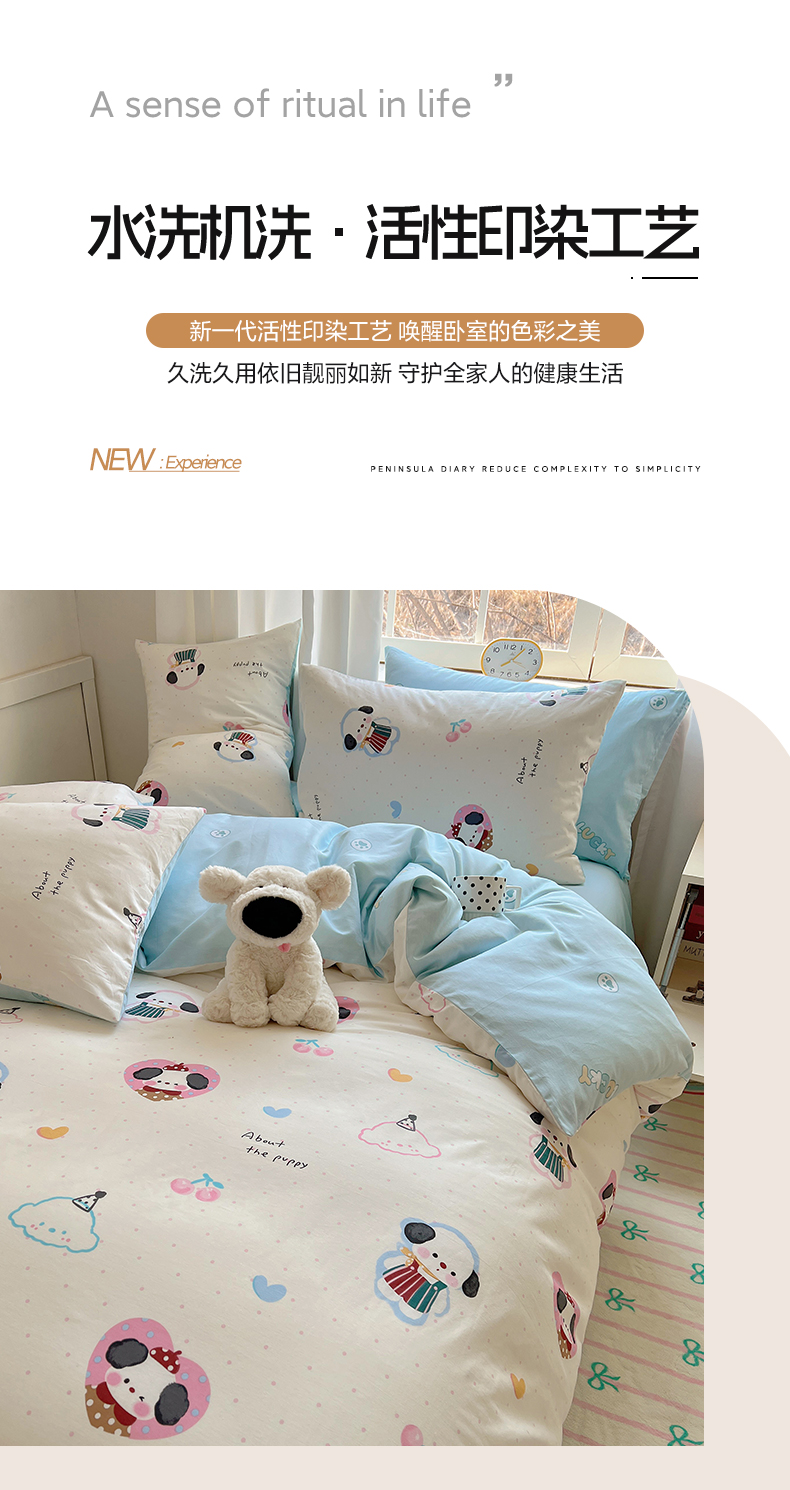 (总)雅居纺家纺 2026新款全棉小清新印花四件套,HI小狗,暴富,草莓蓝花,粉色熊熊,红红火火,简笔画小兔,蓝条花朵兔,绿色小兔,森林乐园,绅士快乐狗,贪睡猫猫,贪玩家族,贪玩小兔兔,祥瑞,小黑猫咪,幸福花朵,幸福兔-蓝,熊熊小汽车,紫色千鸟格