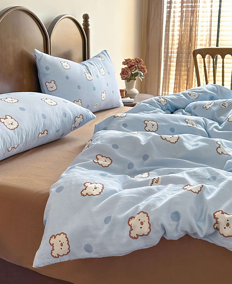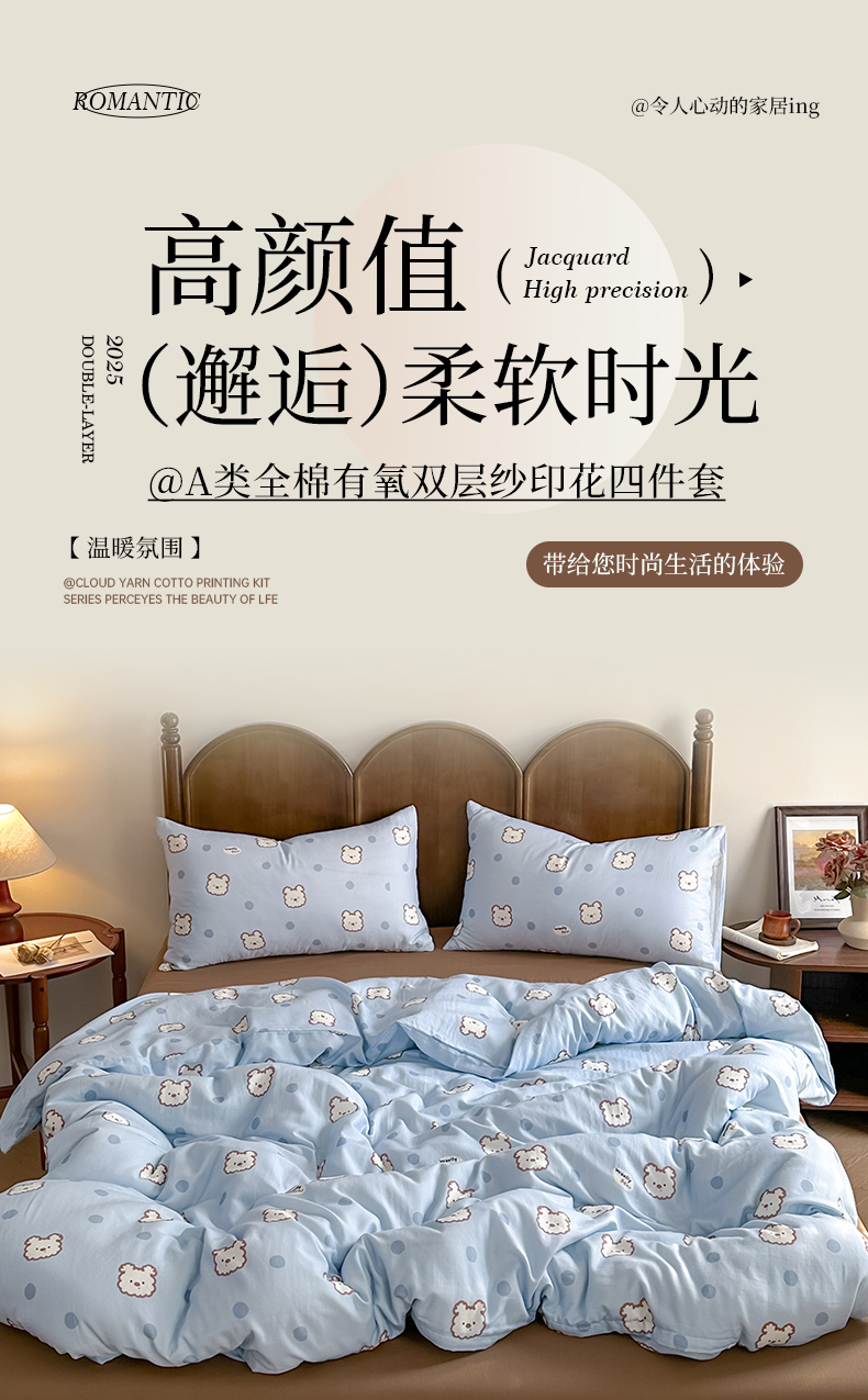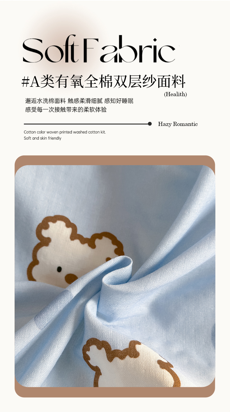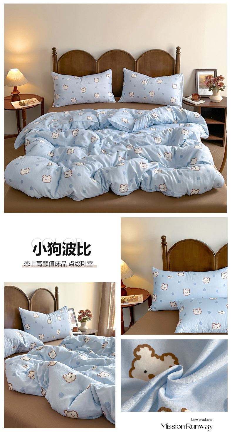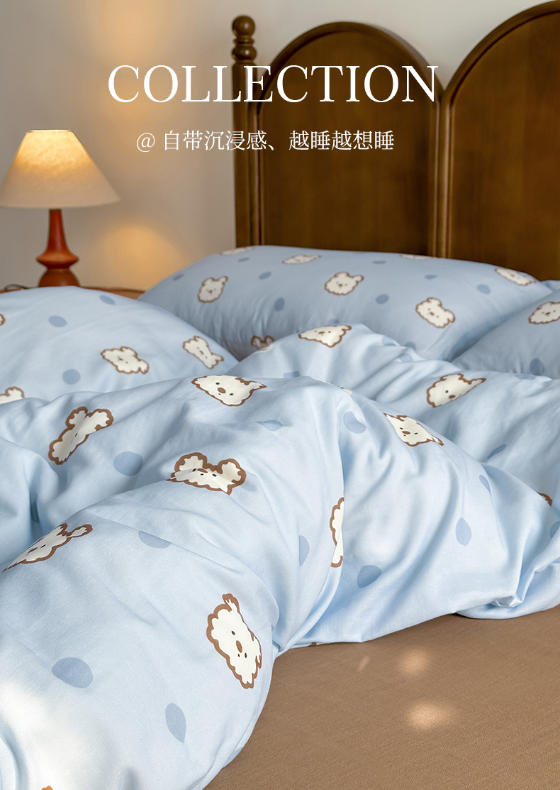 当前位置: 91家纺网 > 商品网购 > 床品套件 > 四件套 > 全棉普通四件套 > 2025新款A类母婴级有氧全棉纯棉双层纱纯棉印花四件套 场景二 小狗波比