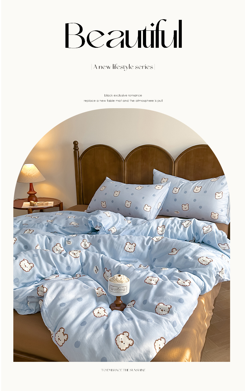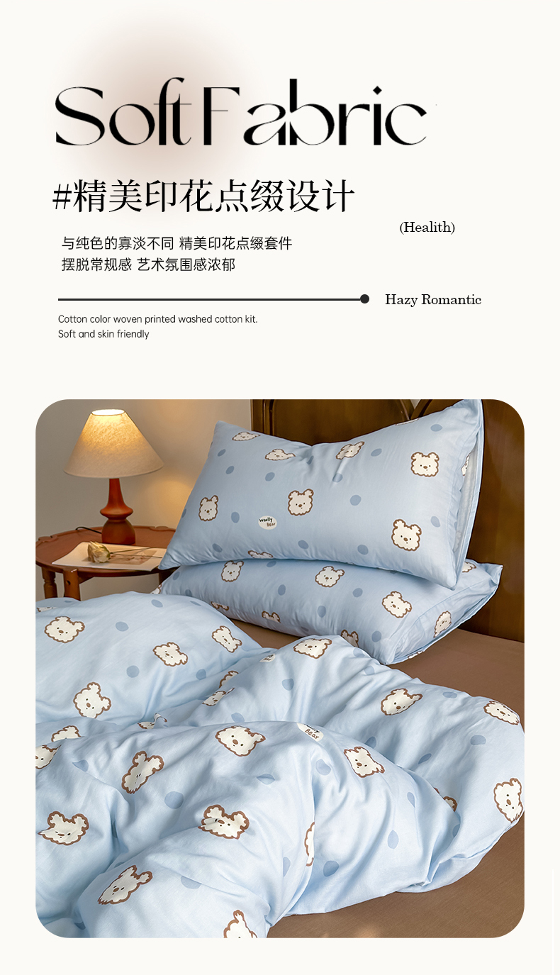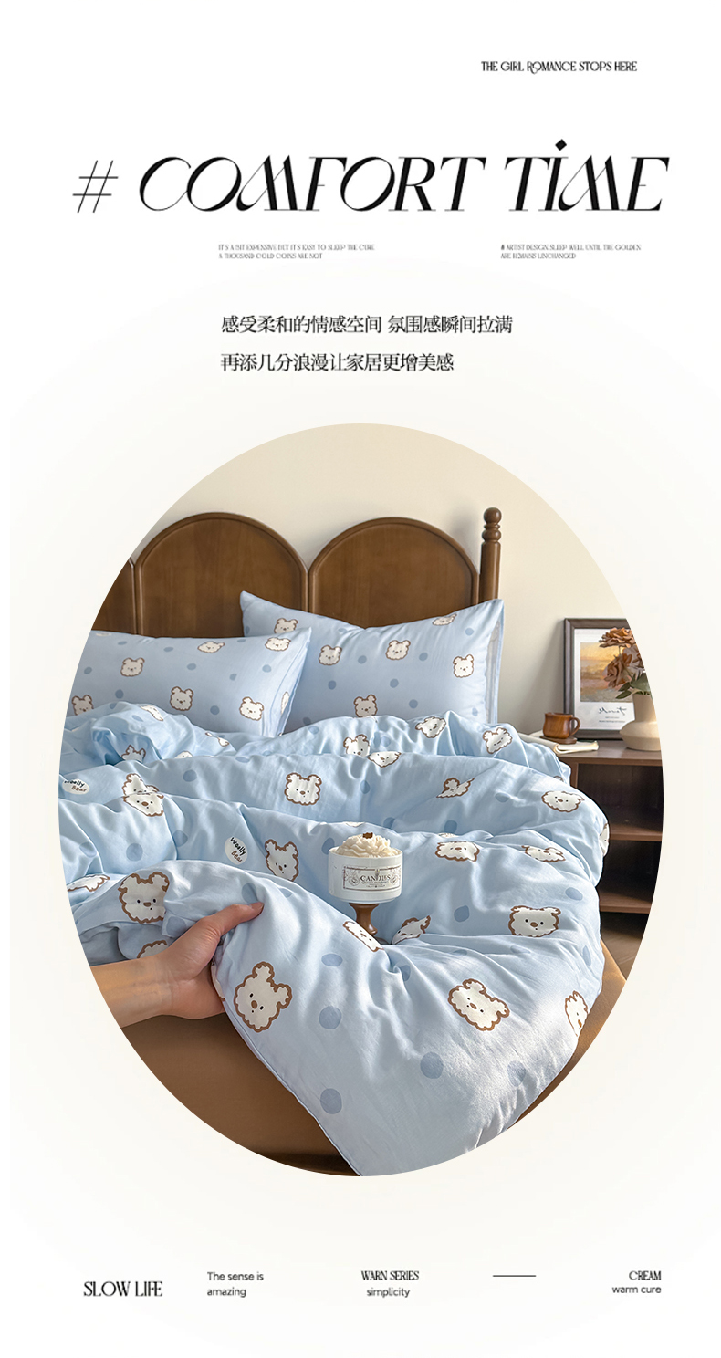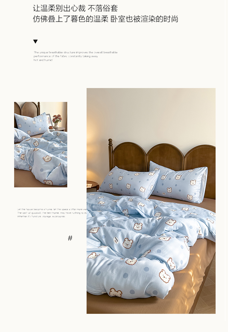 当前位置: 91家纺网 > 商品网购 > 床品套件 > 四件套 > 全棉普通四件套 > 2025新款A类母婴级有氧全棉纯棉双层纱纯棉印花四件套 场景二 小狗波比