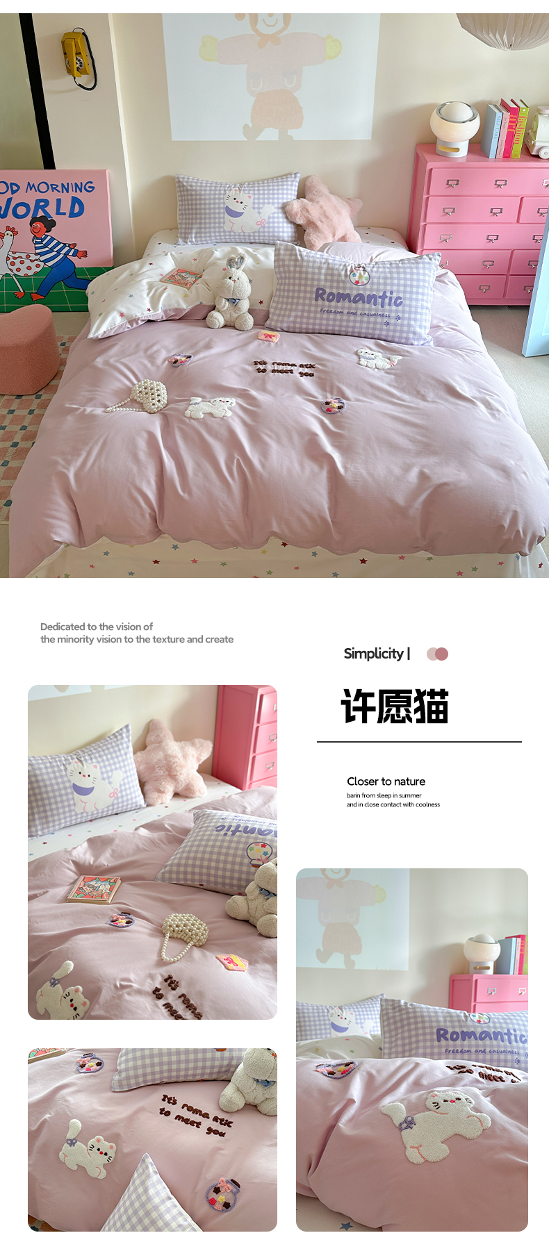 (总)美乐迪家纺 2024新款全棉印花混搭系列四件套,波点小猫,花园小狗,可爱兔,可乐汉堡,奶油狗,甜心小熊,童趣,小熊猫