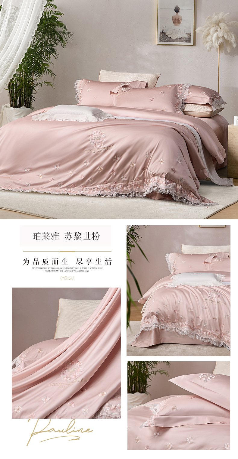 商品名称:诗黛尔 2025新款长绒棉刺绣系列四件套-珀莱雅 珀莱雅-苏黎世粉