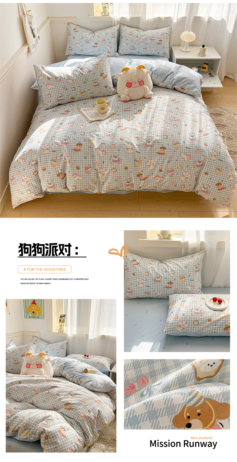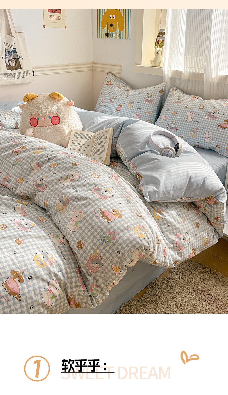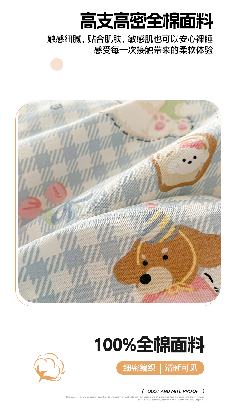 当前位置: 91家纺网 > 商品网购 > 床品套件 > 四件套 > 全棉普通四件套 > 西引力 2025开春新款全棉印花四件套单被套系列 狗狗派对