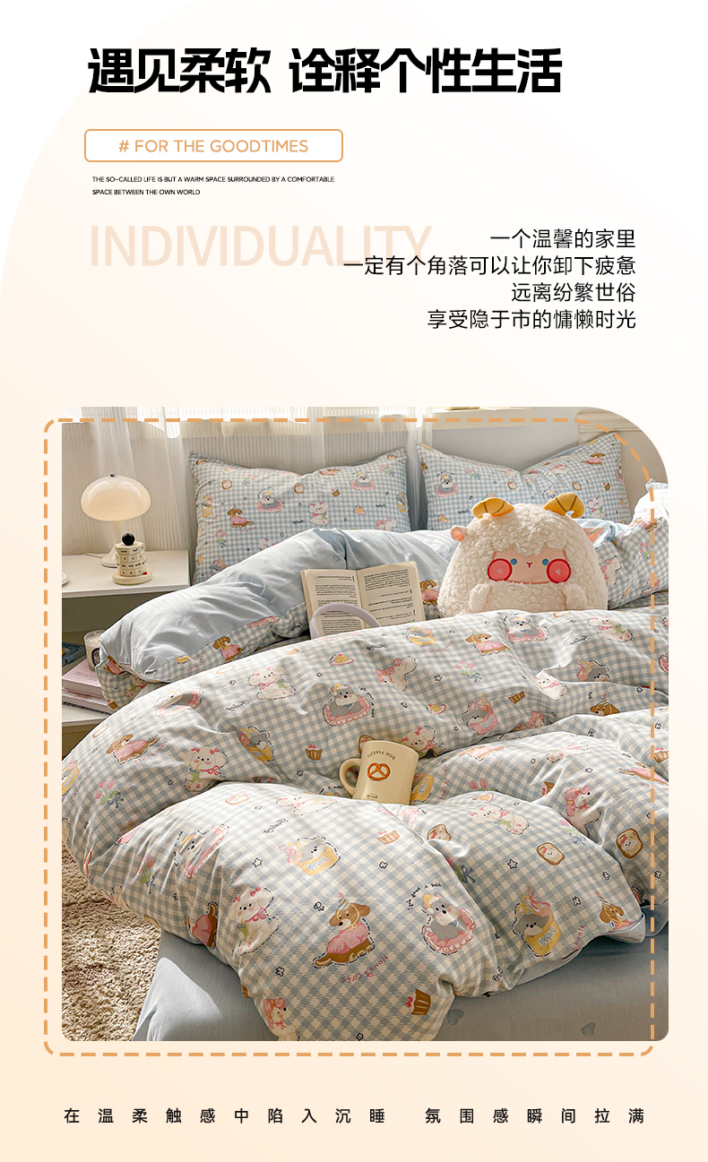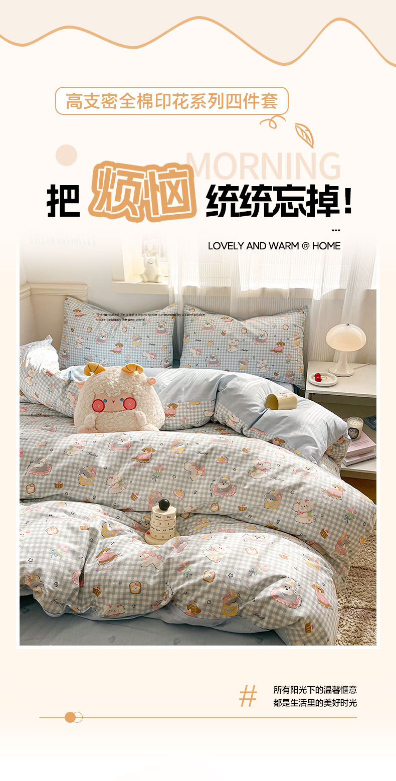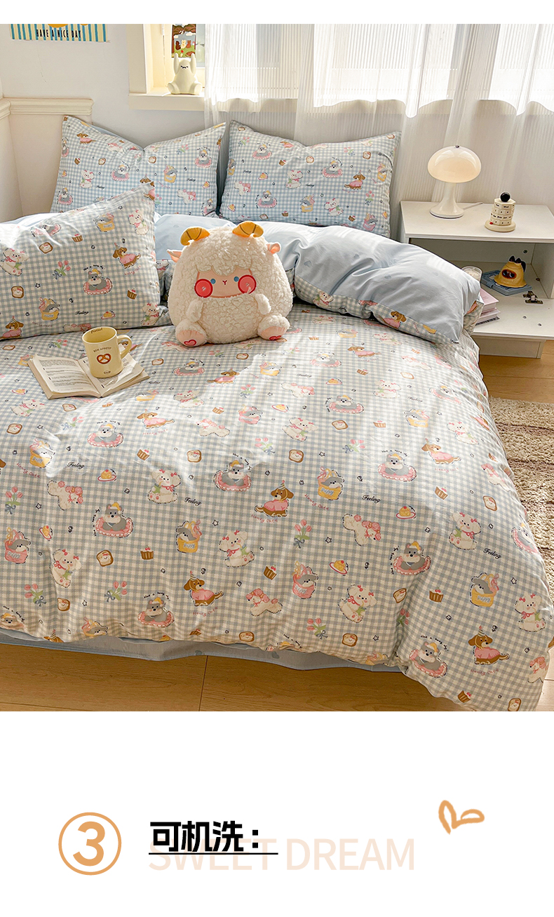 当前位置: 91家纺网 > 商品网购 > 床品套件 > 四件套 > 全棉普通四件套 > 西引力 2025开春新款全棉印花四件套单被套系列 狗狗派对