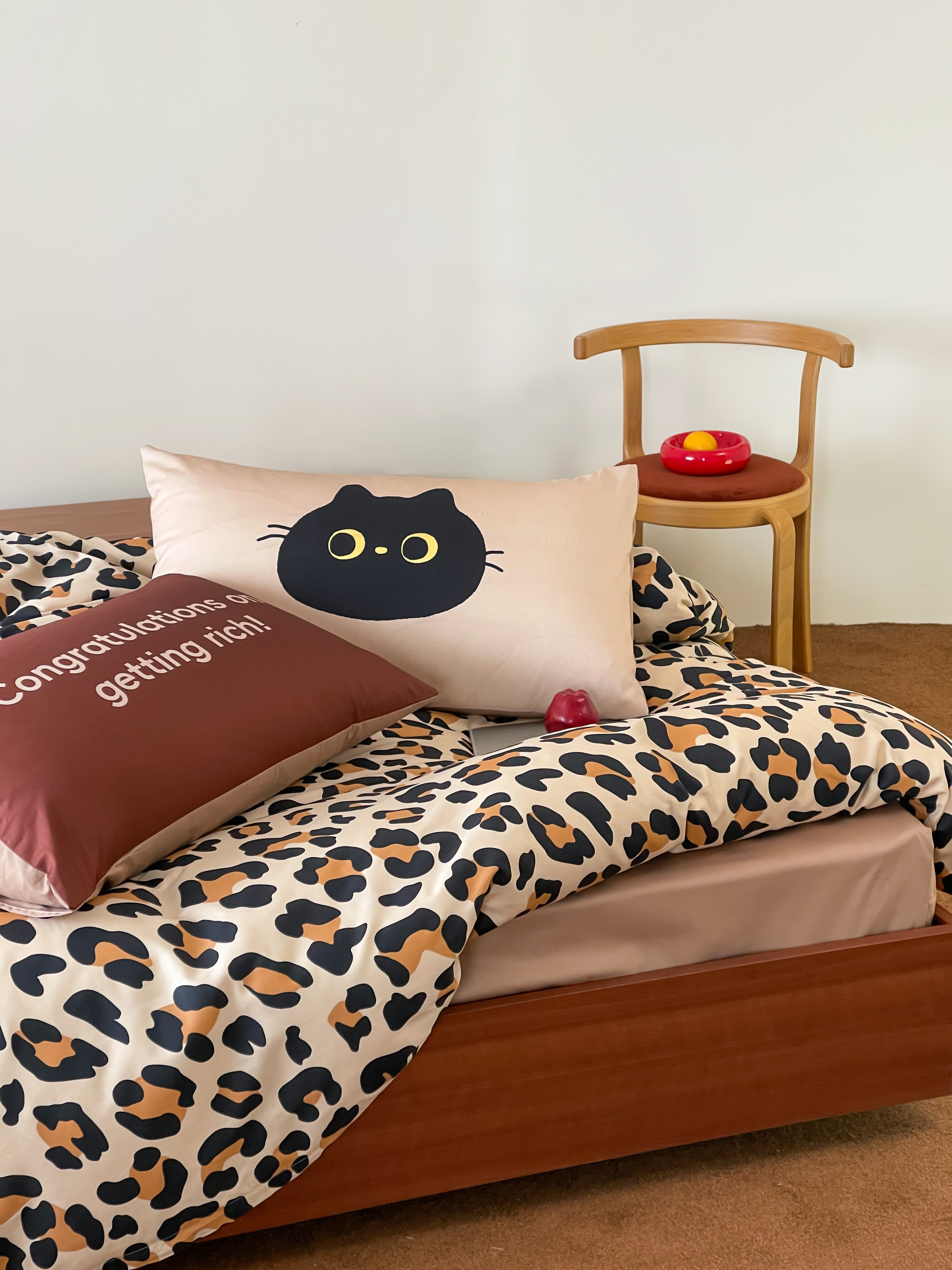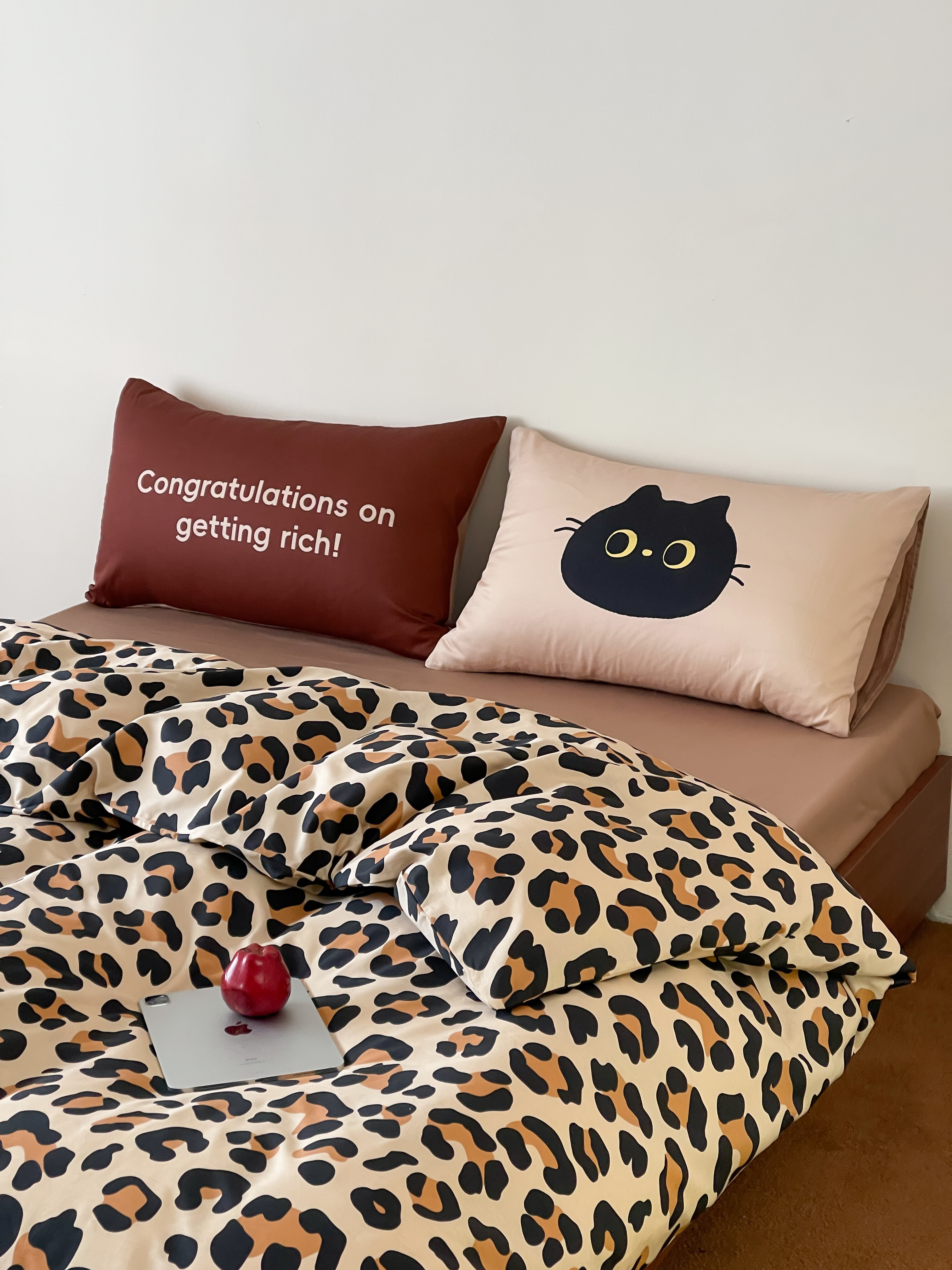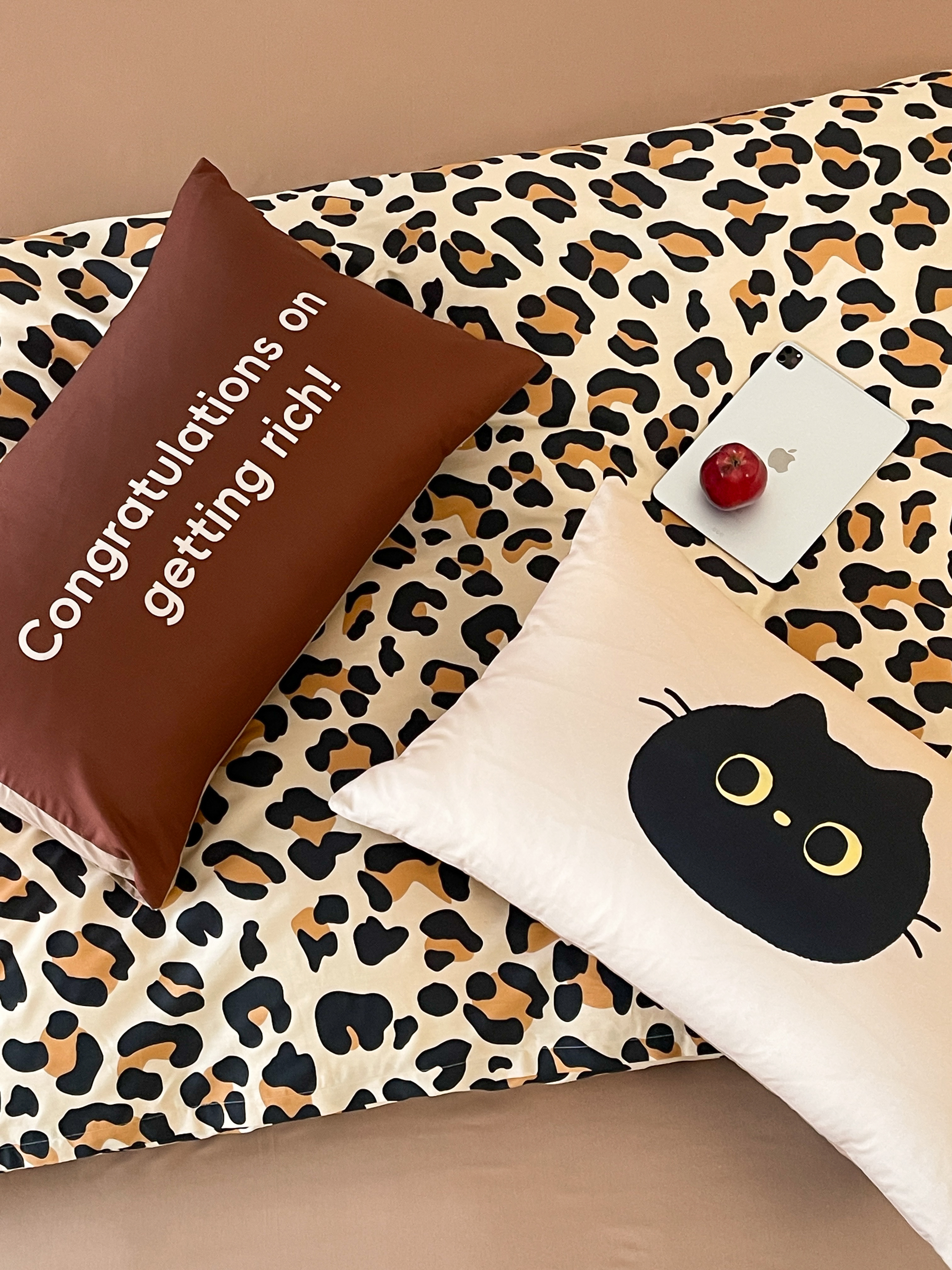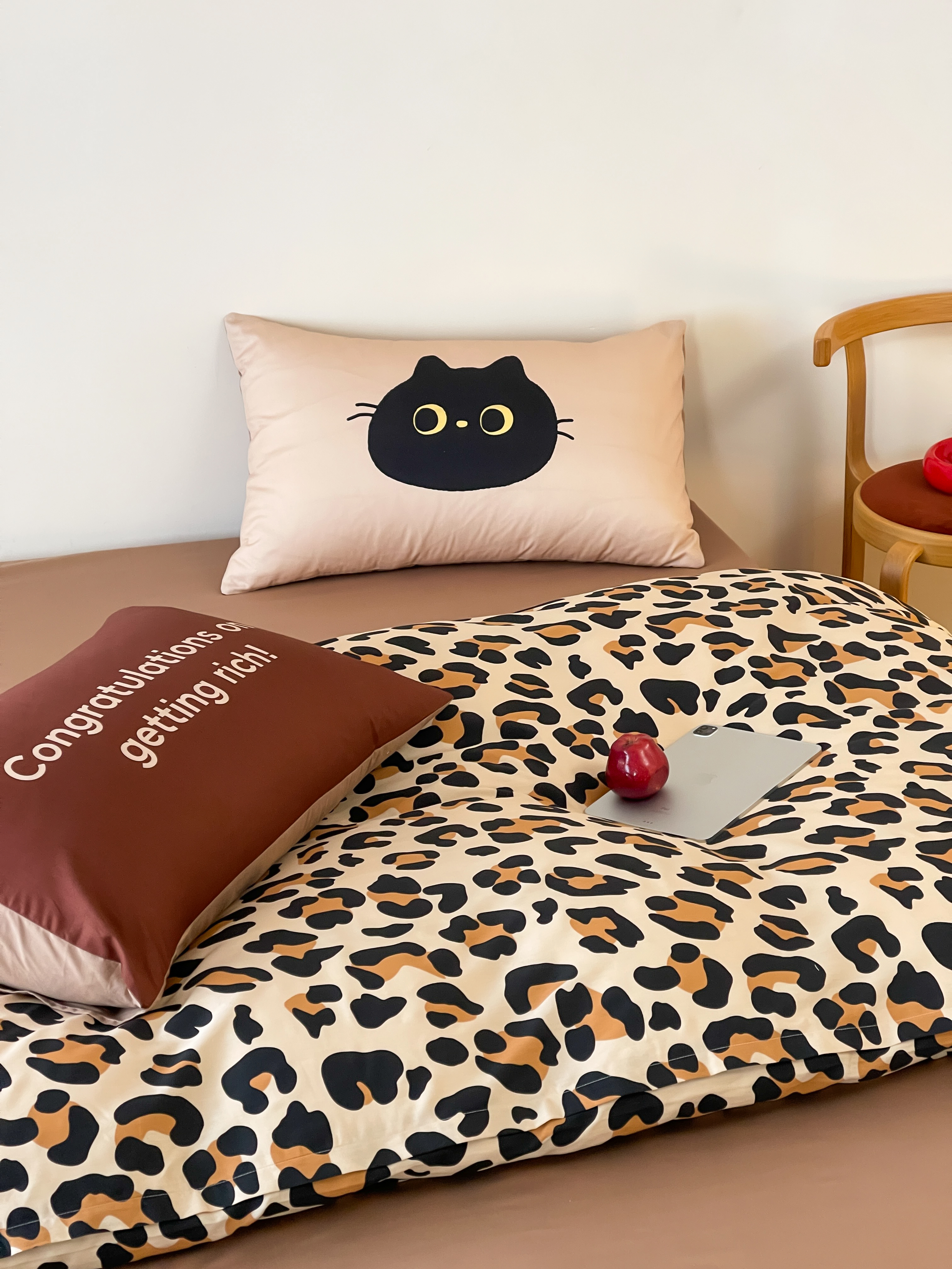商品名称:觅糖2025年全棉双数码枕套卡通印花混搭系列 豹纹奶猫