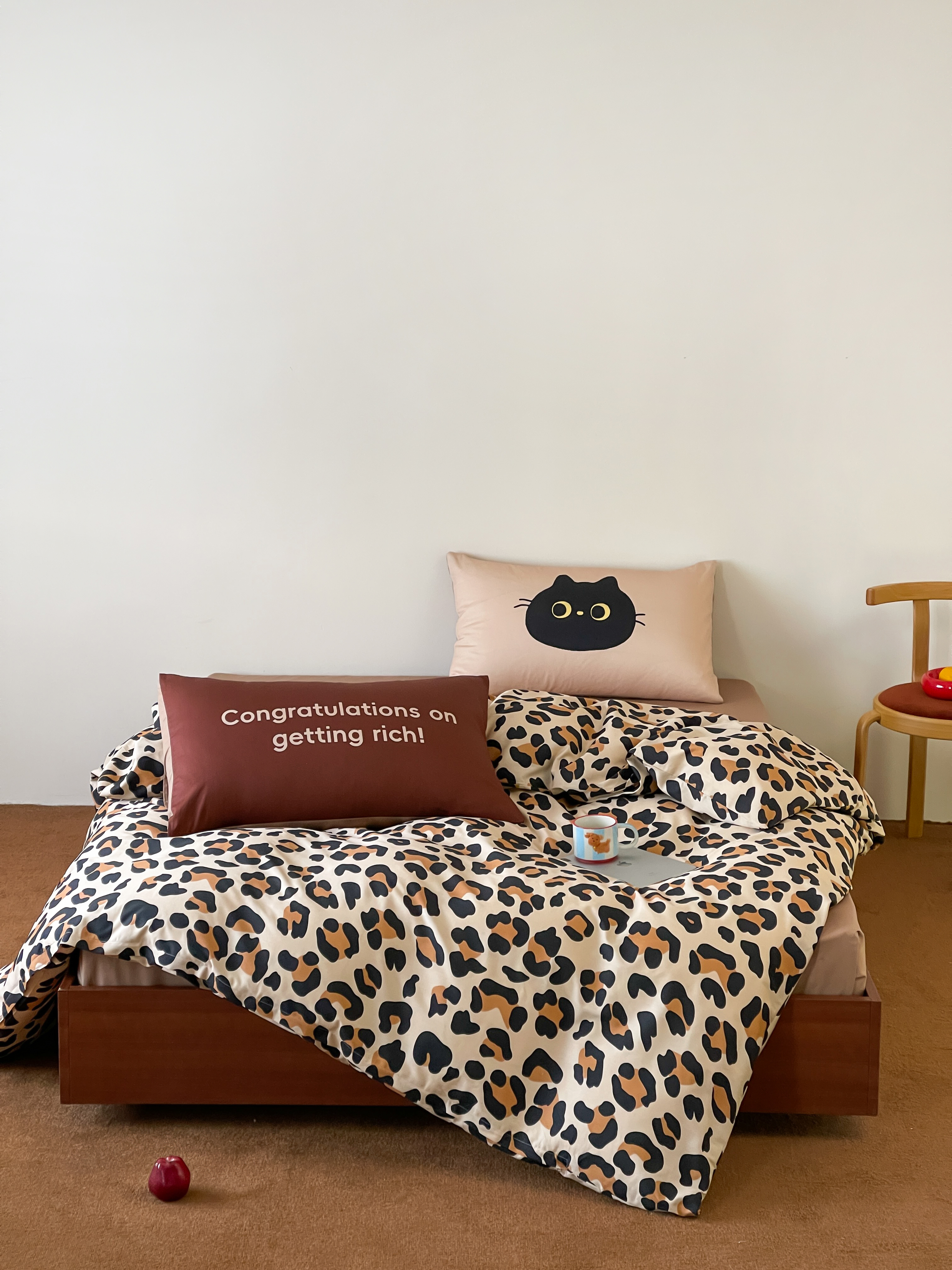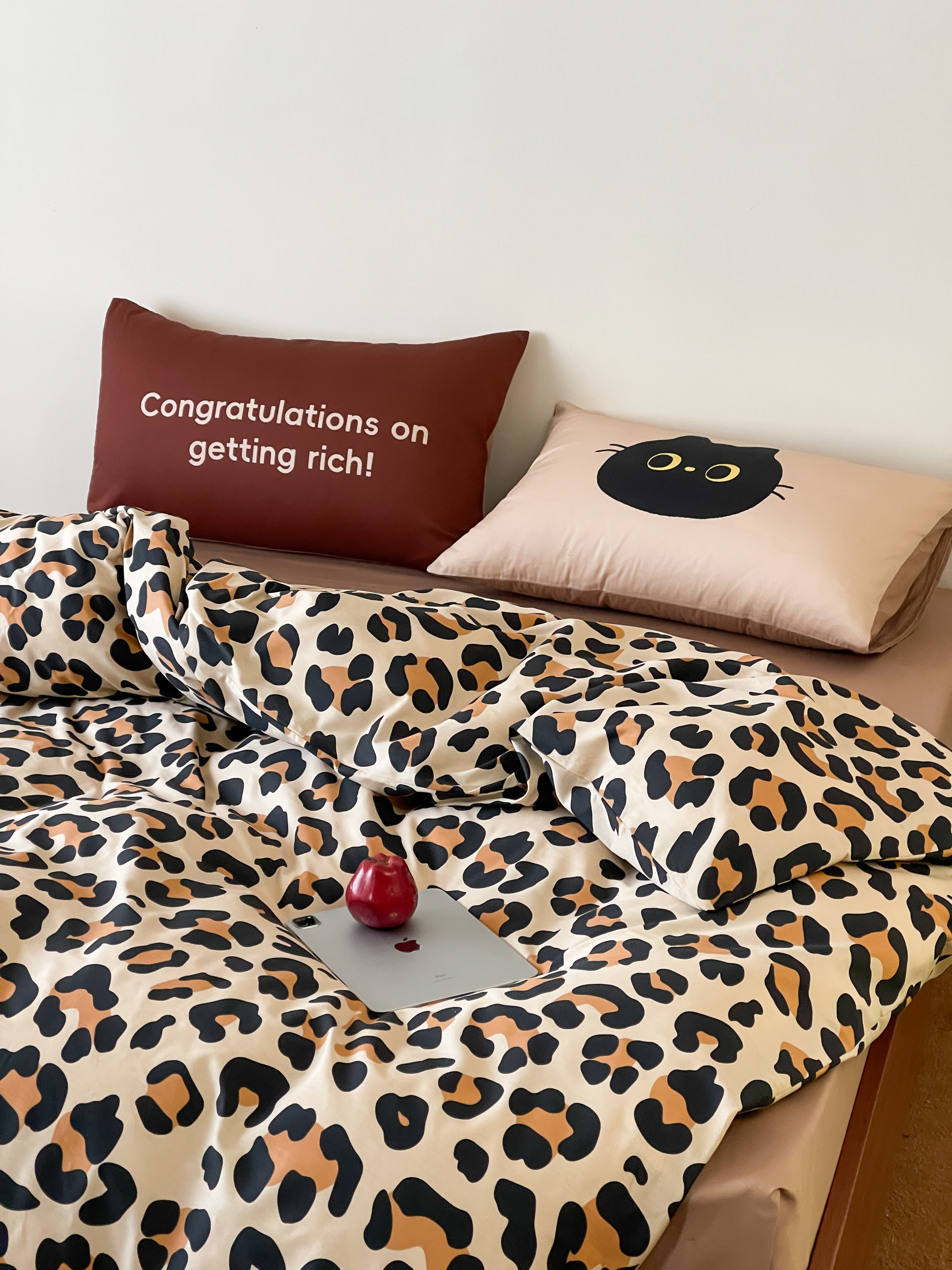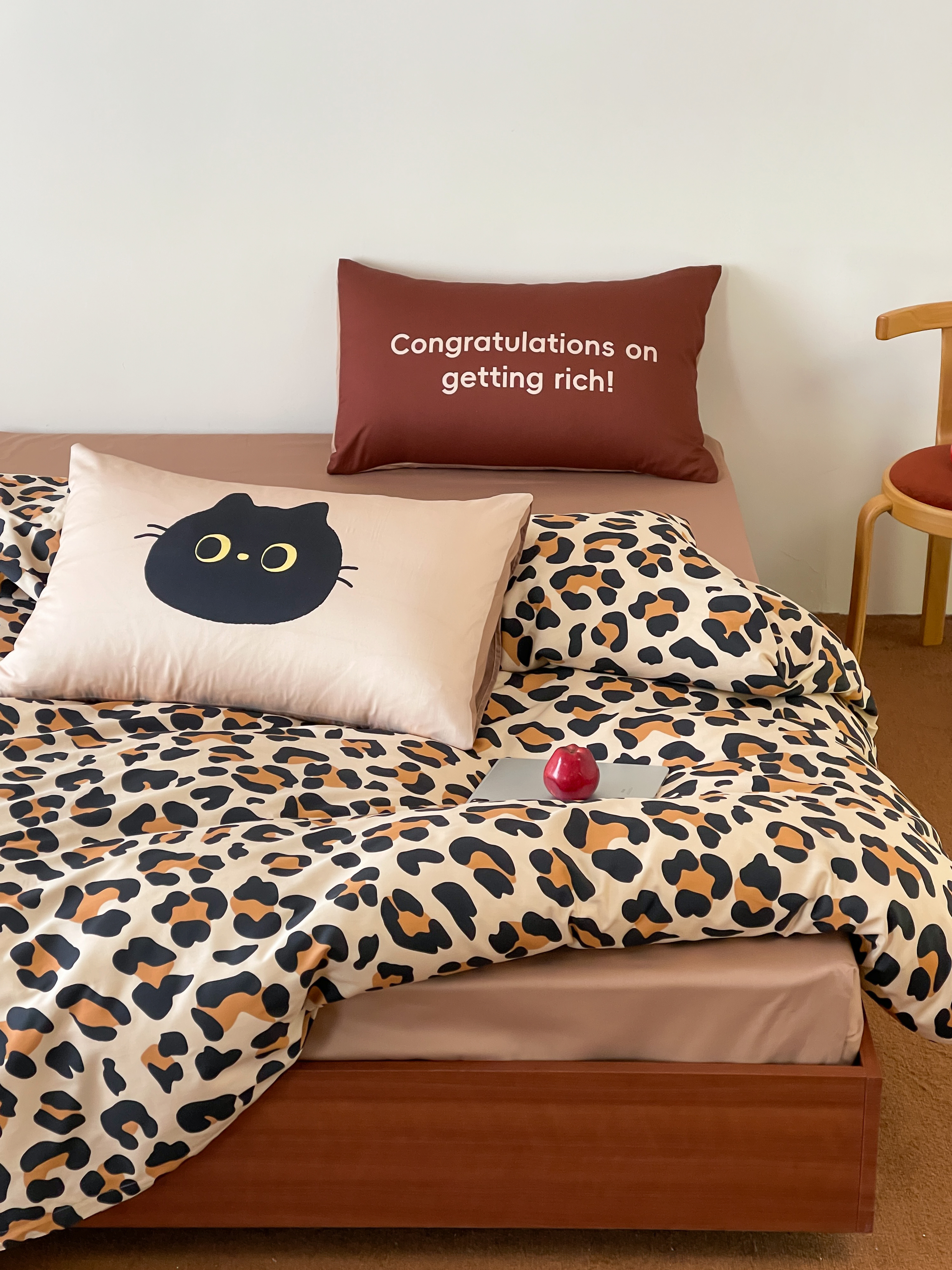 商品名称:觅糖2025年全棉双数码枕套卡通印花混搭系列 豹纹奶猫