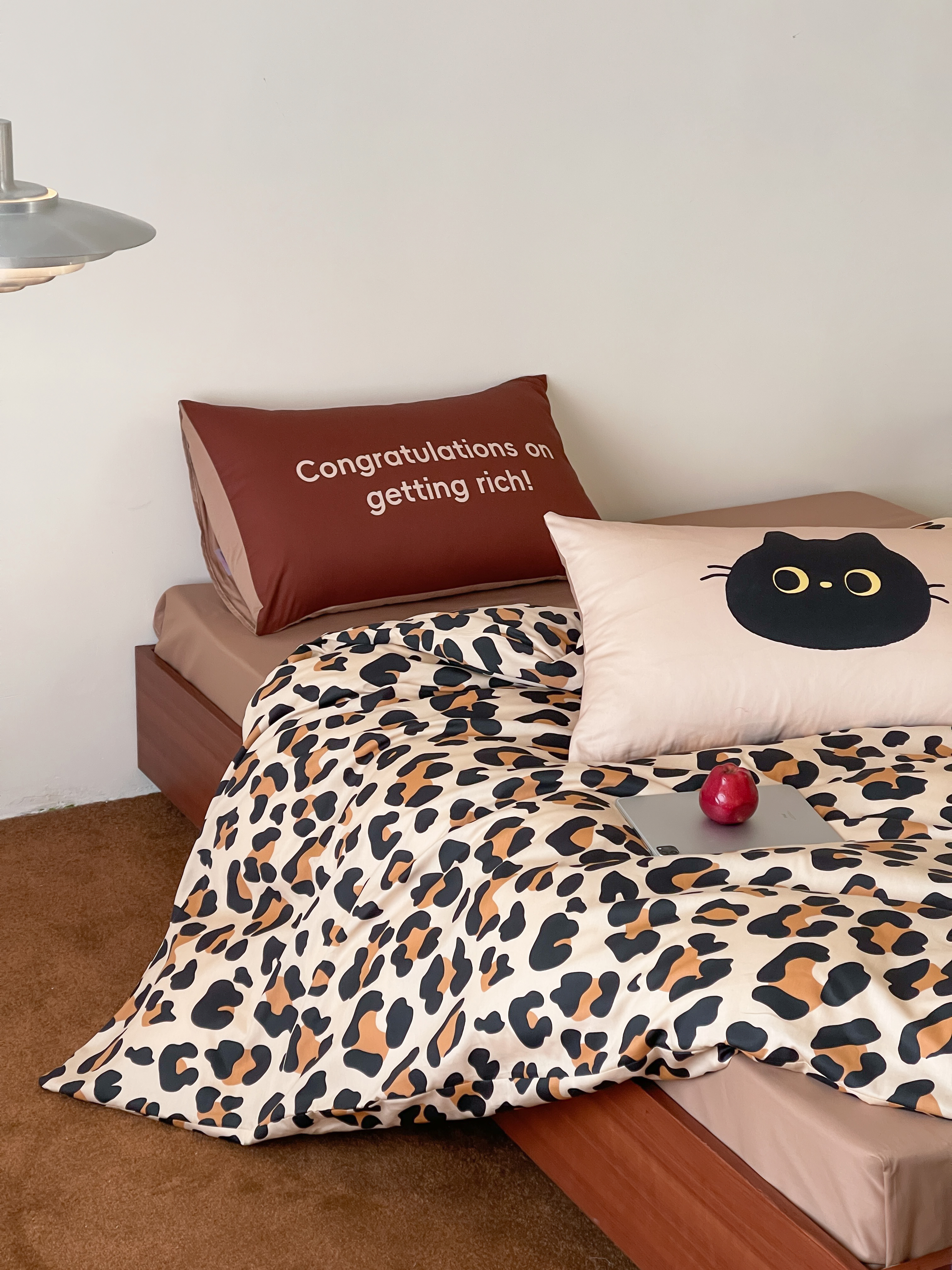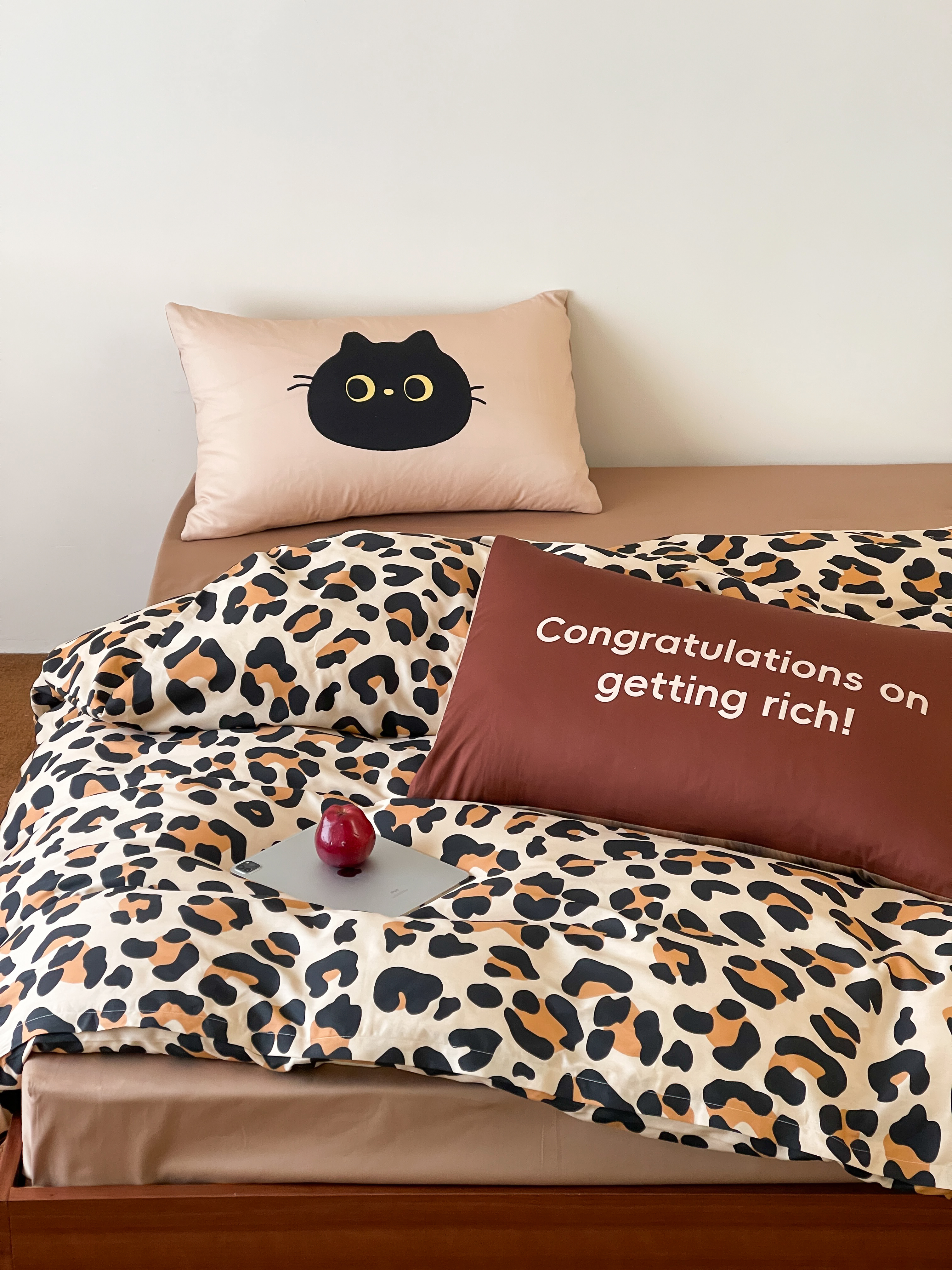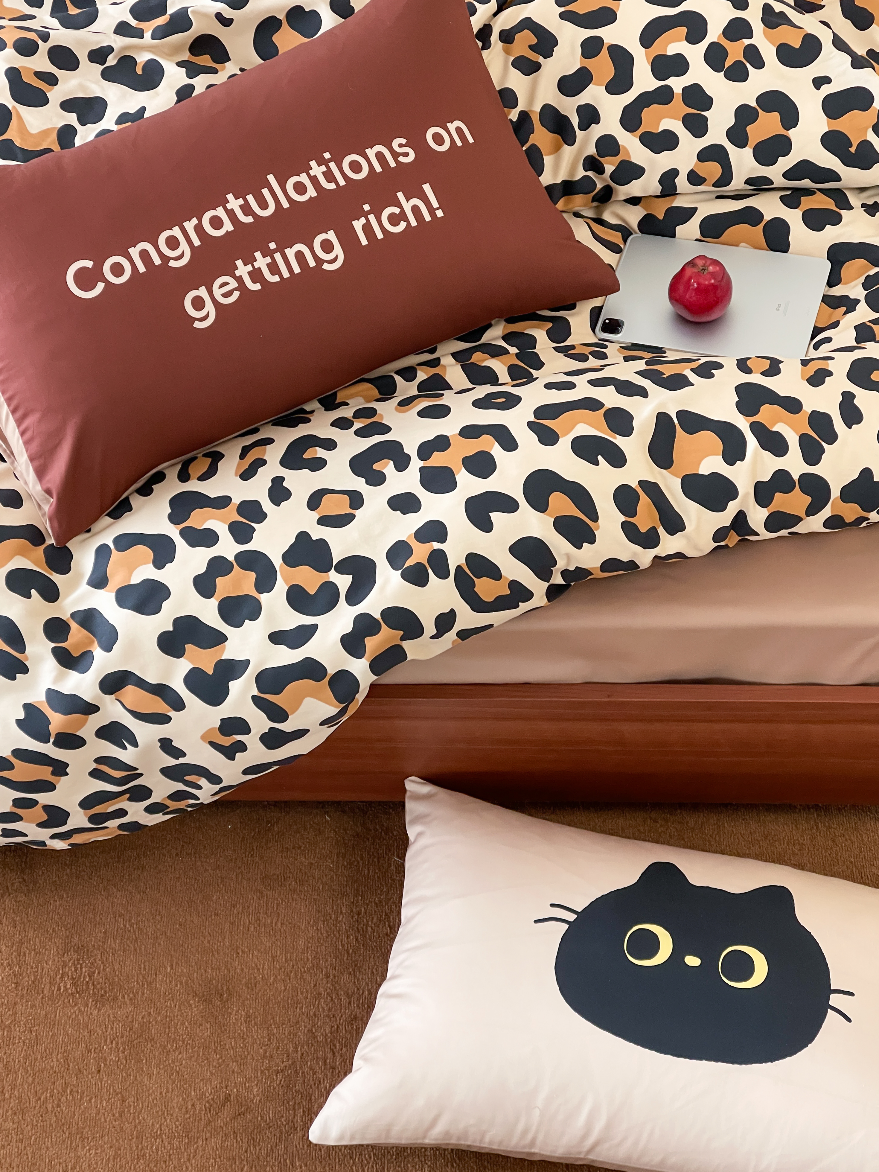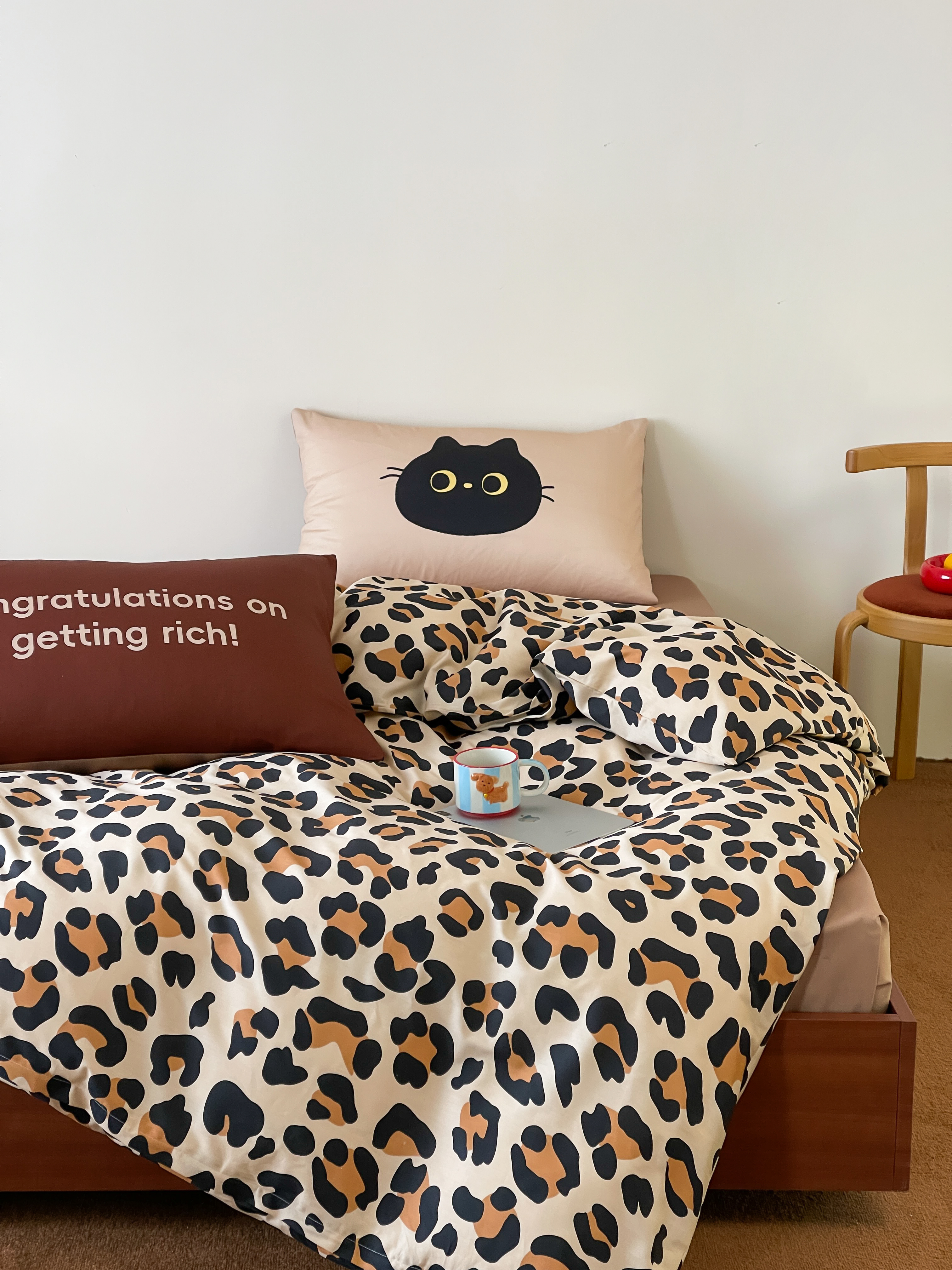 商品名称:觅糖2025年全棉双数码枕套卡通印花混搭系列 豹纹奶猫