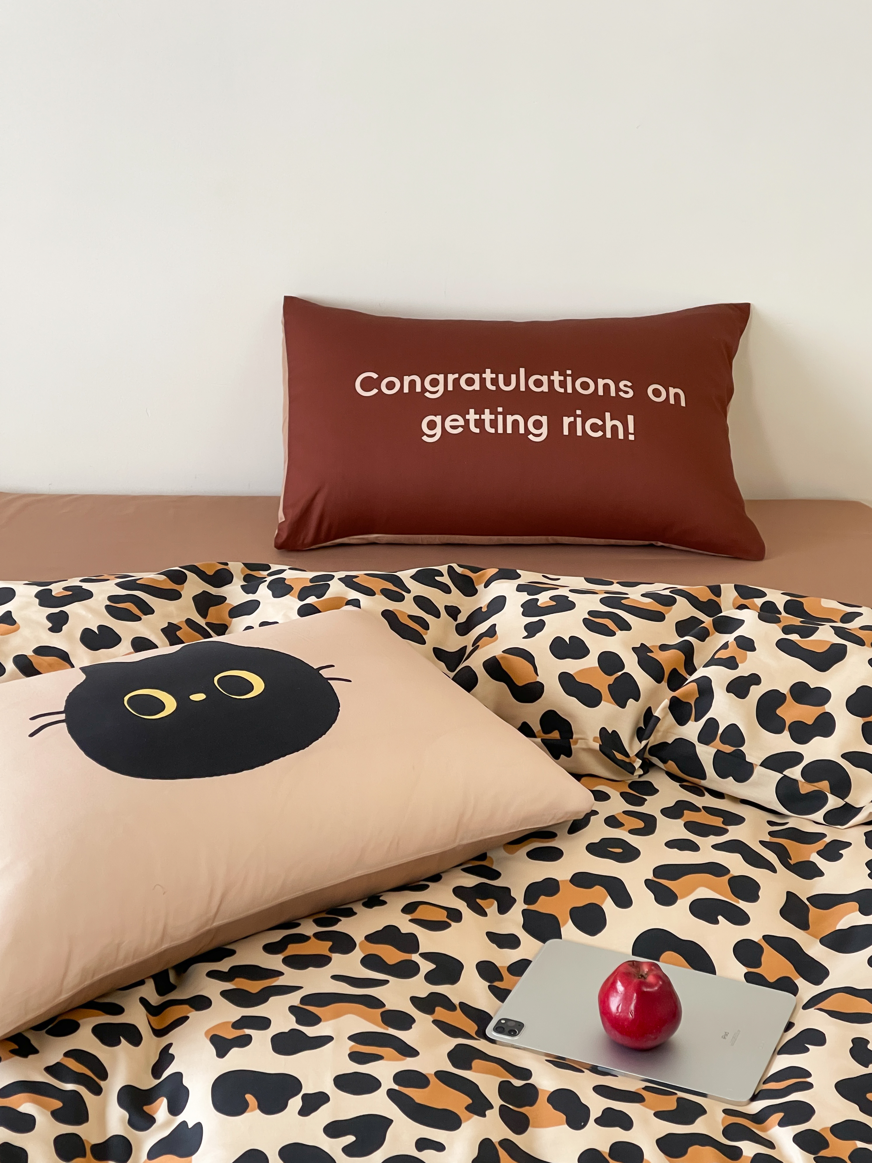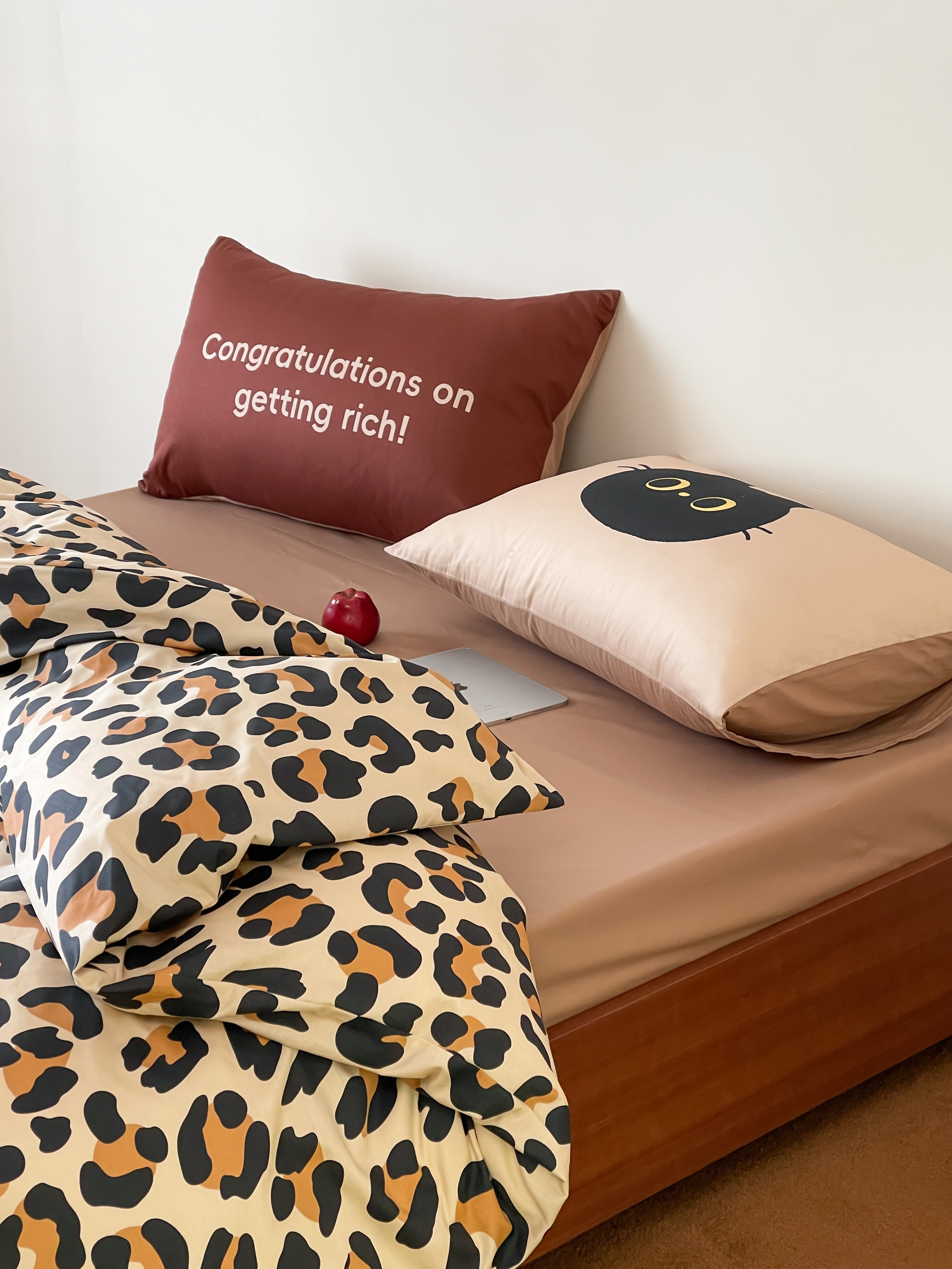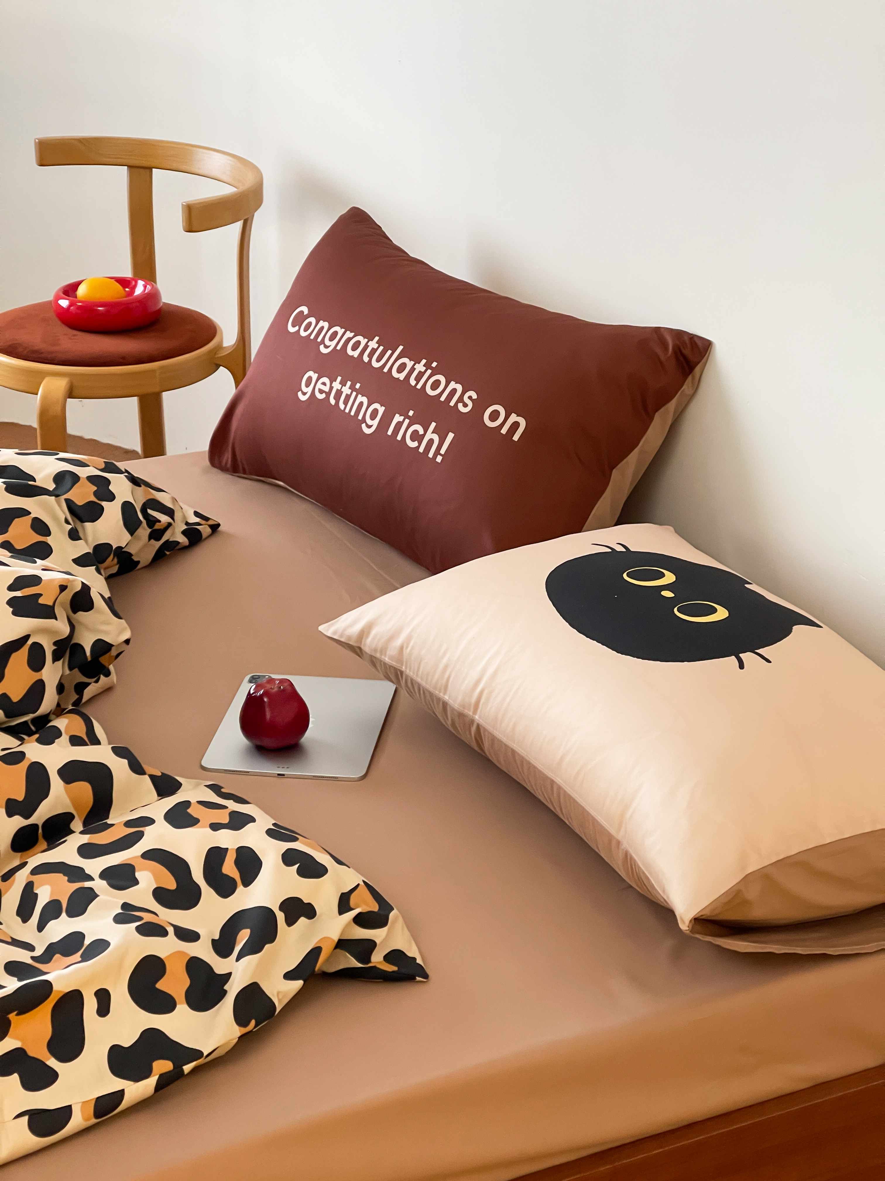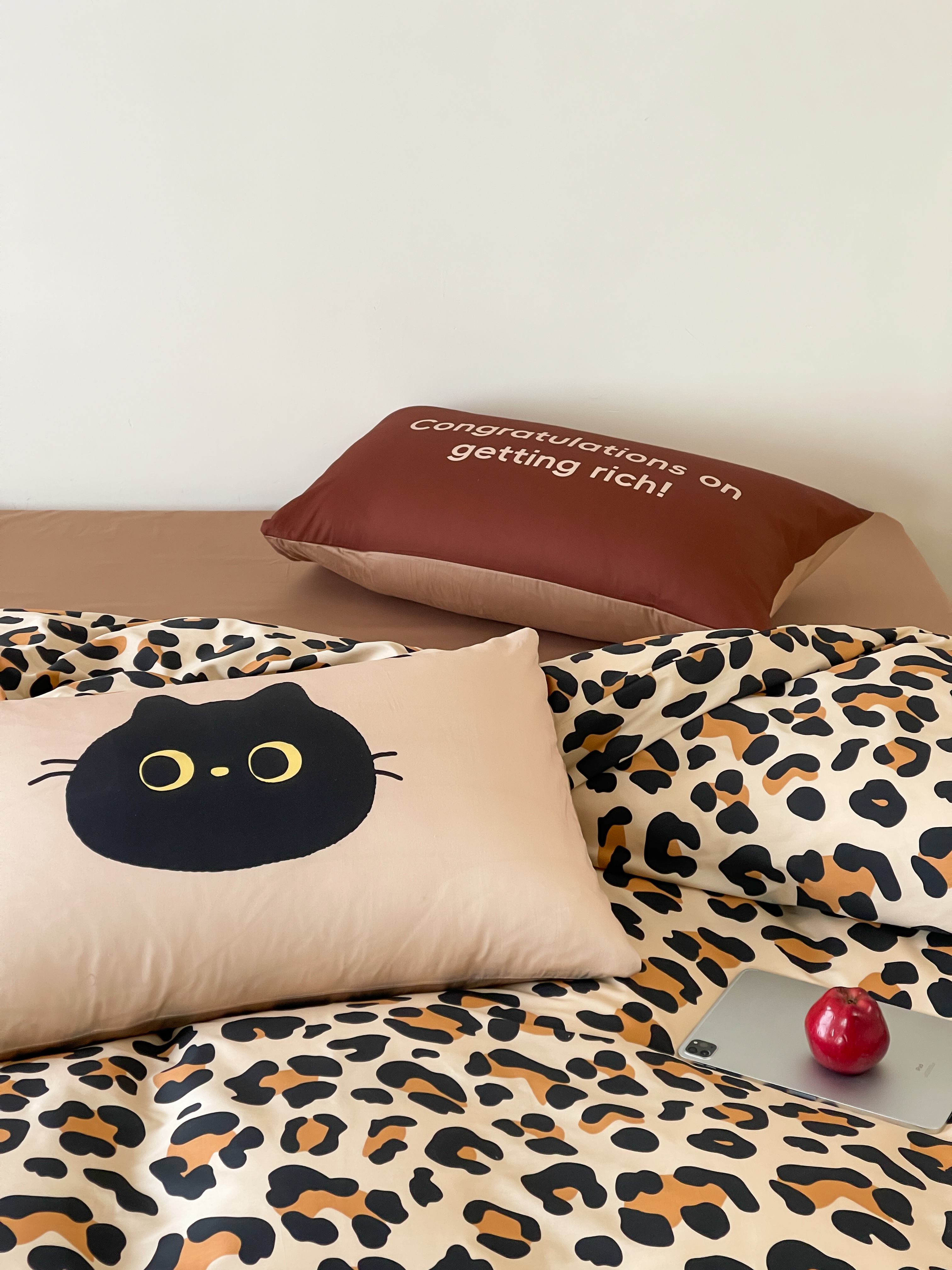 觅糖2025年全棉双数码枕套卡通印花混搭系列 豹纹奶猫