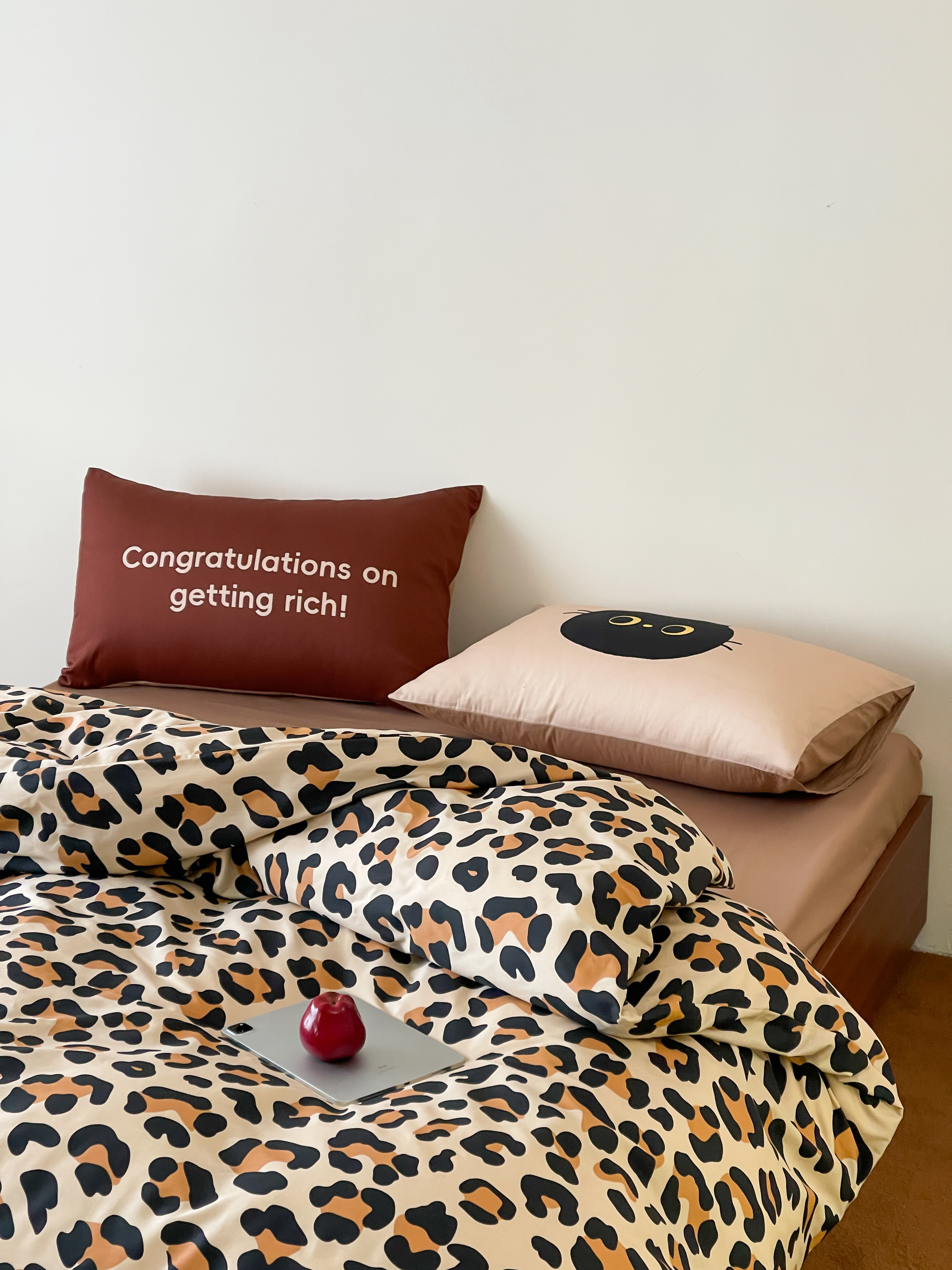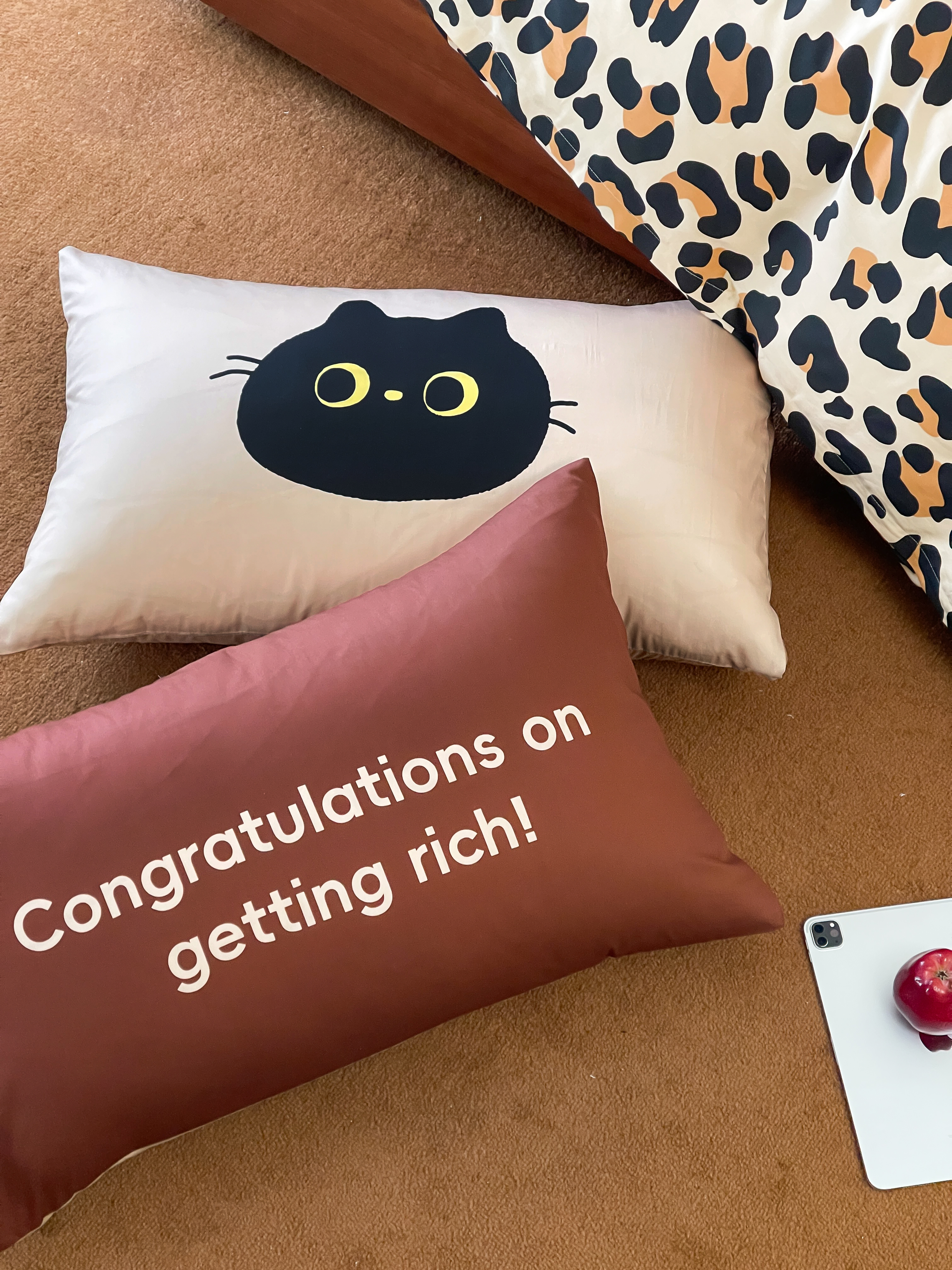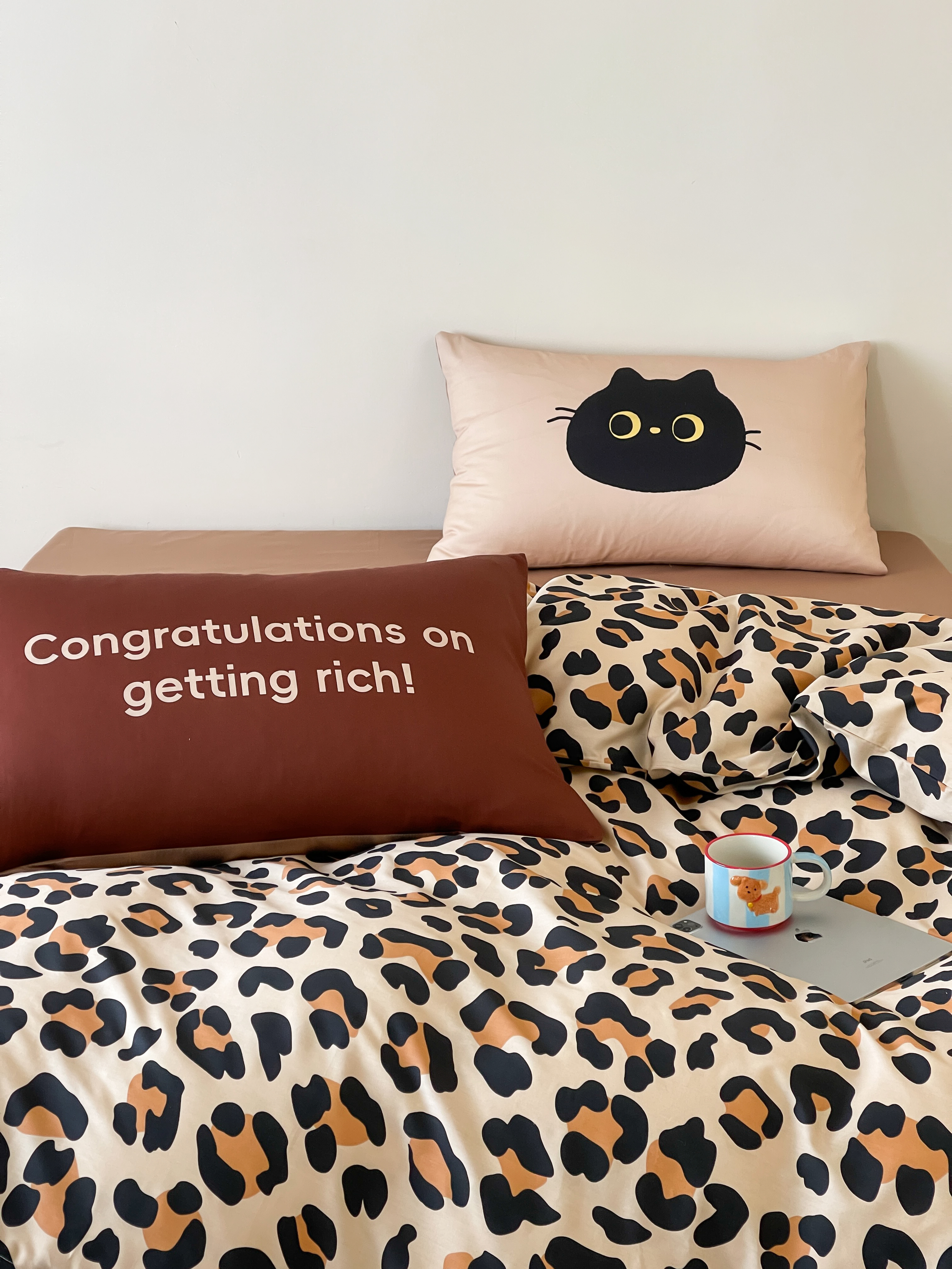 觅糖2025年全棉双数码枕套卡通印花混搭系列 豹纹奶猫