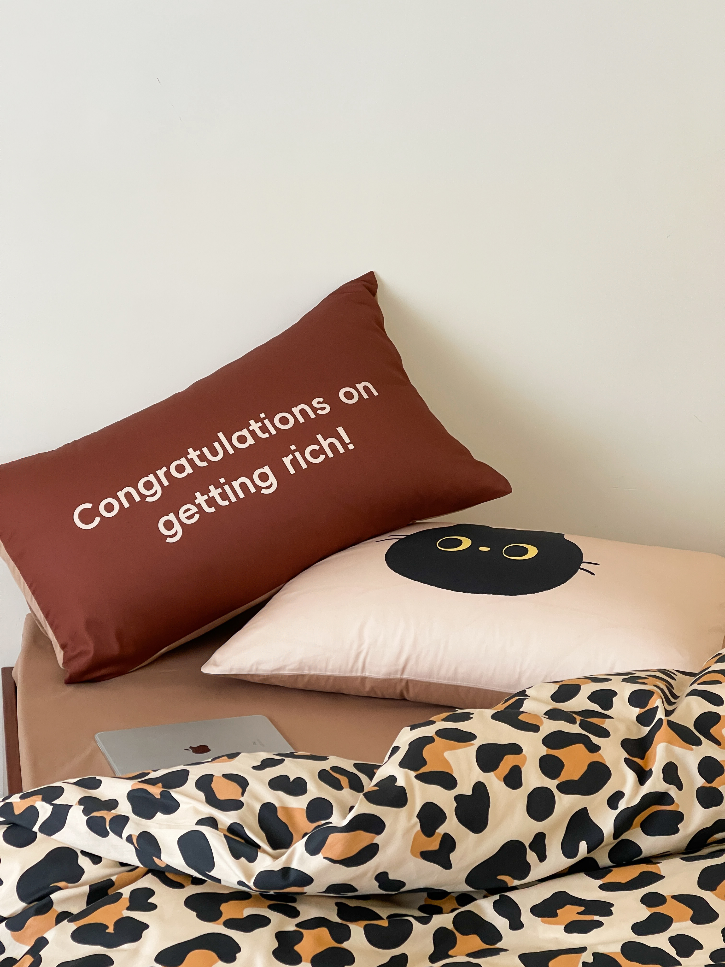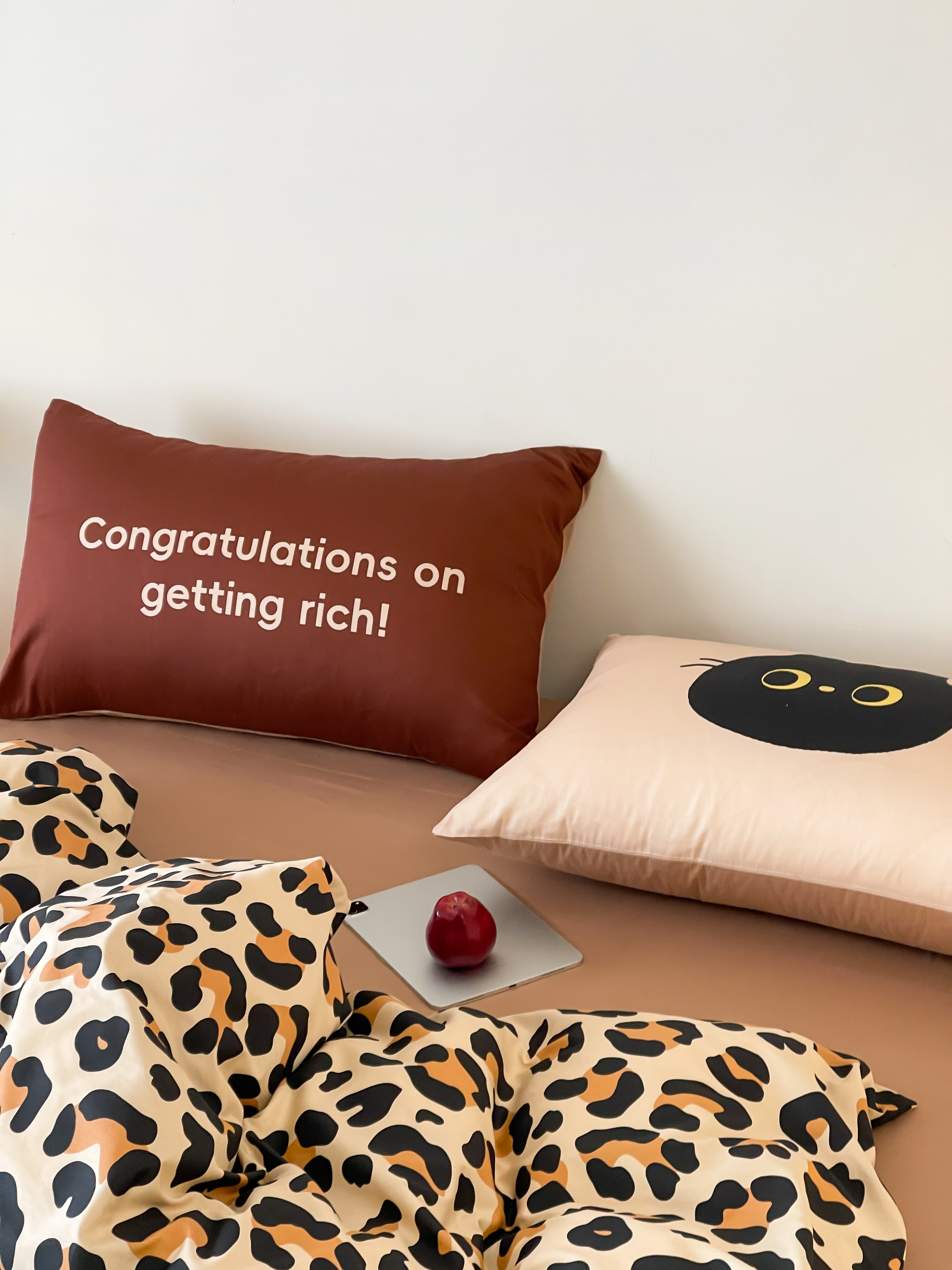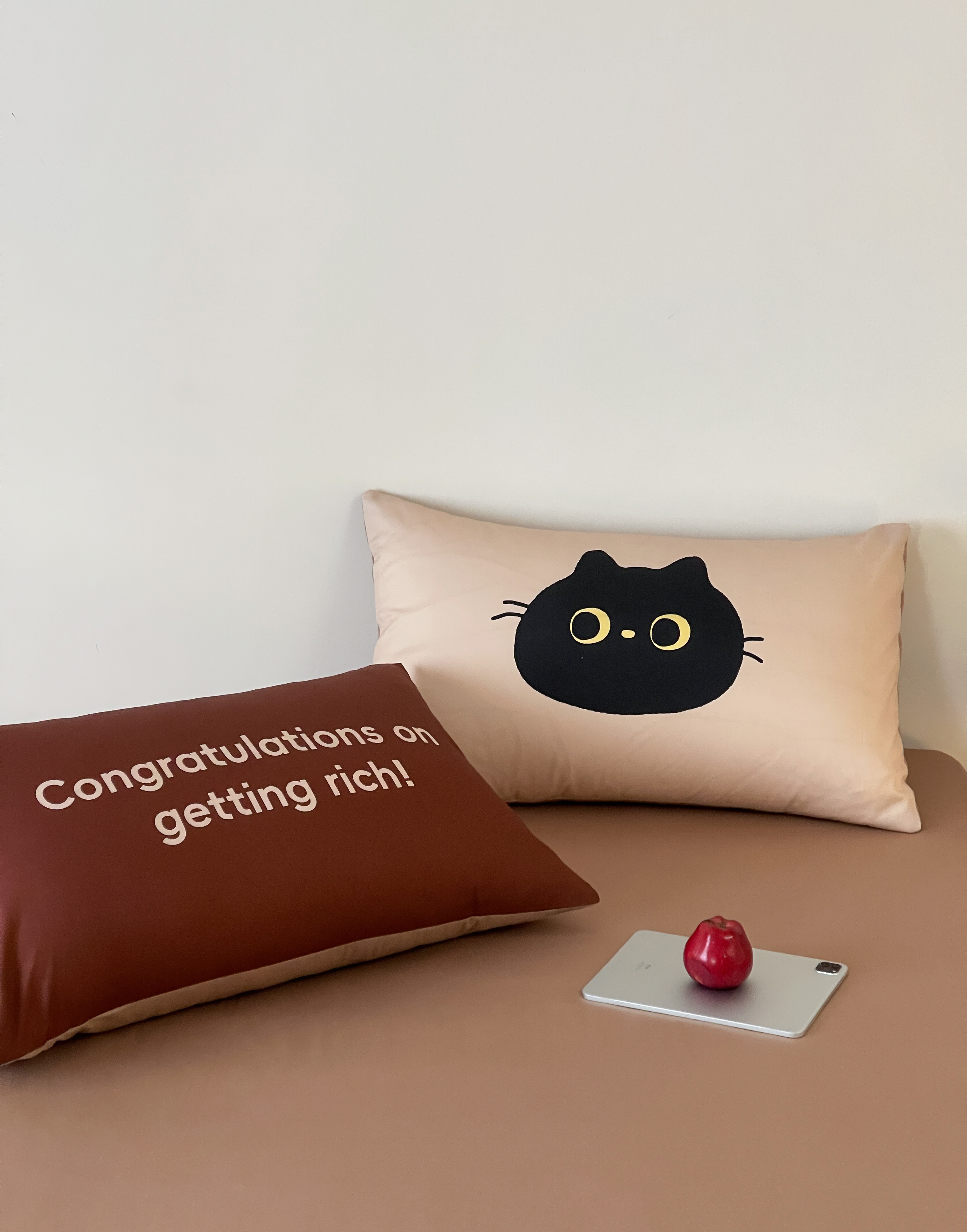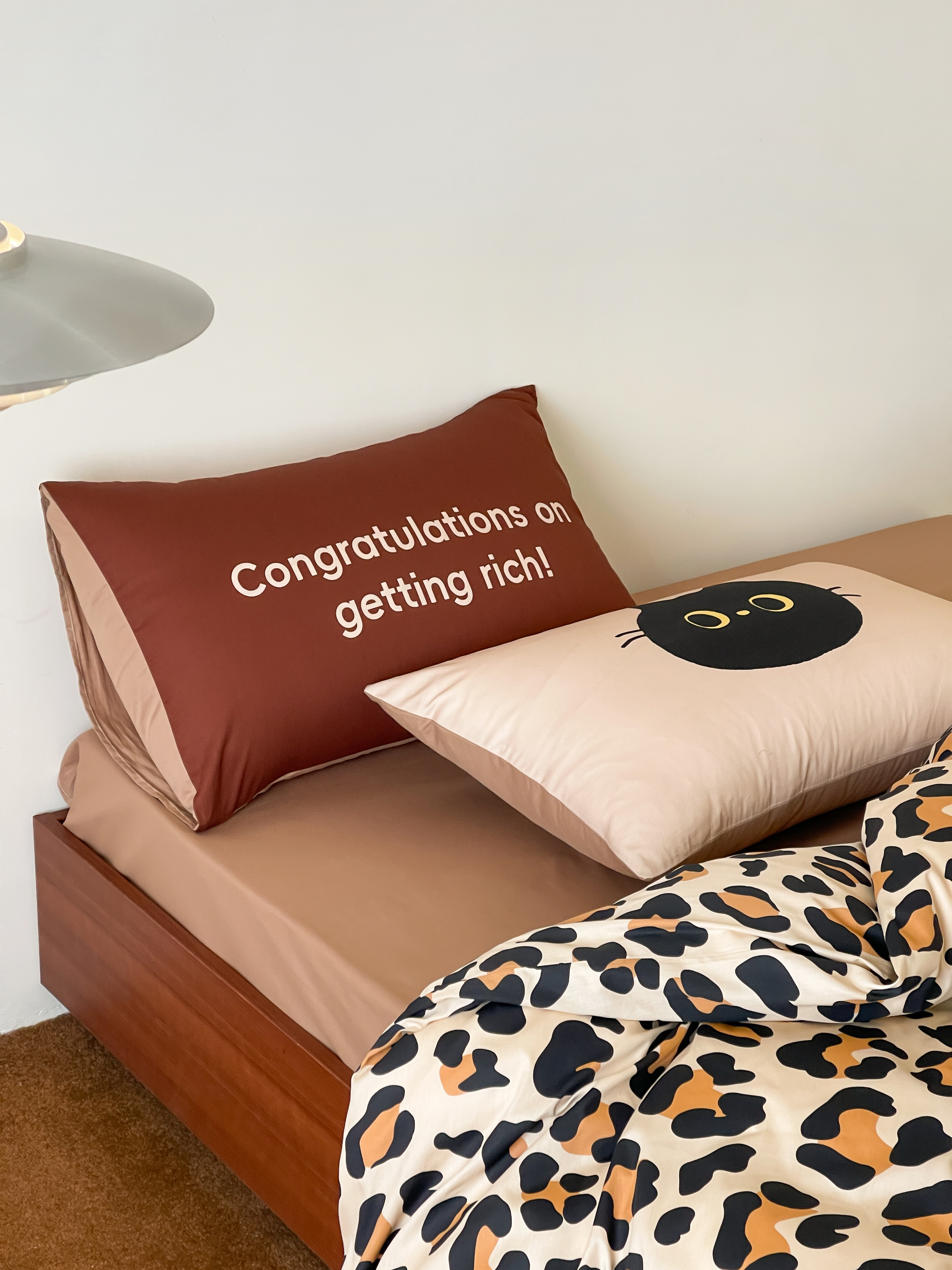 觅糖2025年全棉双数码枕套卡通印花混搭系列 豹纹奶猫